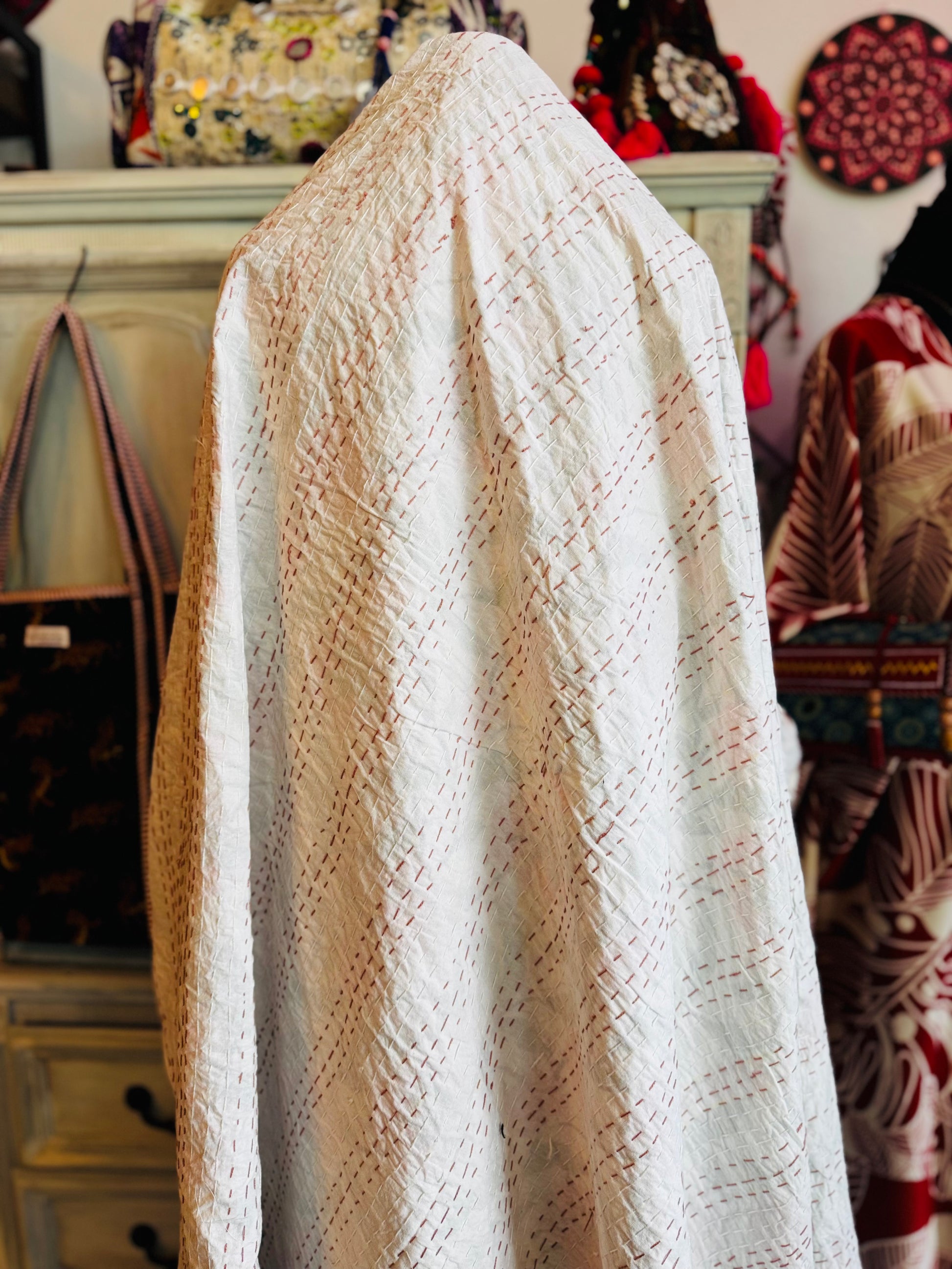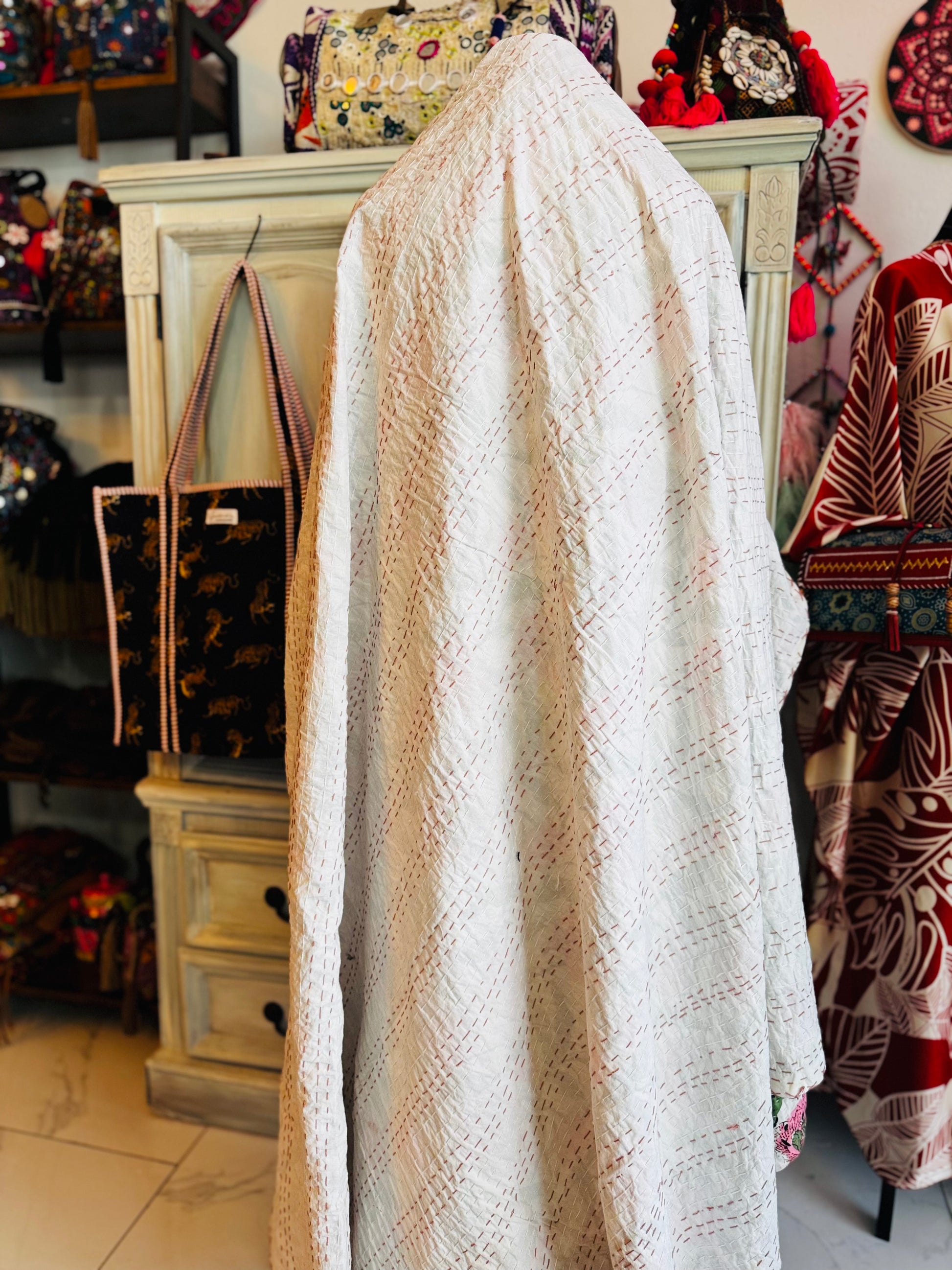 Crafted from 100% breathable cotton and finished with traditional kantha hand-stitching, it offers a lightweight, cozy feel perfect for everyday use. Flip it over to reveal the clean white reverse, giving you a simple and airy look whenever you want to switch things up.