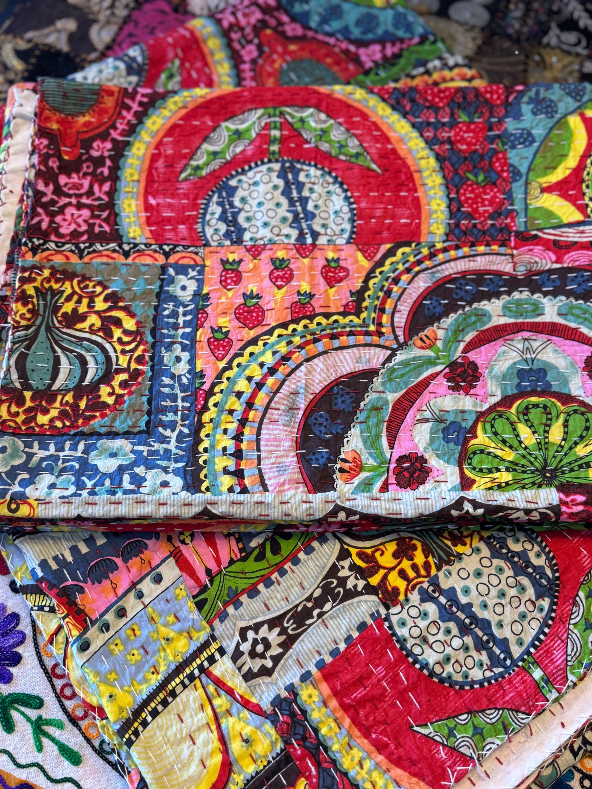 Bohemian Mosaic – Handblock Printed Kantha Quilt – 100% Cotton | Handmade