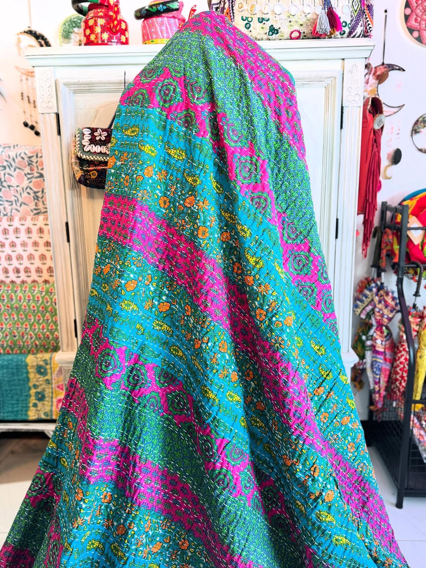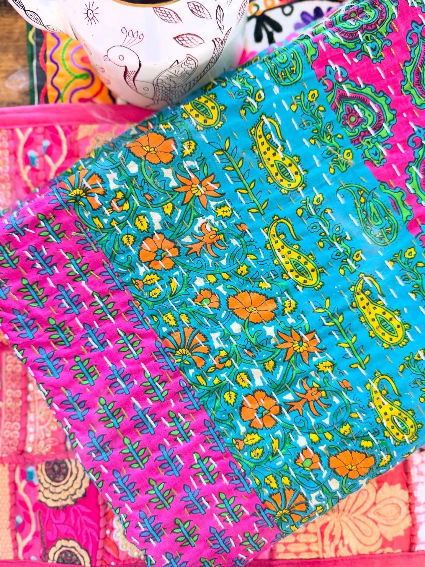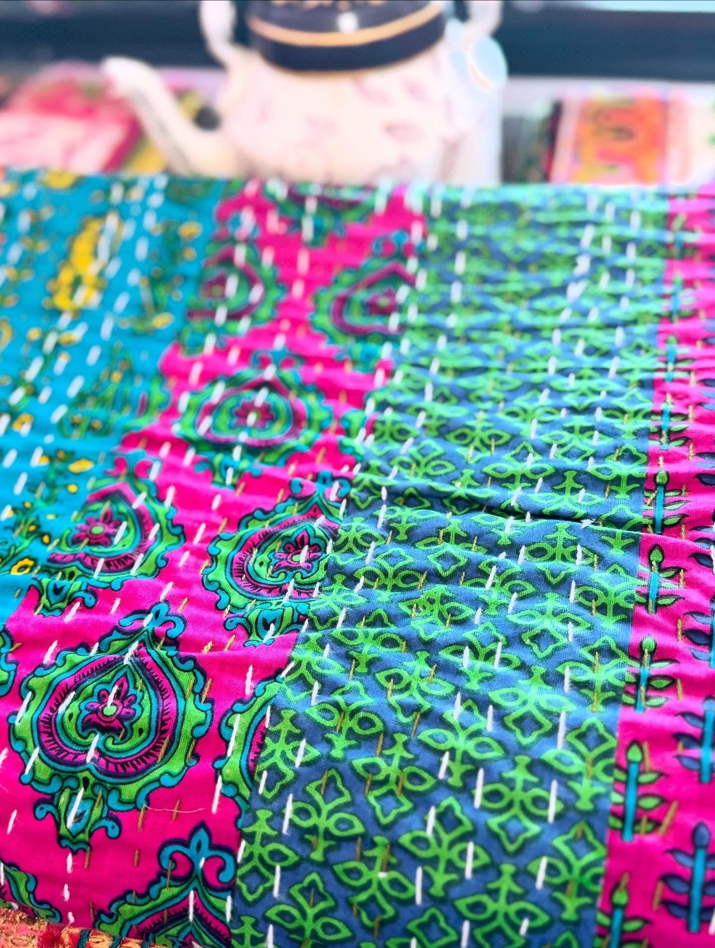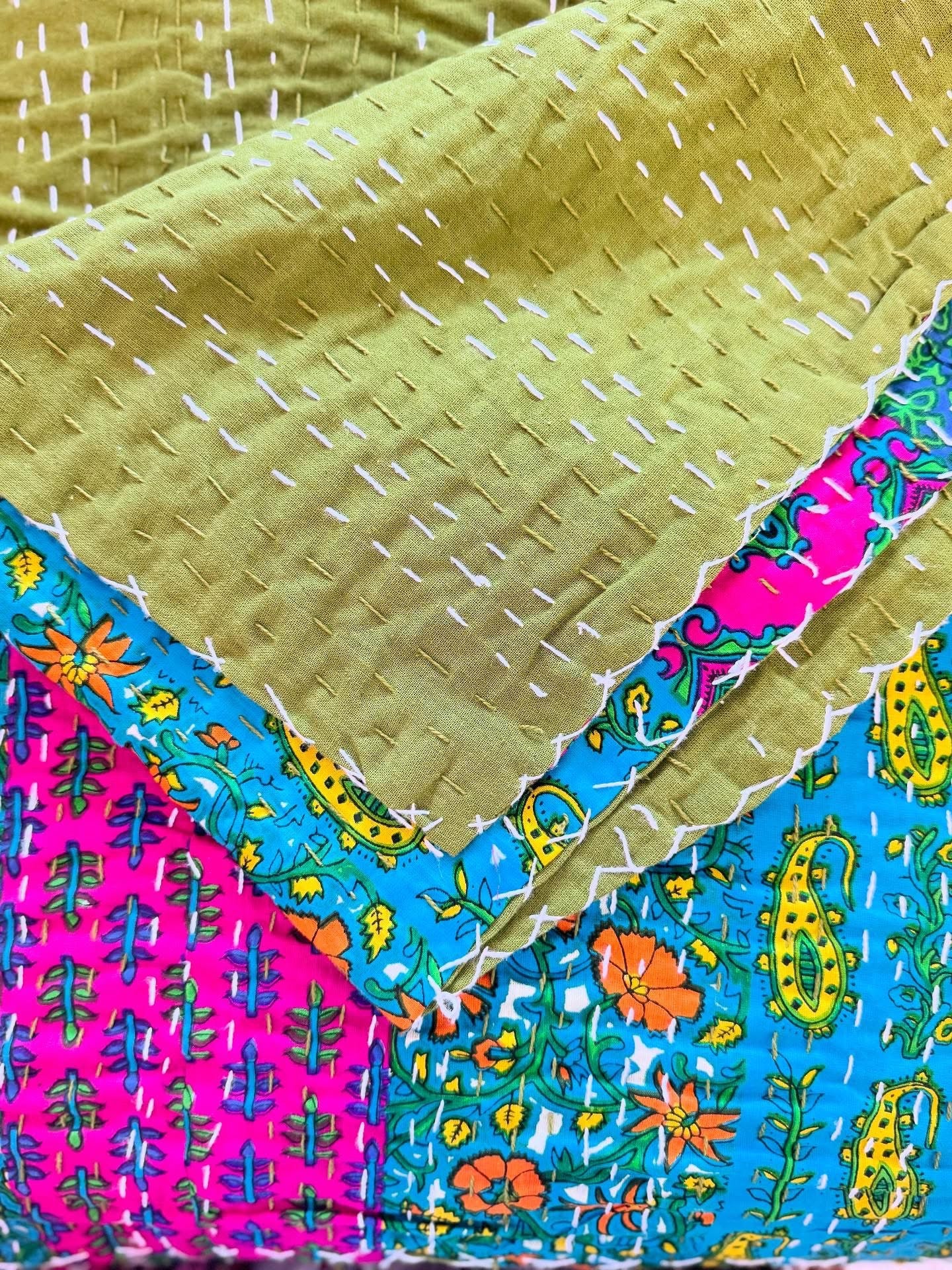 Colorblock Harmony – Handblock Printed Kantha Quilt – 100% Cotton | Handmade