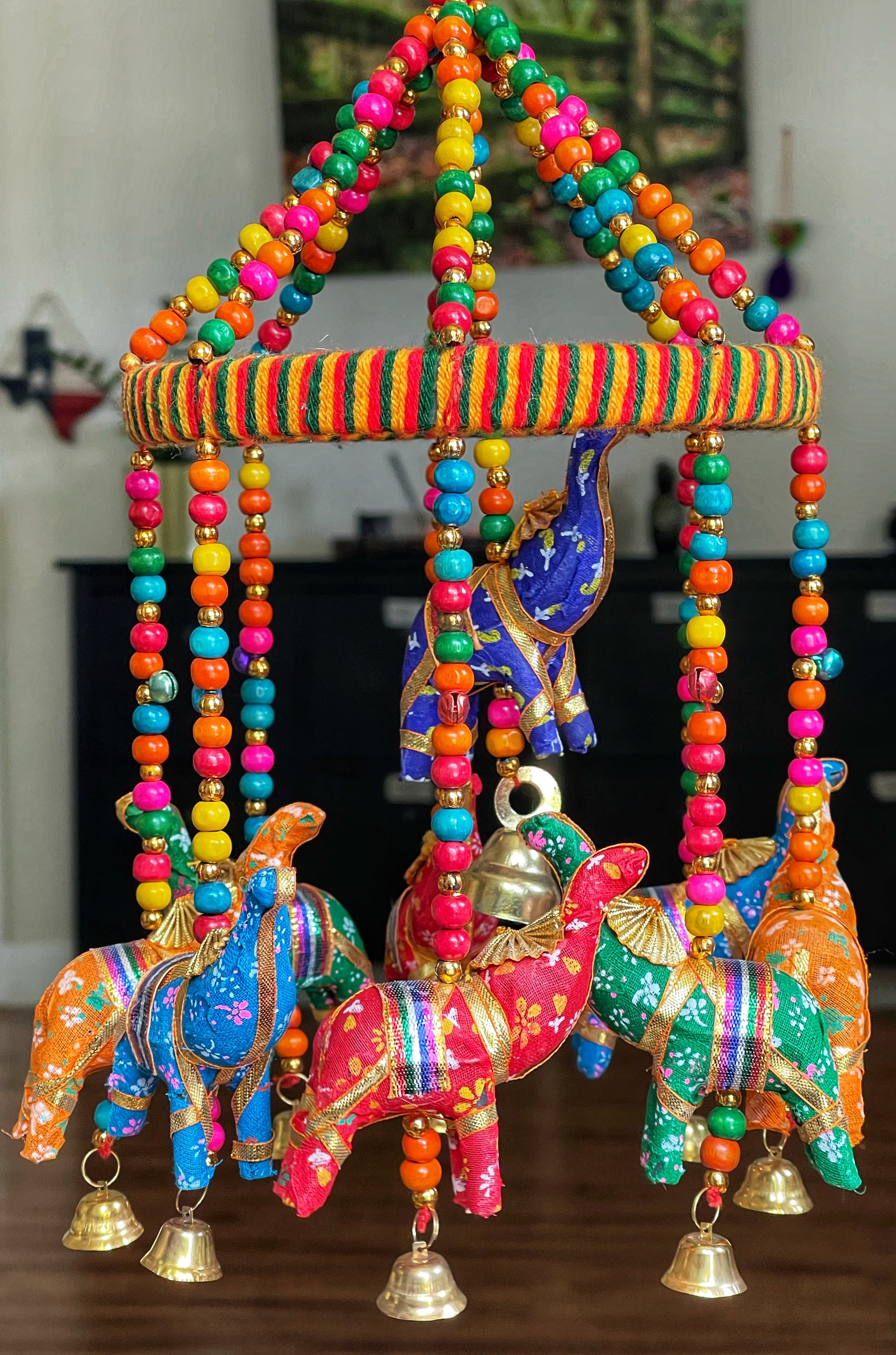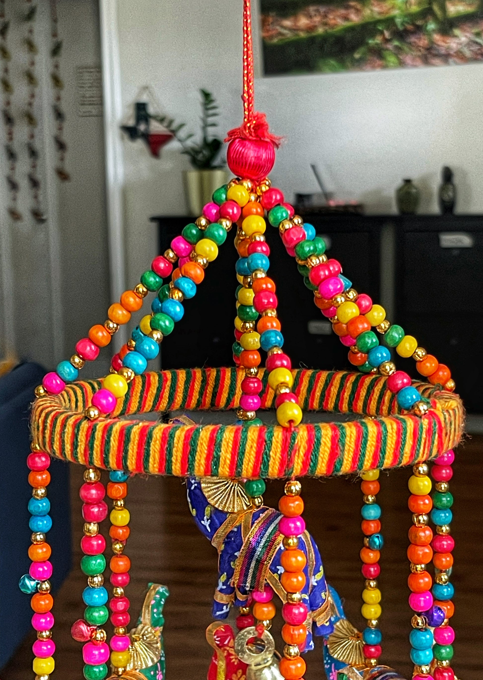 Handmade with Beads, Cotton Fabric and Wood.