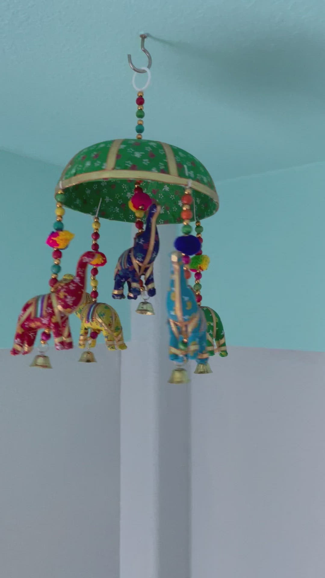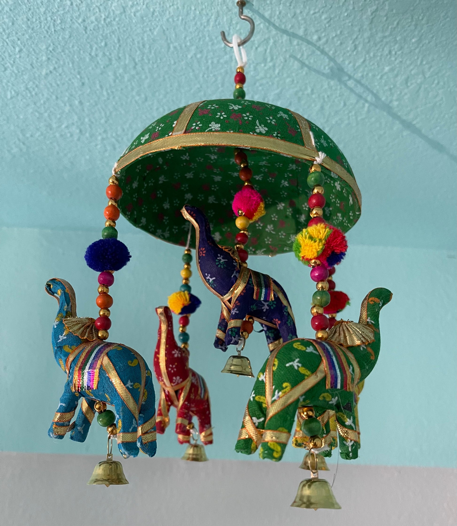 š An Elephant represents 'Strength' and 'Power'. š Each round hanging features 5 elephants, beads, and pompoms, exuding charm and positive energy. š¶ Perfect for hanging over your baby's Changing Table, Crib, or in the play area for a whimsical touch. š” Hang these in the walkway, over the bed, window sill, or any space that brings you joy.