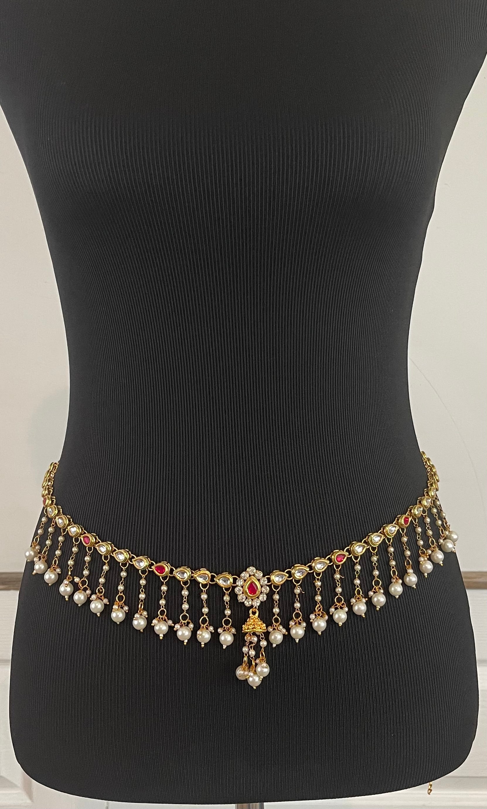 Handcrafted Waist Belt with Kundans, Imitation Pearls and Rhinestones. A fun waistbelt to accessorize and turn heads.