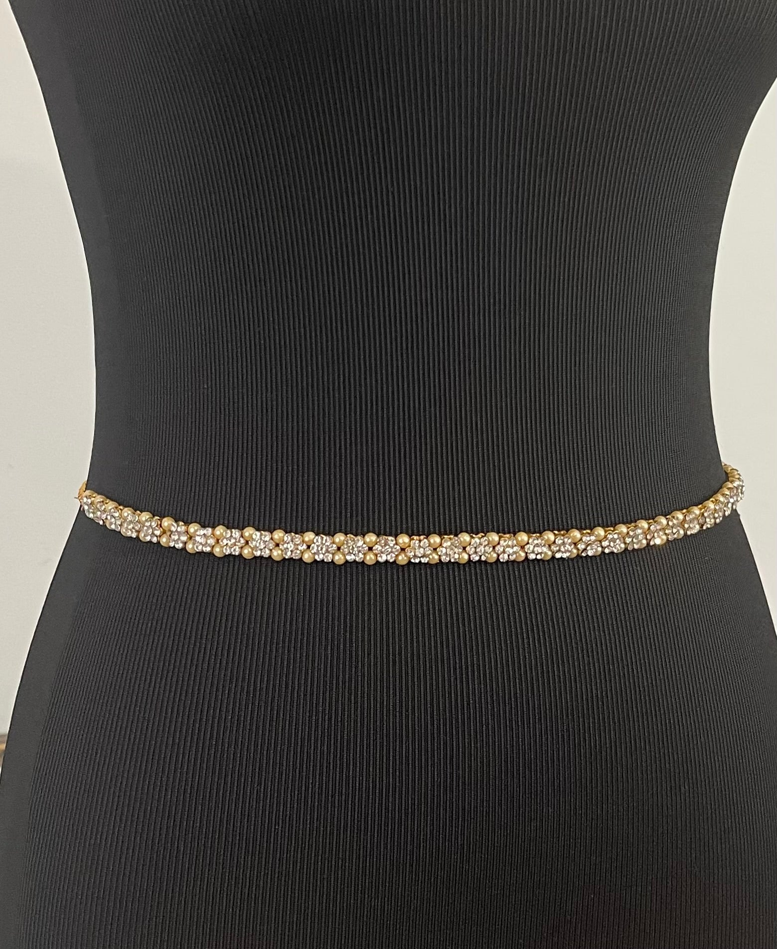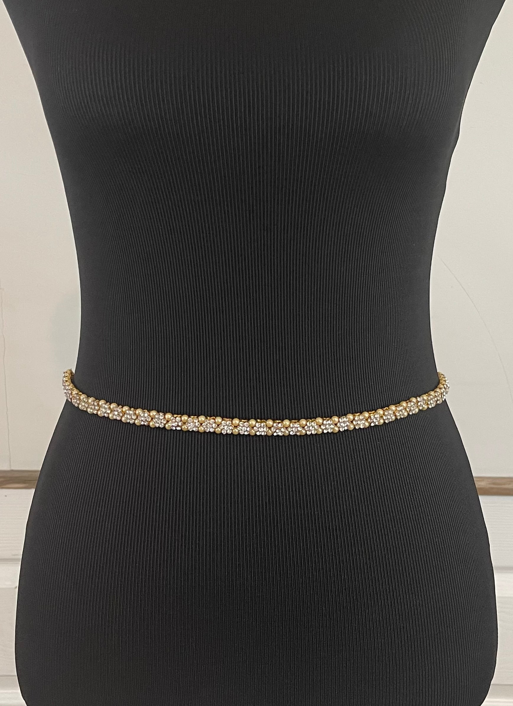 Handcrafted Waist Belt with Rhinestone flowers embellished with imitation pearls.