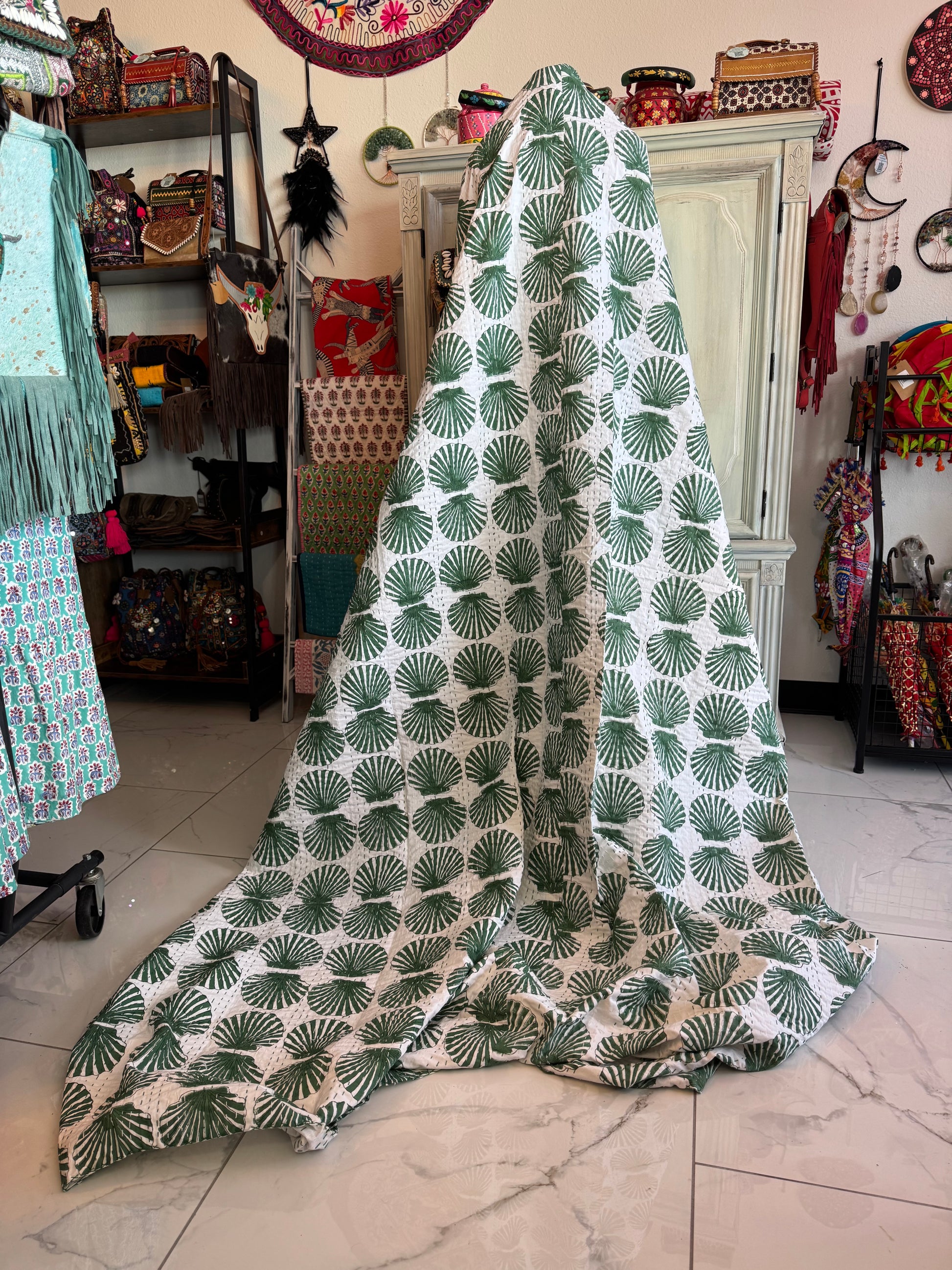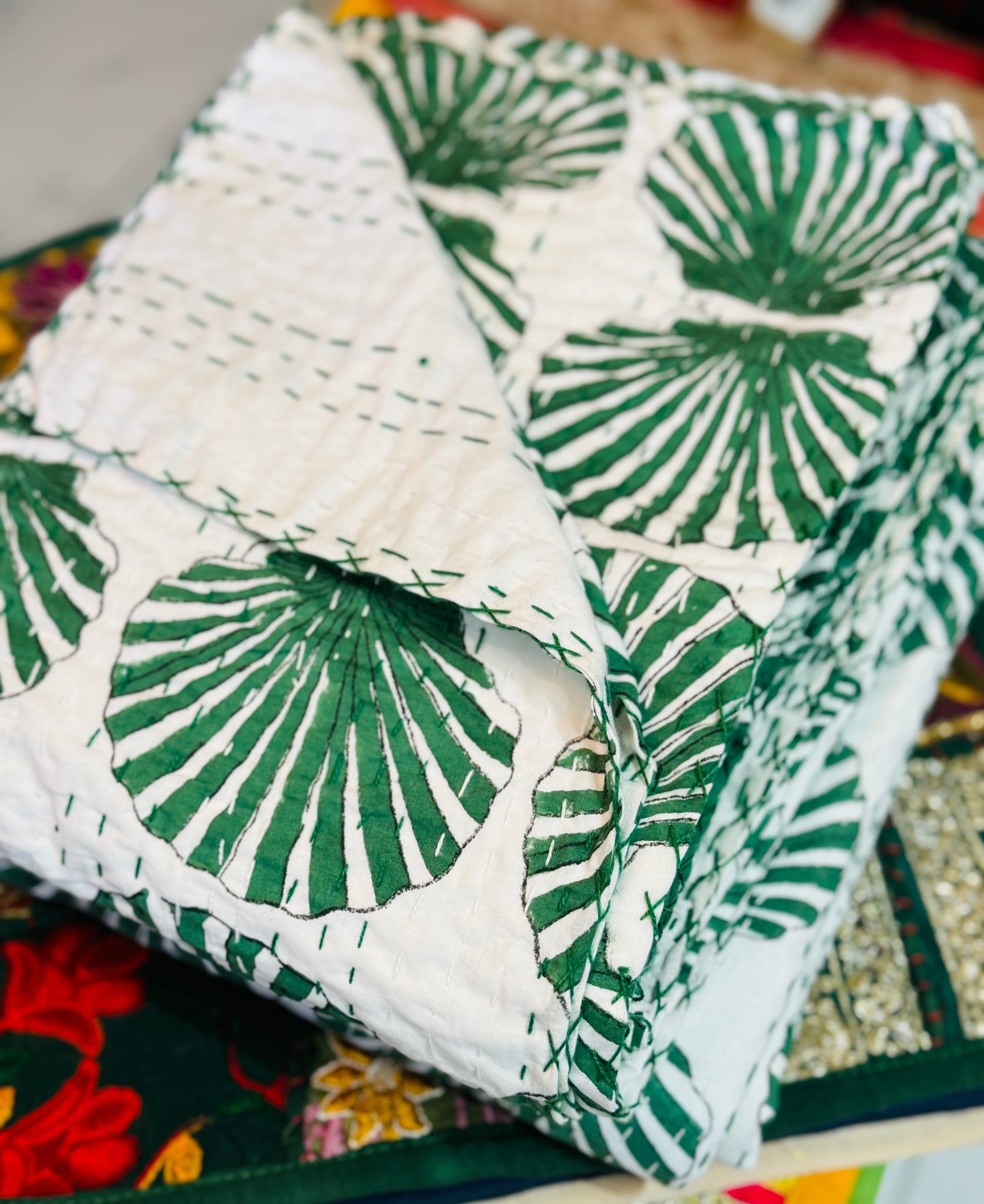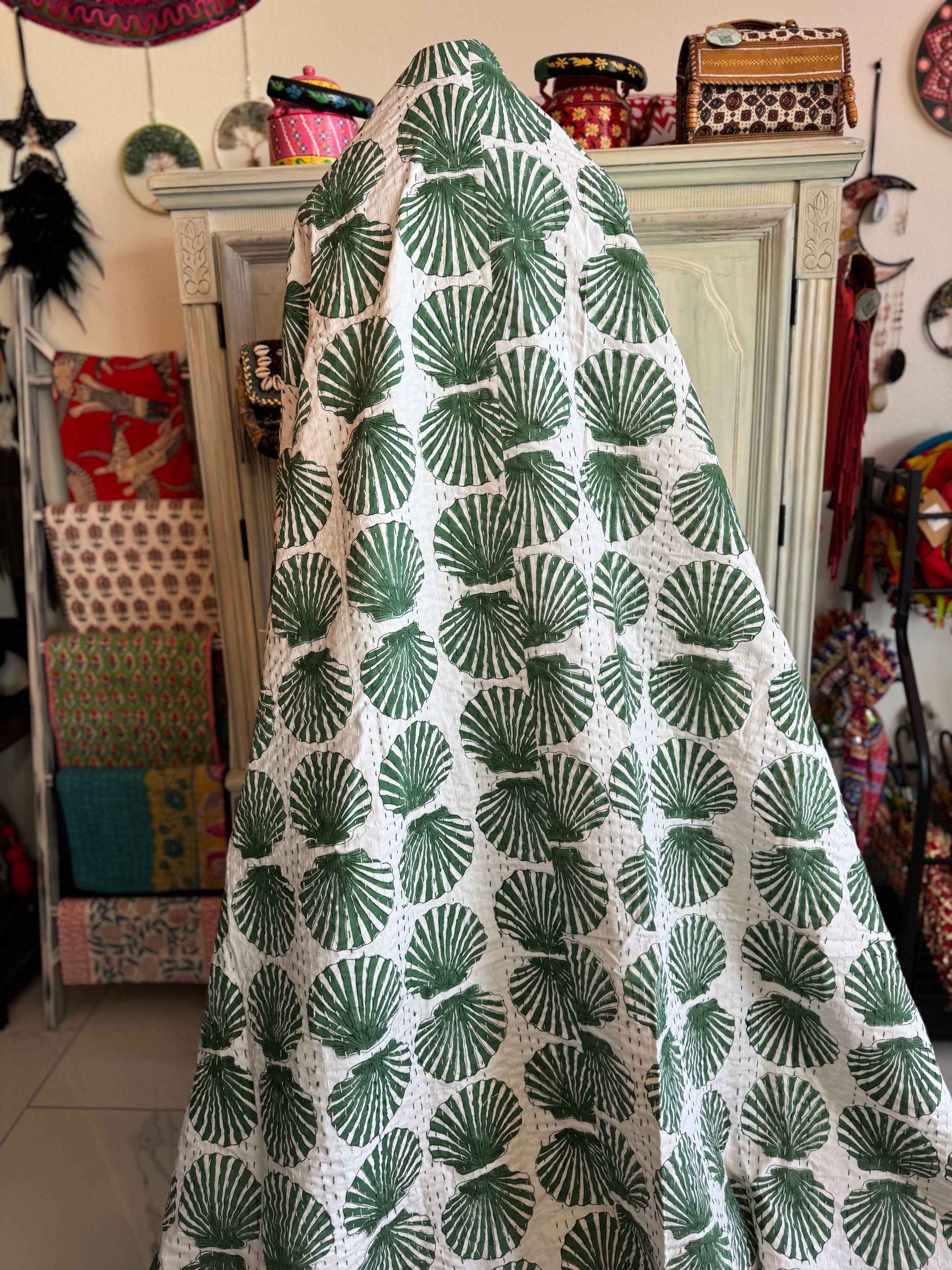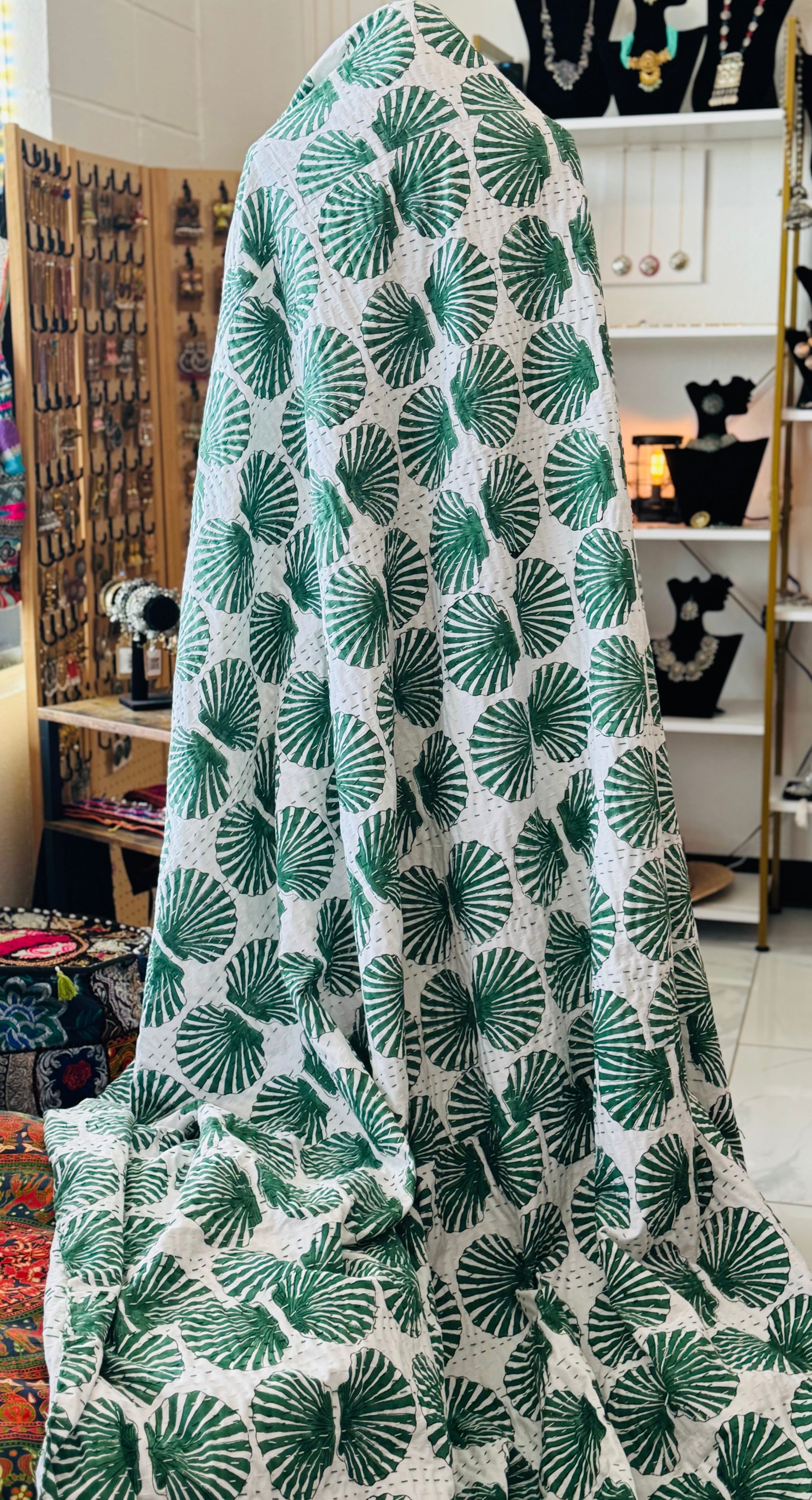 Green Tide – Handmade Kantha Quilt | 100% Cotton | Collector’s Edition