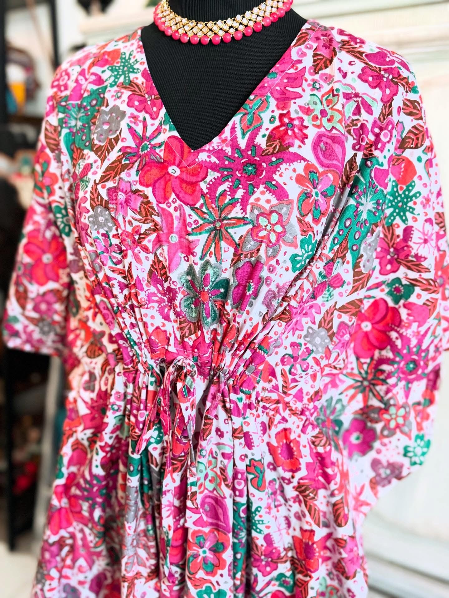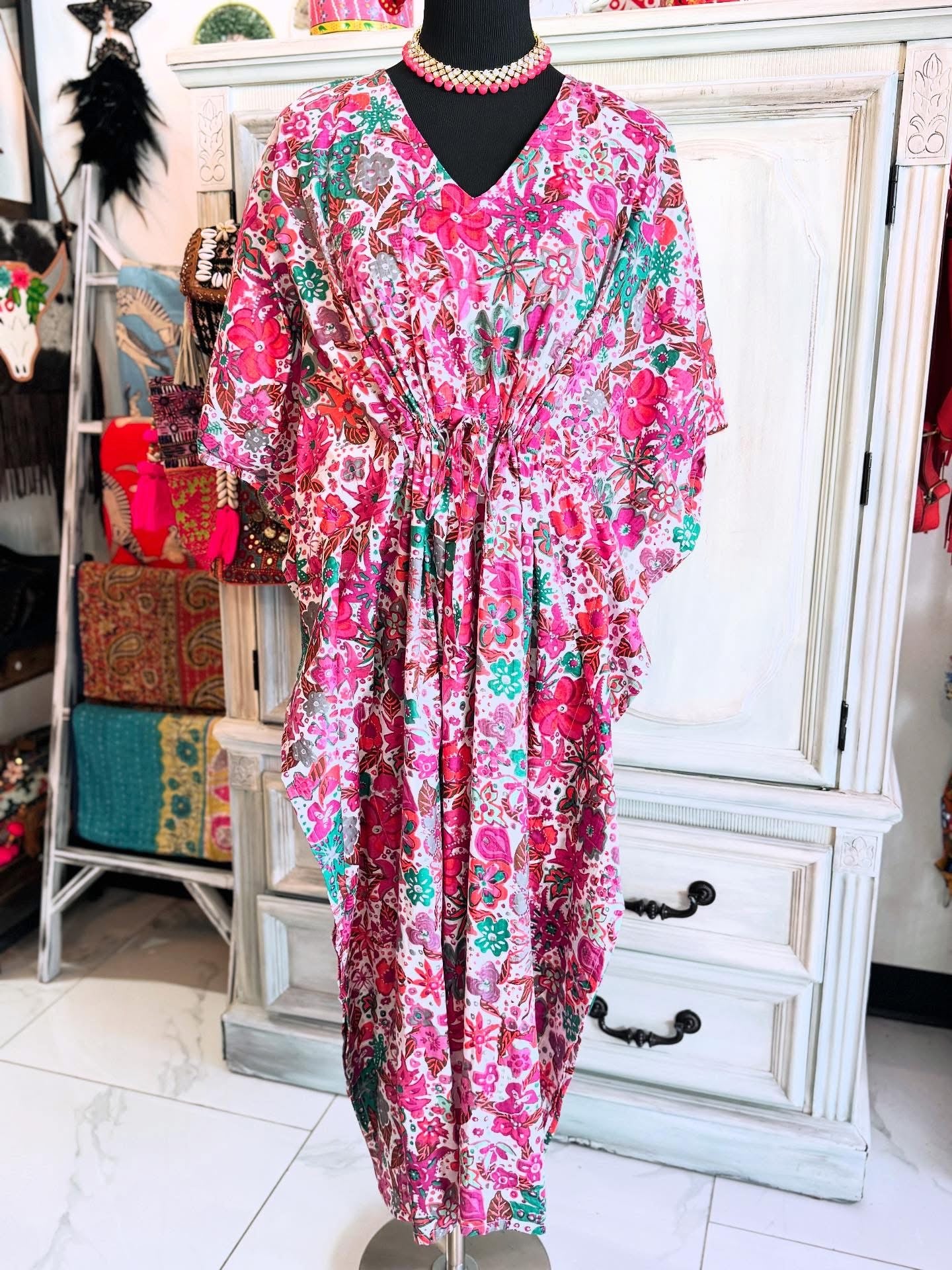 Soft, breathable, and effortlessly stylish — this 100% cotton handblock print kaftan is made to move with you. Featuring a flattering drawstring waist and a relaxed fit (48” length x 40” wide), it’s polished enough for work, cozy enough for home, and perfect for everything in between.