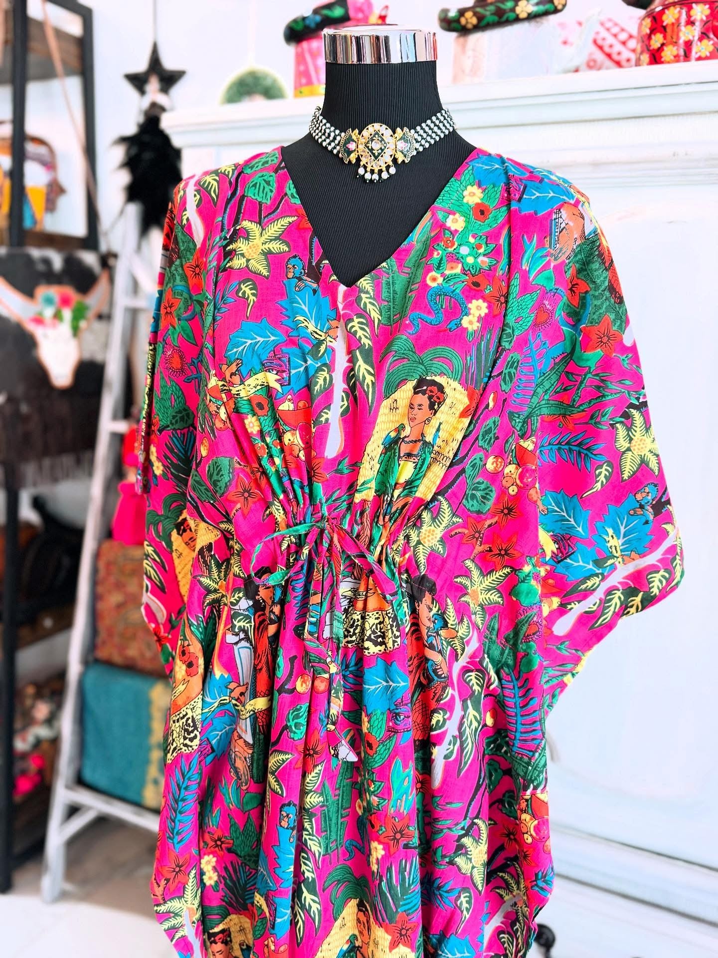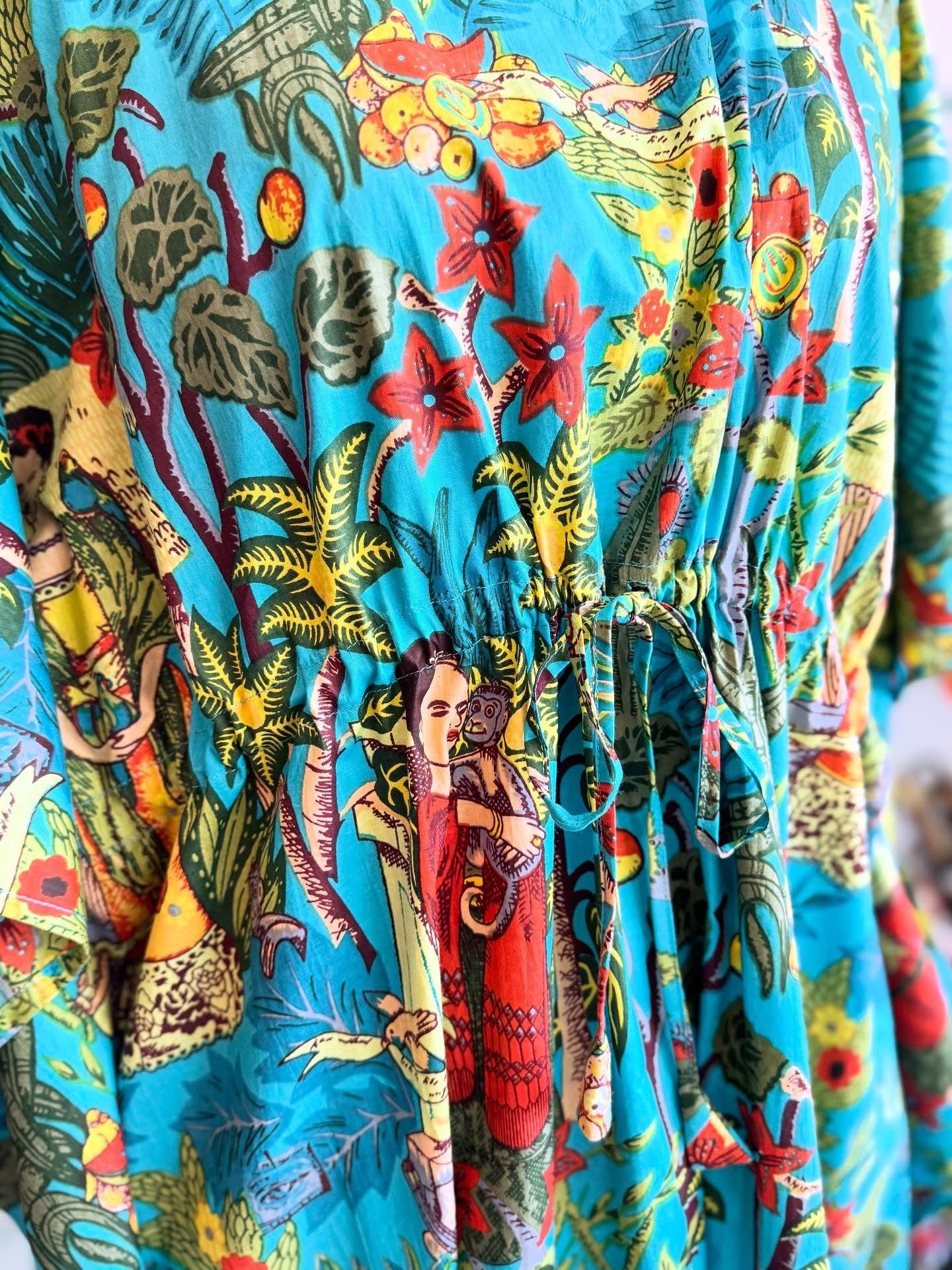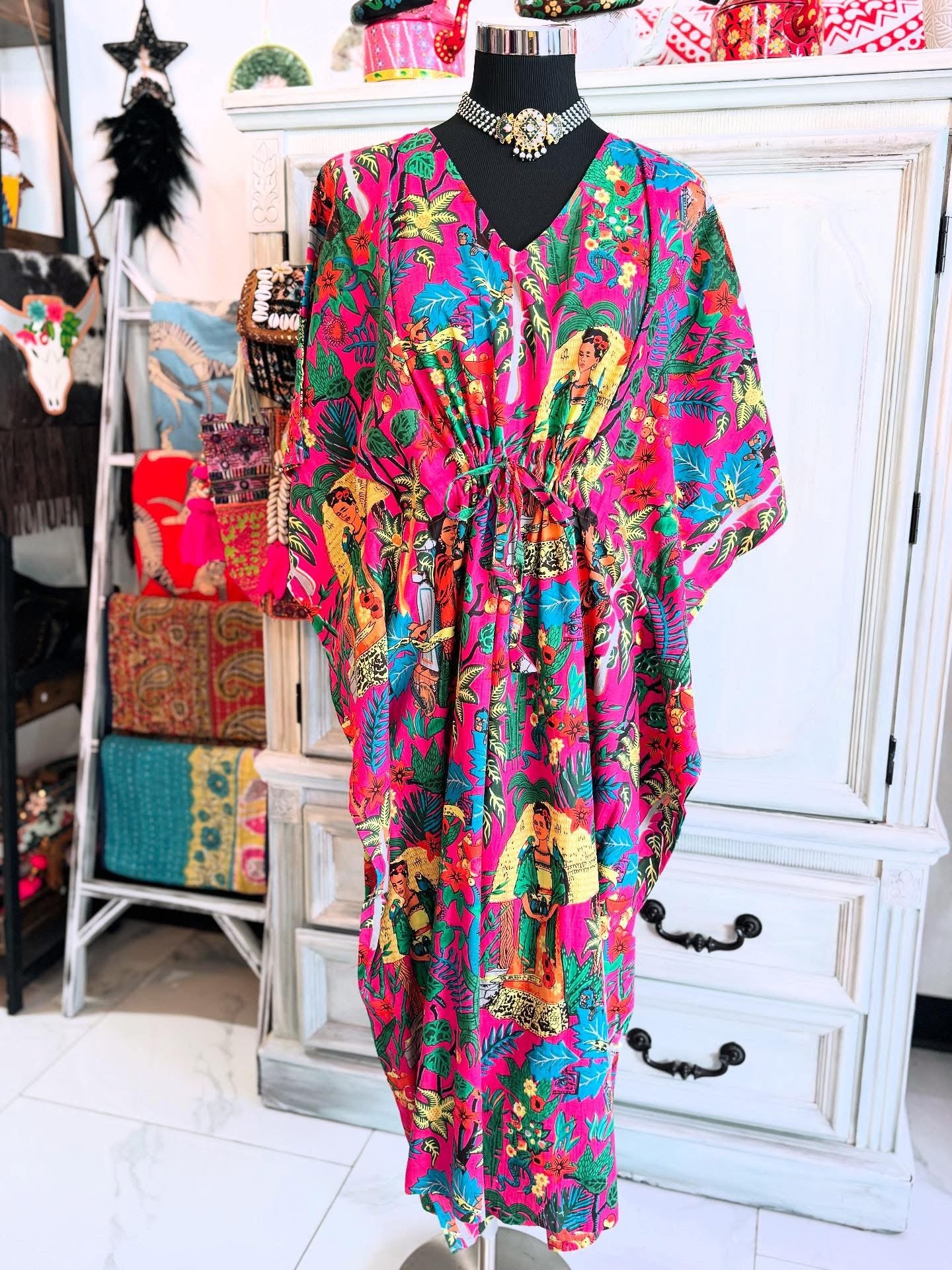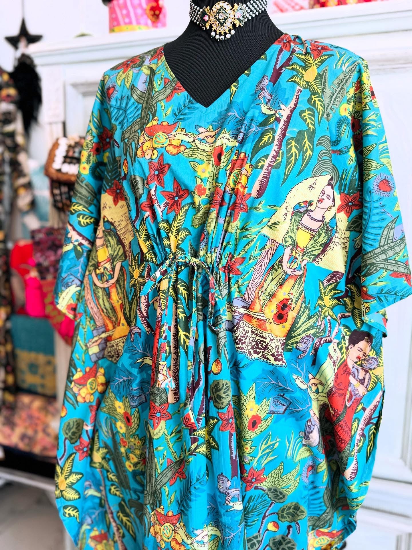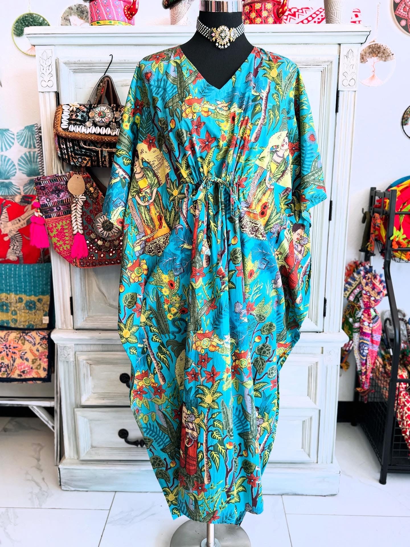 Soft, breathable, and effortlessly stylish — this 100% cotton handblock print kaftan is made to move with you. Featuring a flattering drawstring waist and a relaxed fit (48” length x 40” wide), it’s polished enough for work, cozy enough for home, and perfect for everything in between.