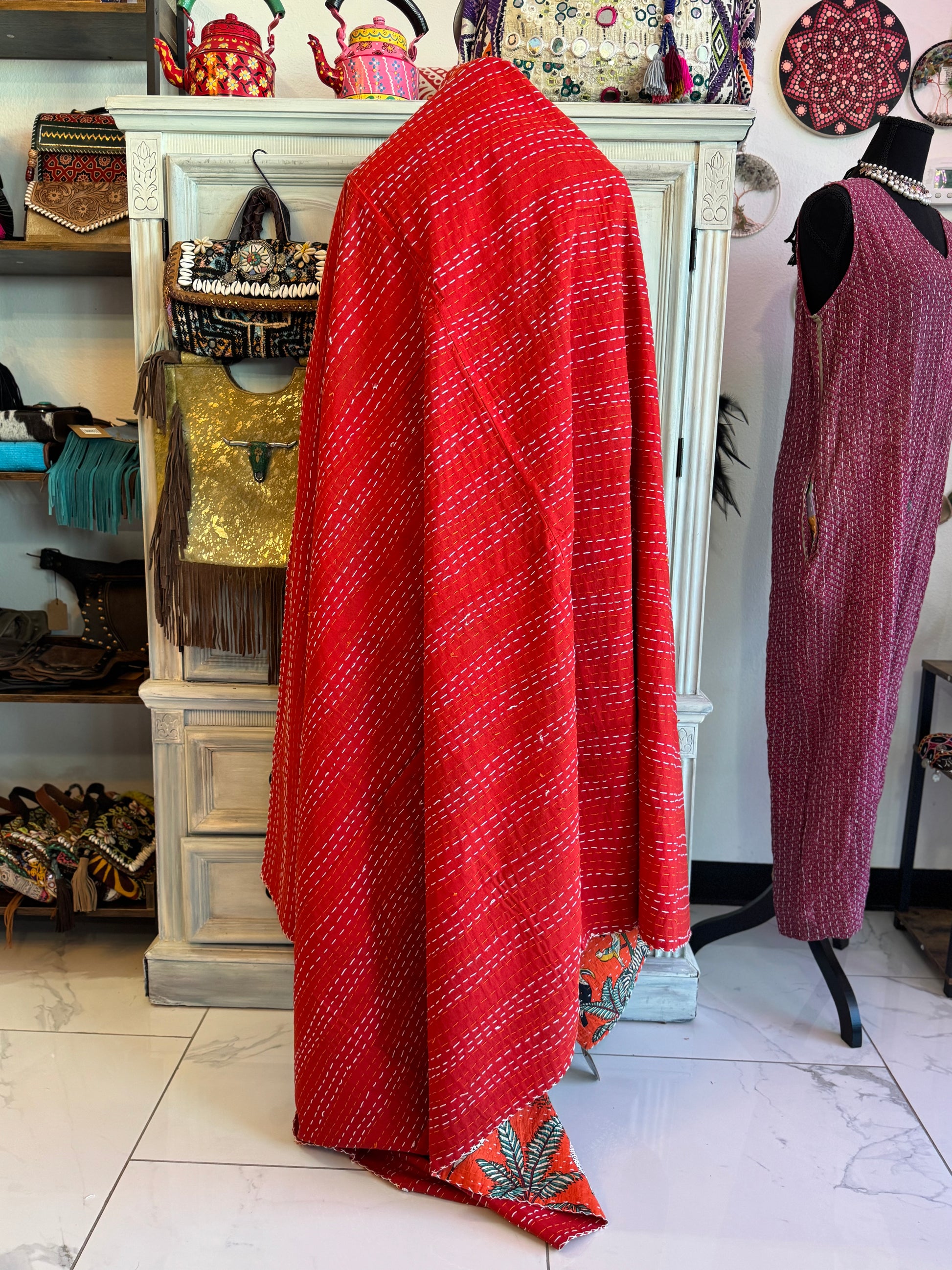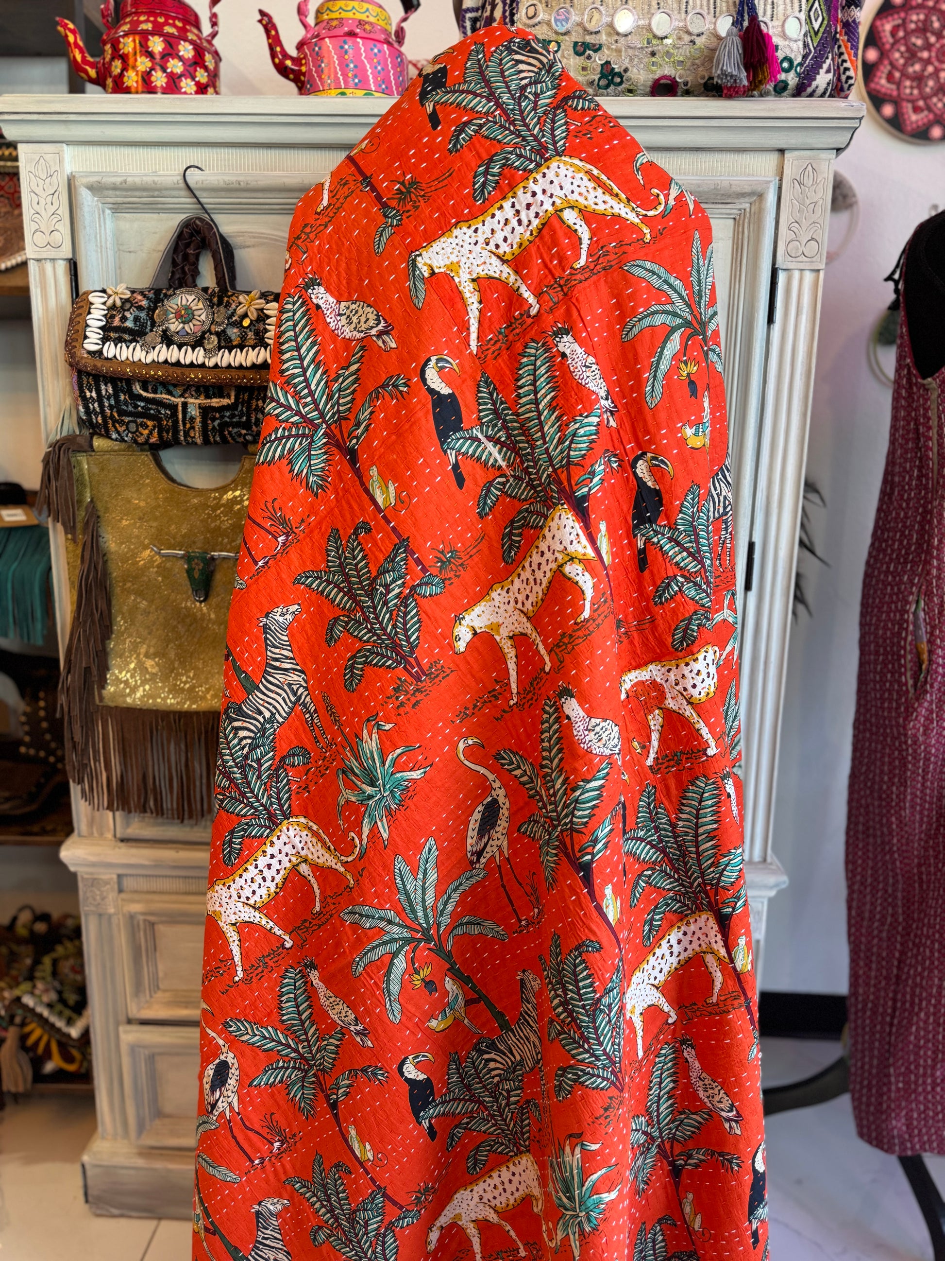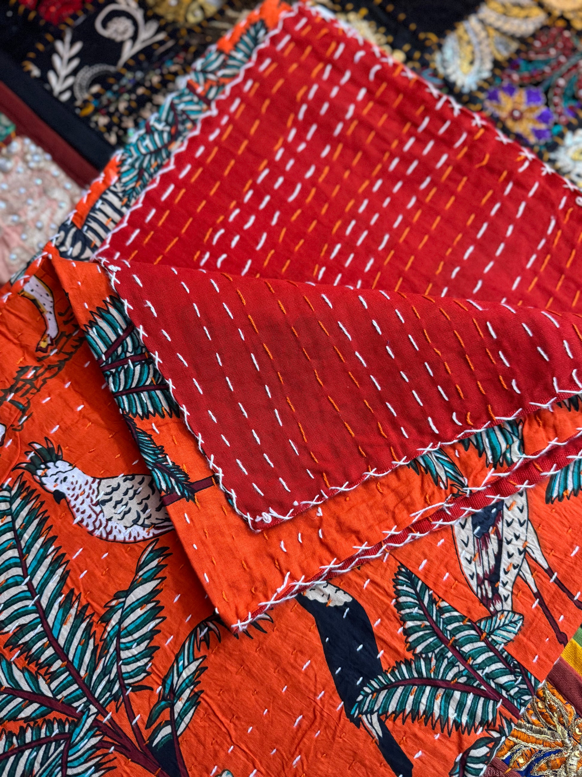 Jungle Print- Orange- Handblock Printed Kantha Quilt | Cotton | Handmade