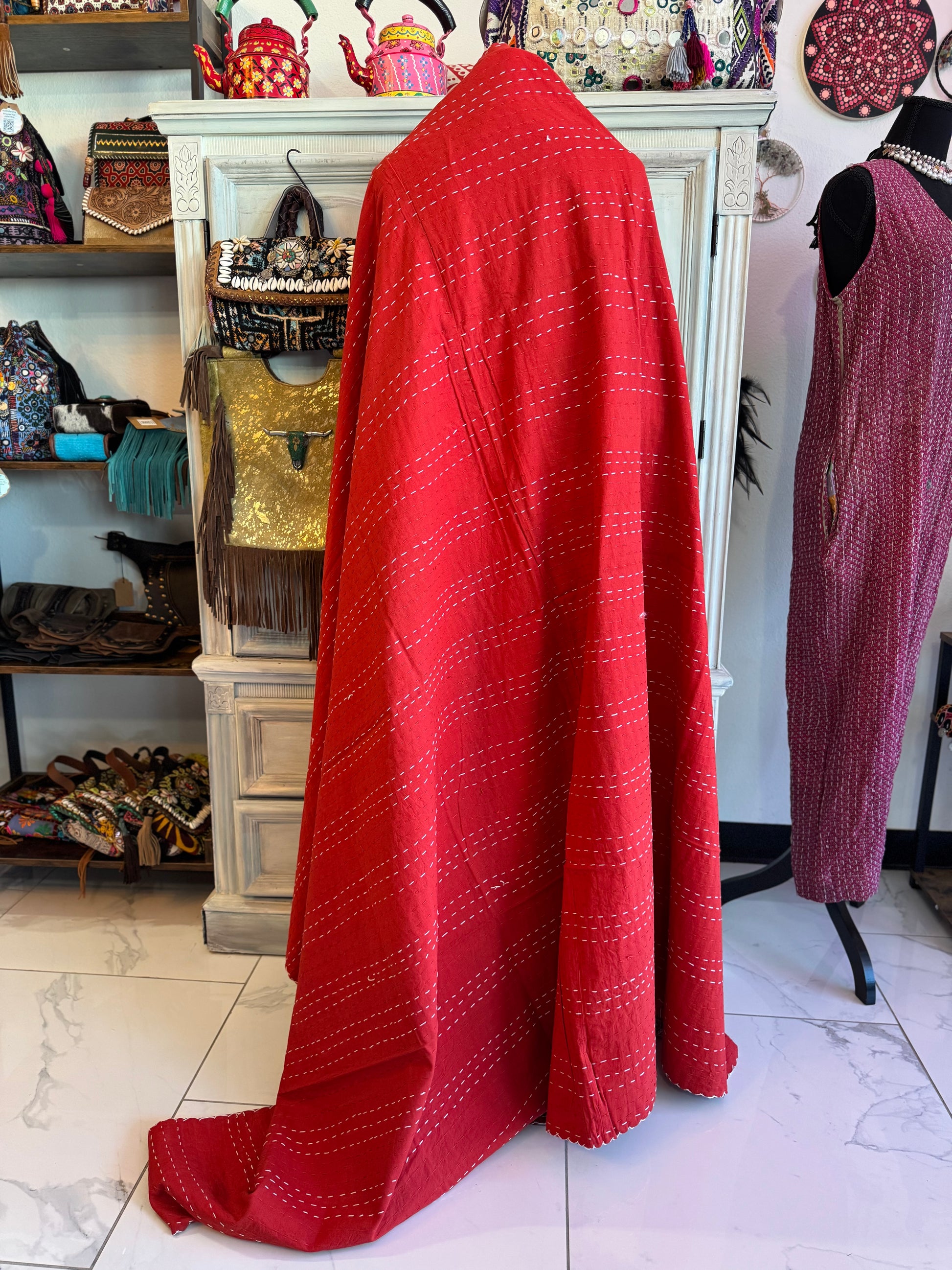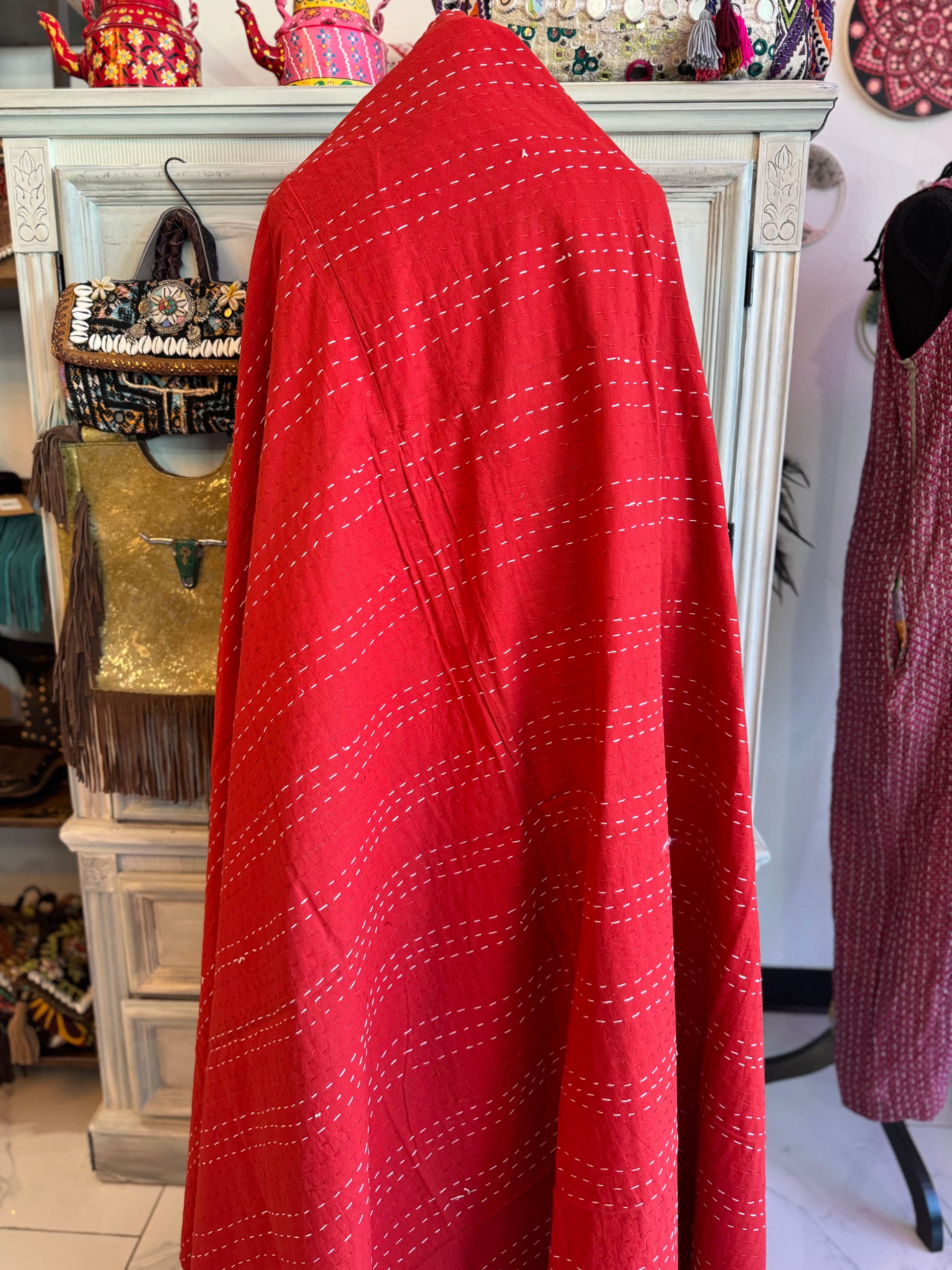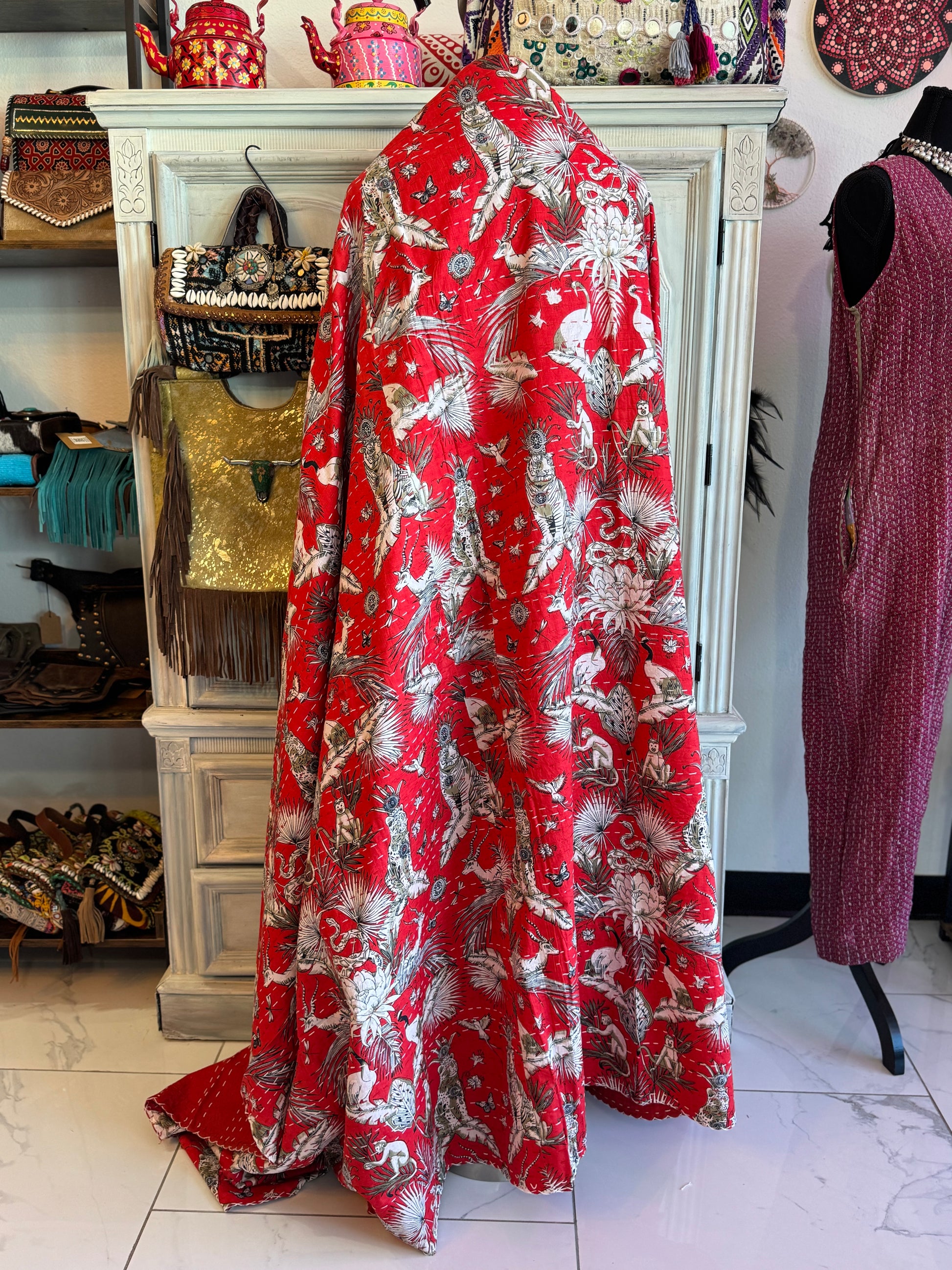 Jungle Print- Red- Handblock Printed Kantha Quilt | Cotton | Handmade