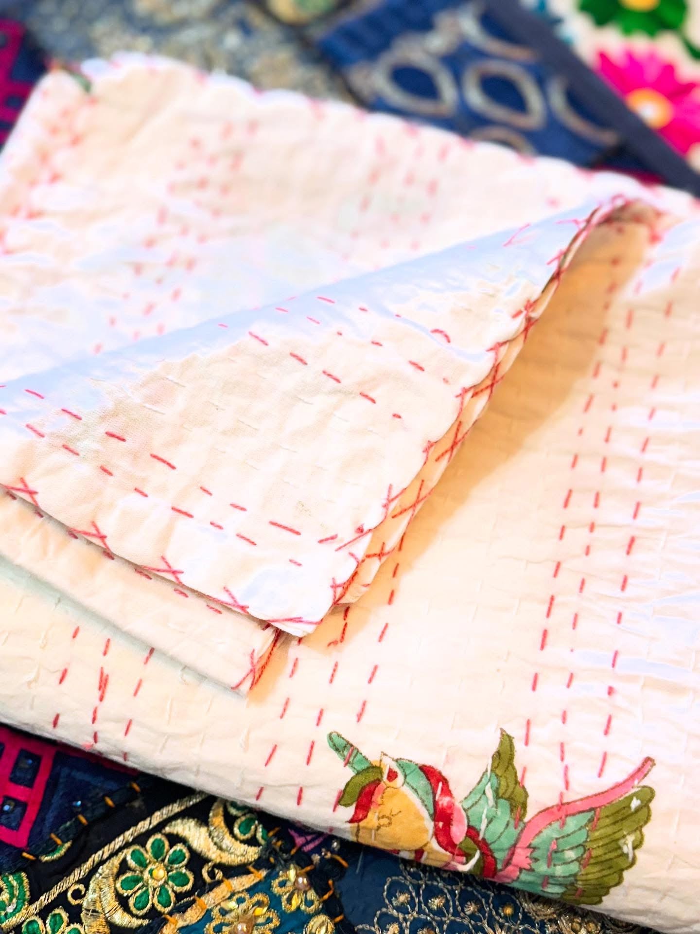 Handmade Kantha Stitching: Unique, artisanal craftsmanship.