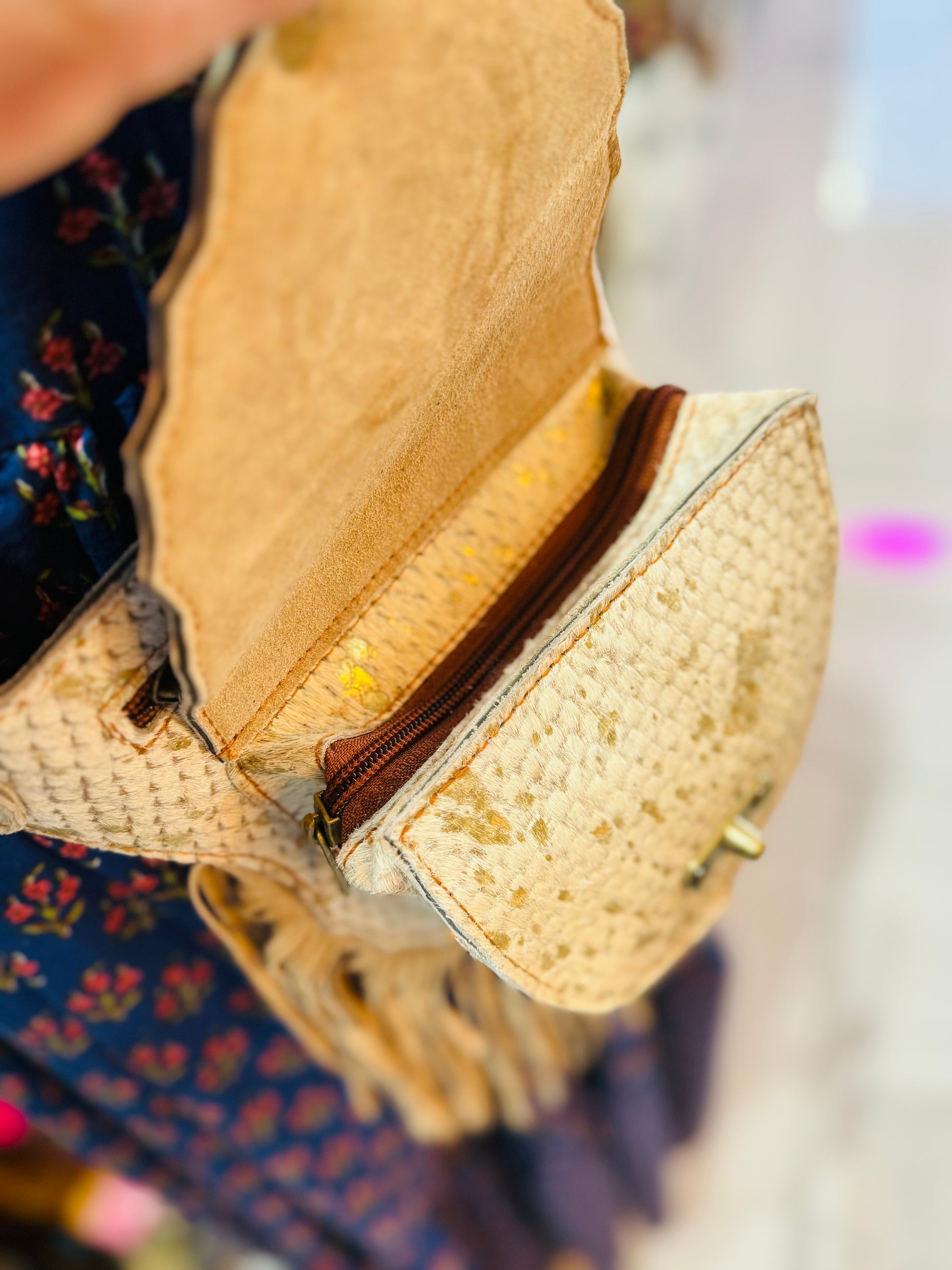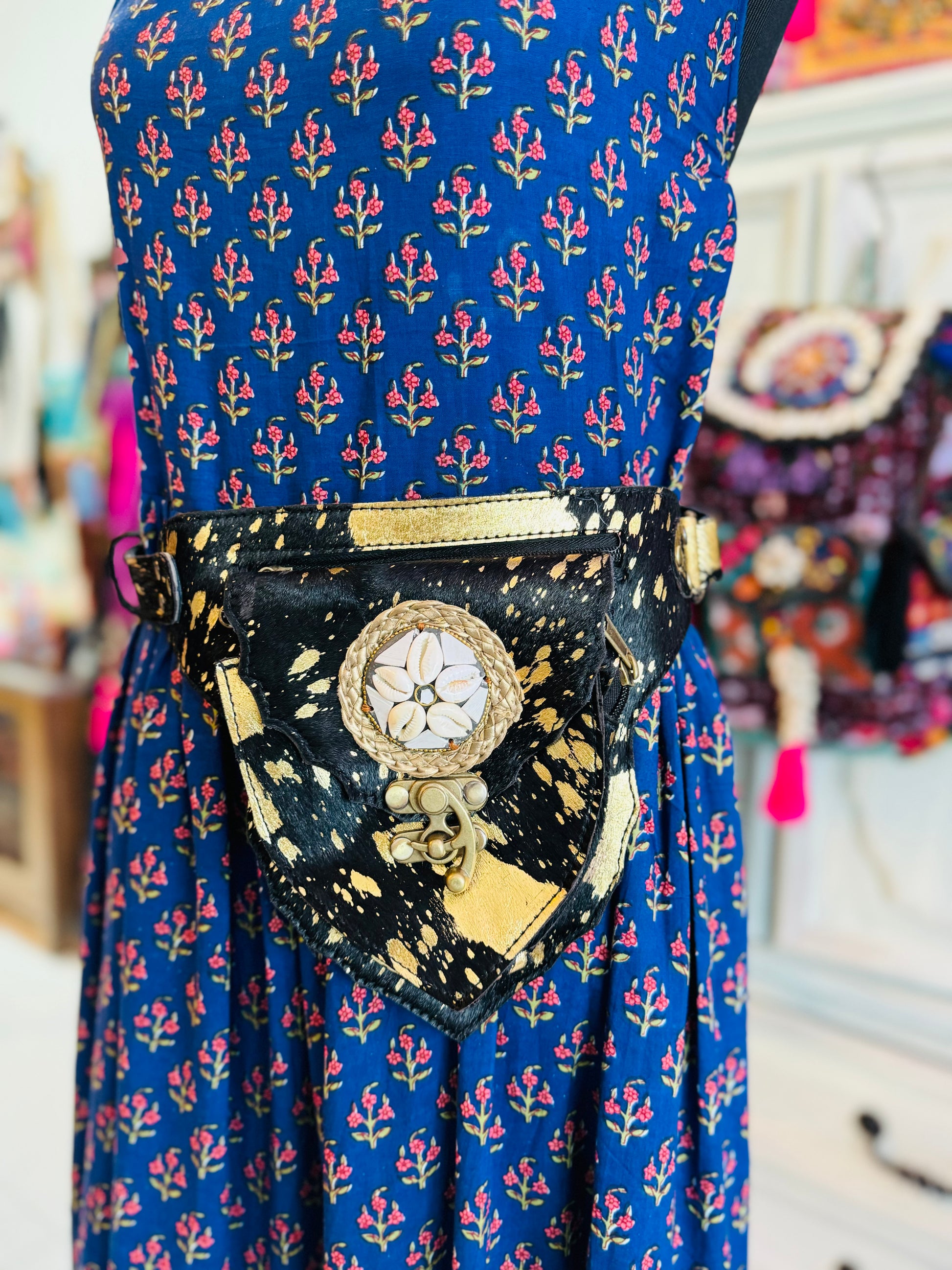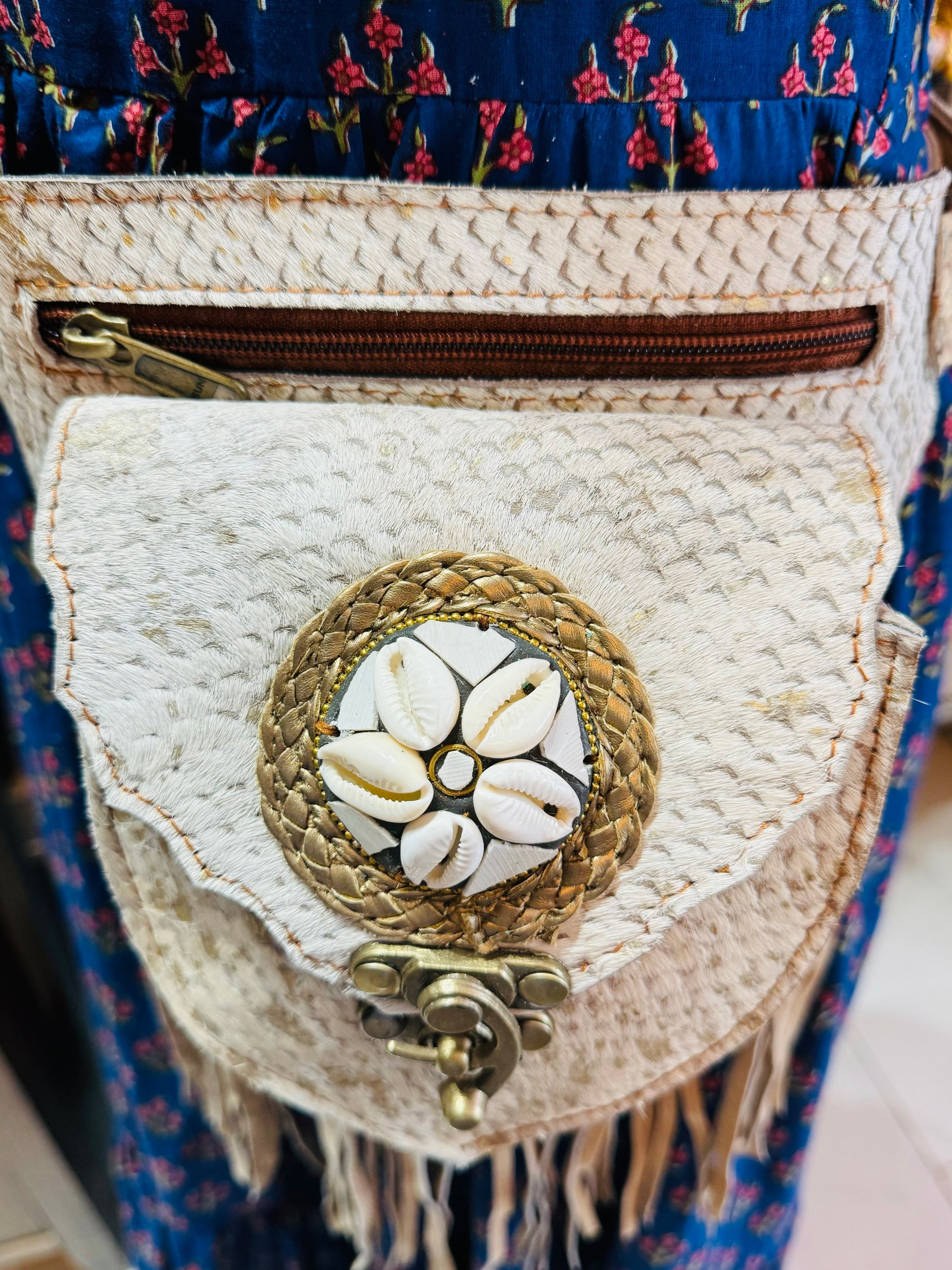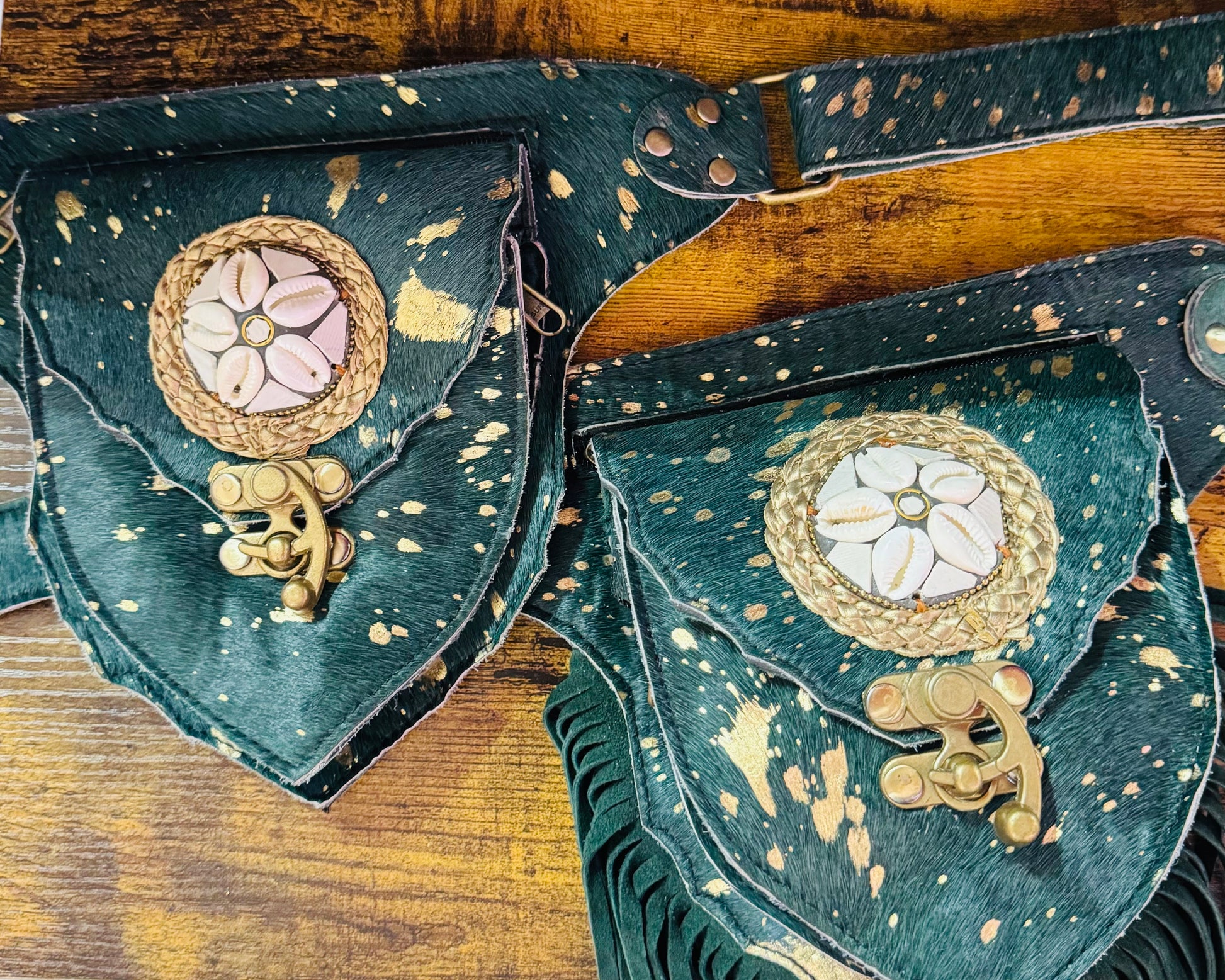 Elevate your accessory game with these stunning fanny packs, meticulously crafted from genuine cowhide and leather. Combining functionality with unique style, these pieces are perfect for those who appreciate fine craftsmanship and distinctive design.