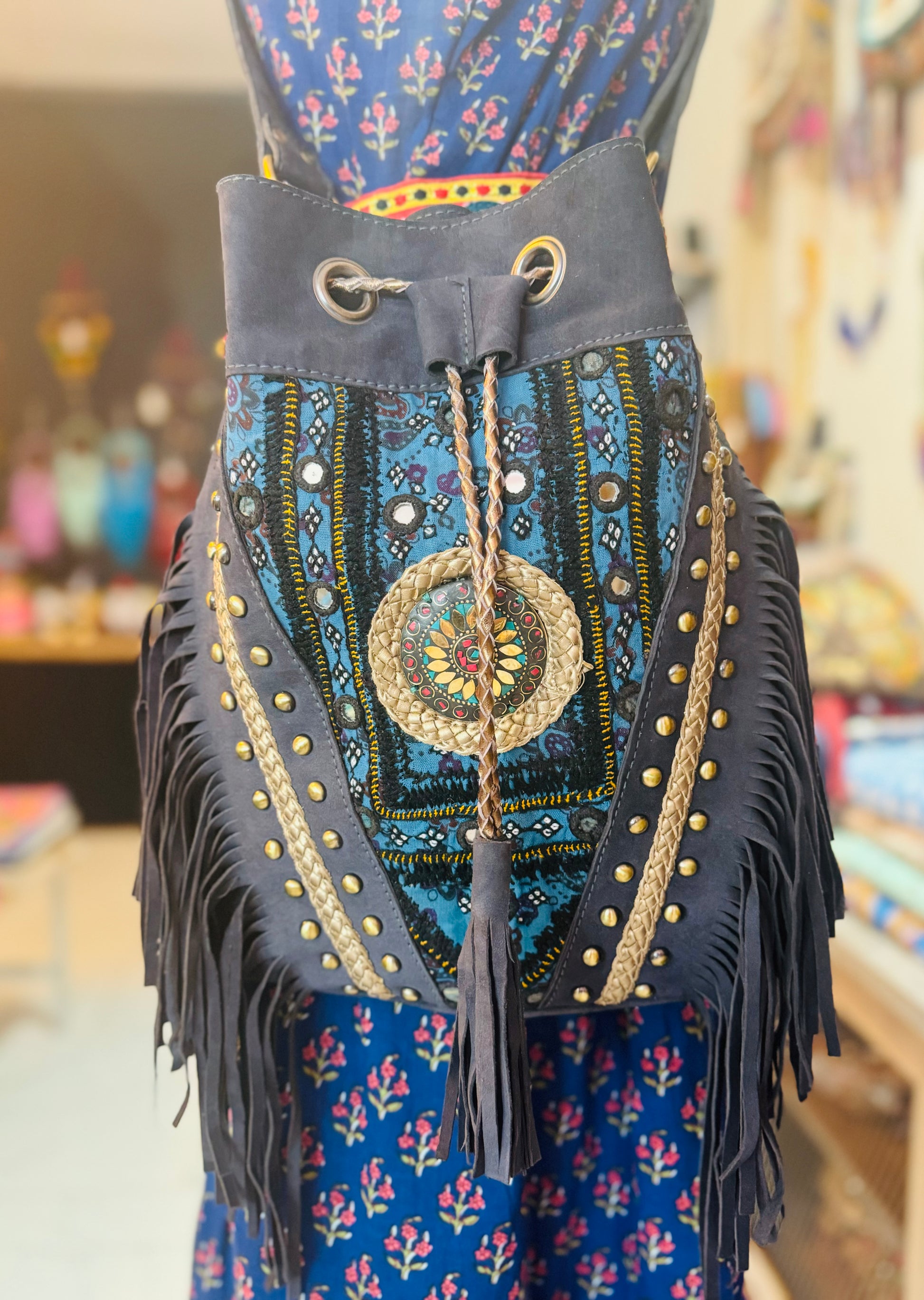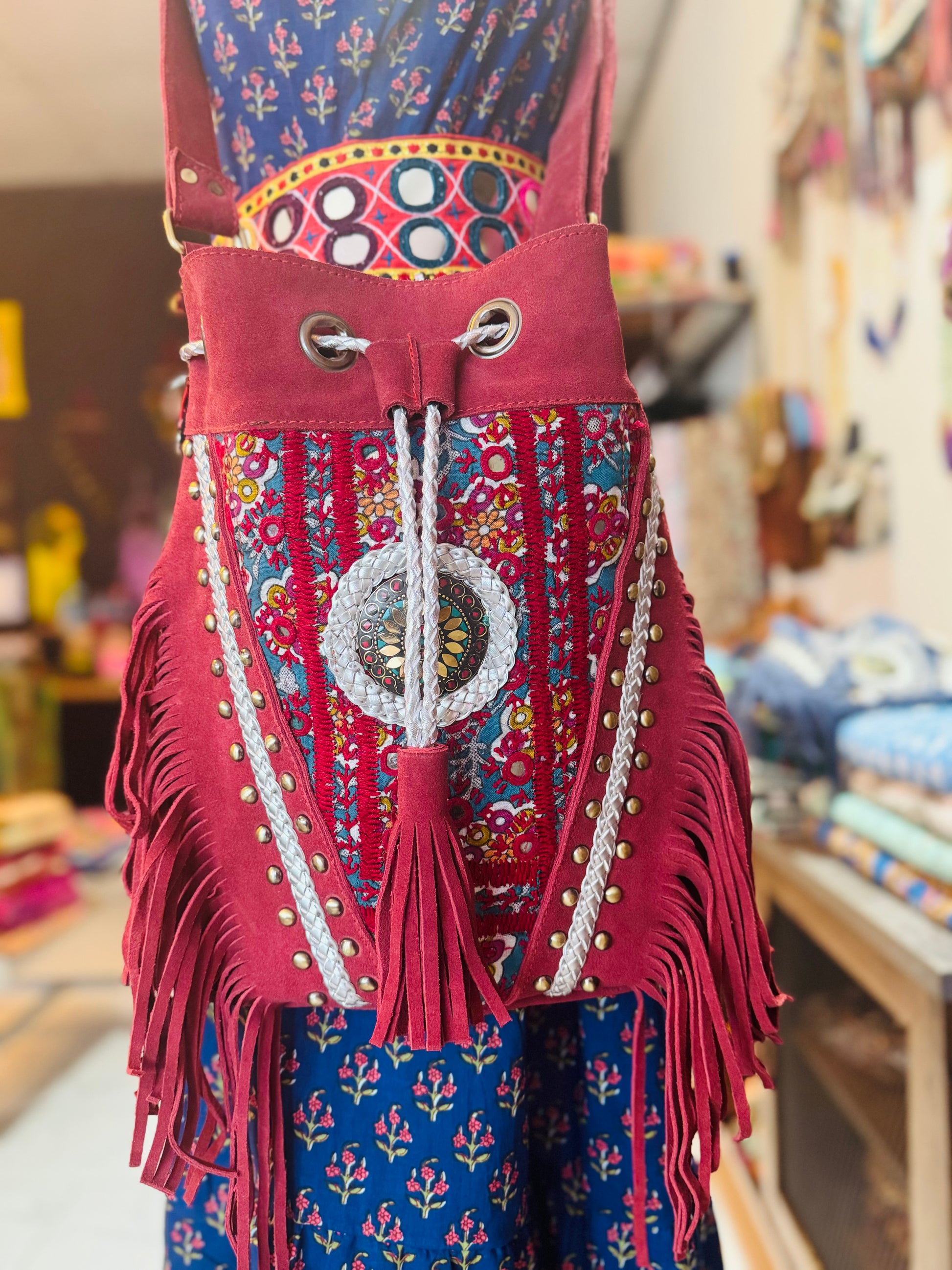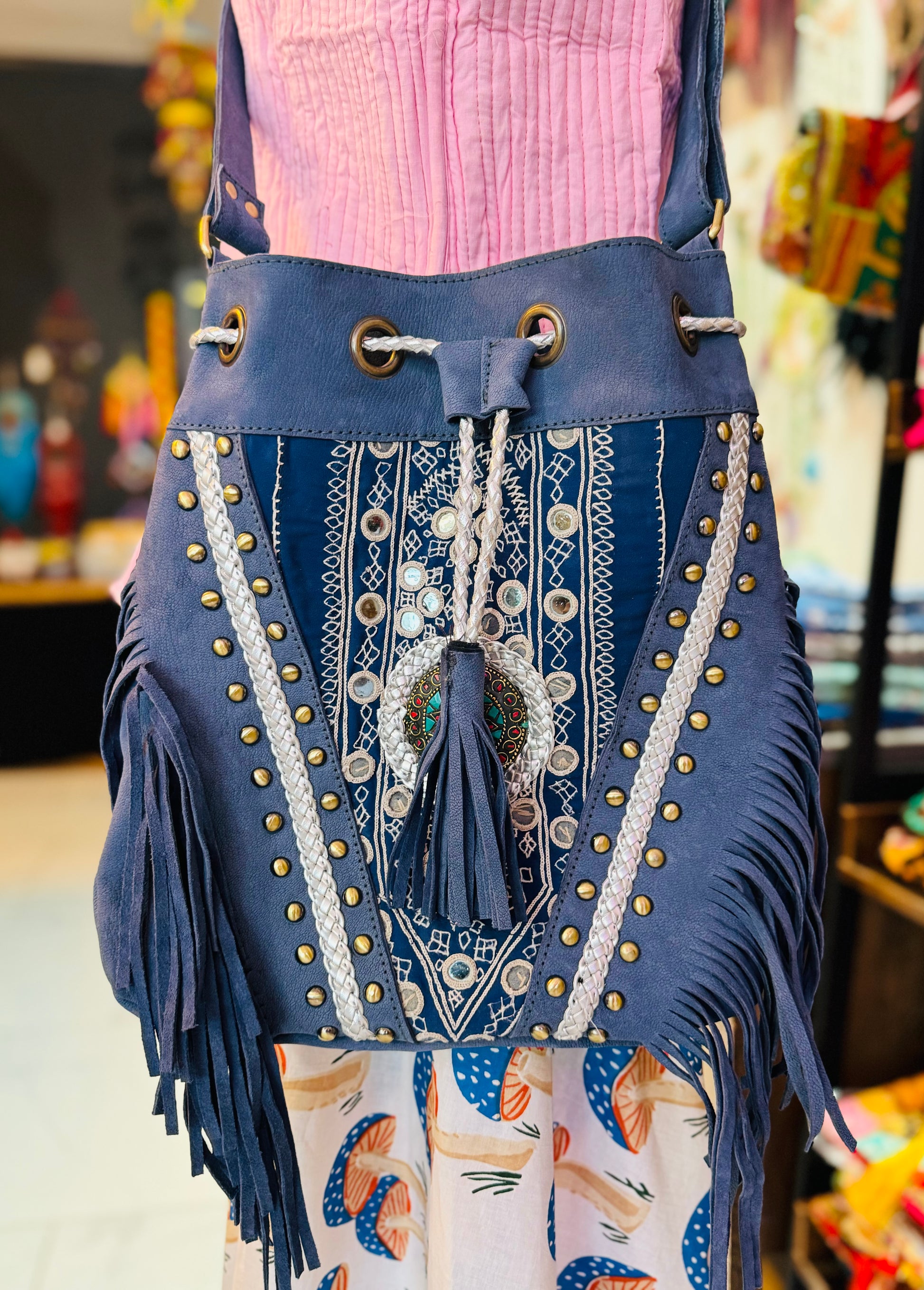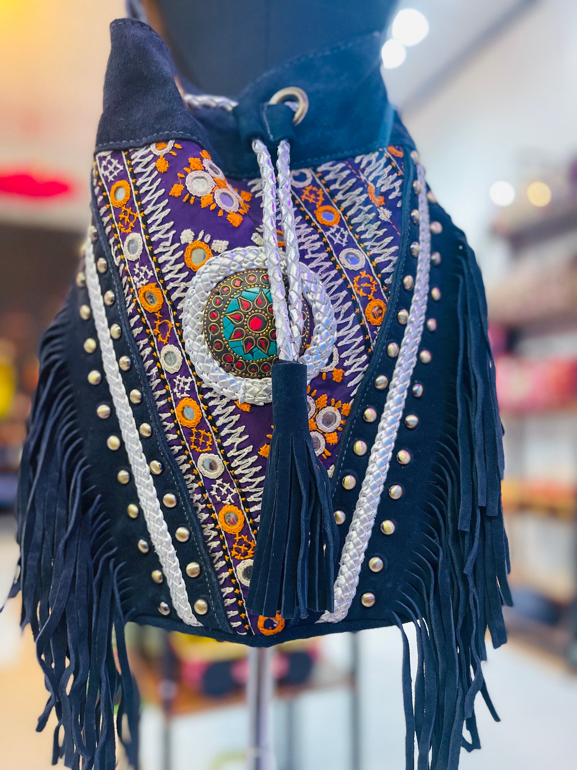 Unveil the epitome of style, tradition, and sophistication with our exquisite Leather Potli Bags. Crafted with precision and a deep appreciation for artistry, these bags are more than just accessories; they are a reflection of your refined taste and a nod to the timeless charm of traditional craftsmanship.