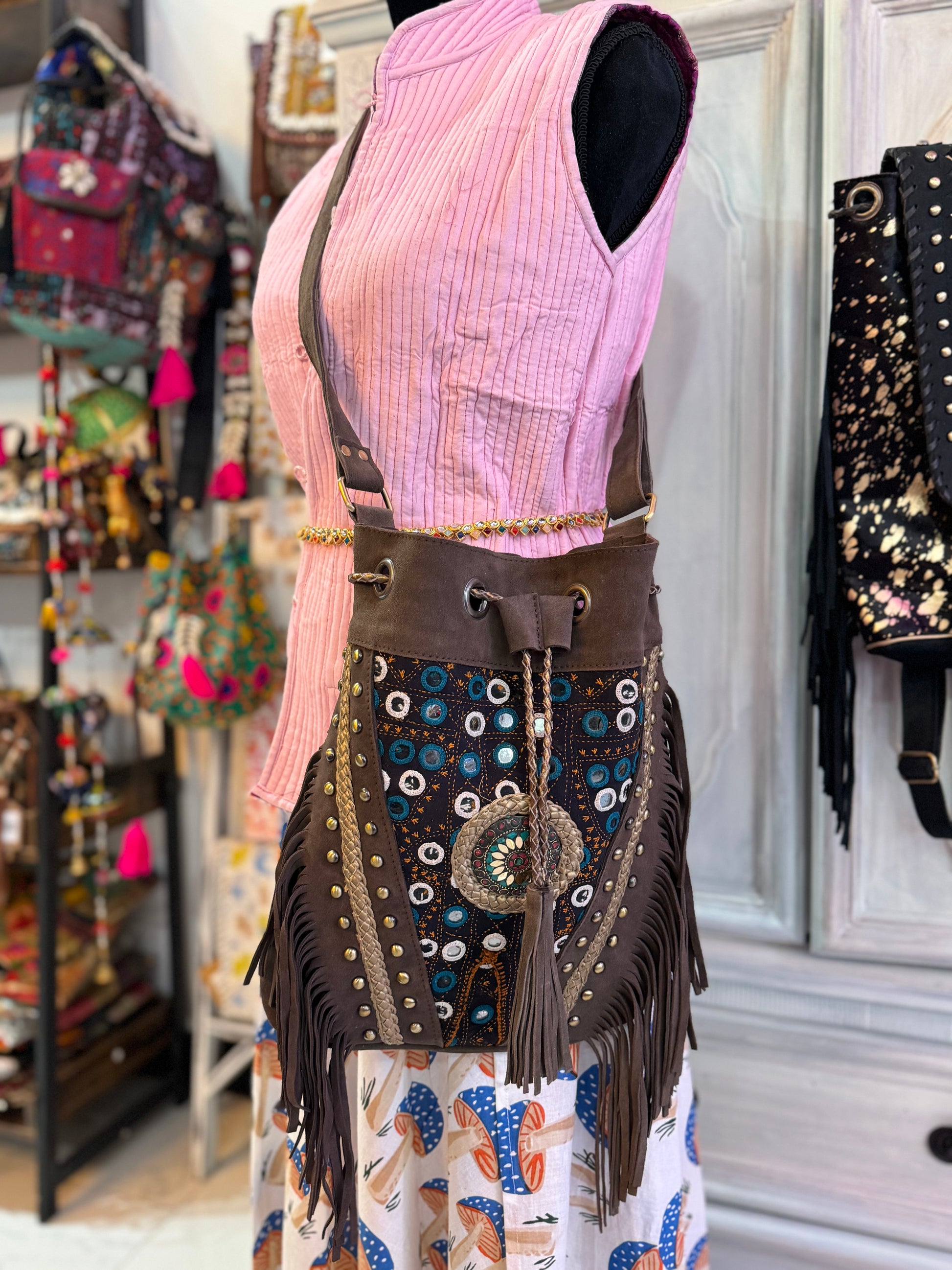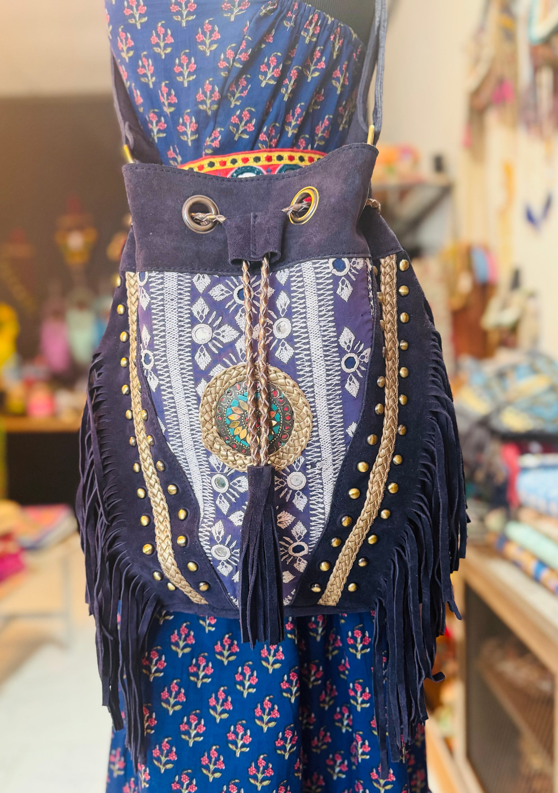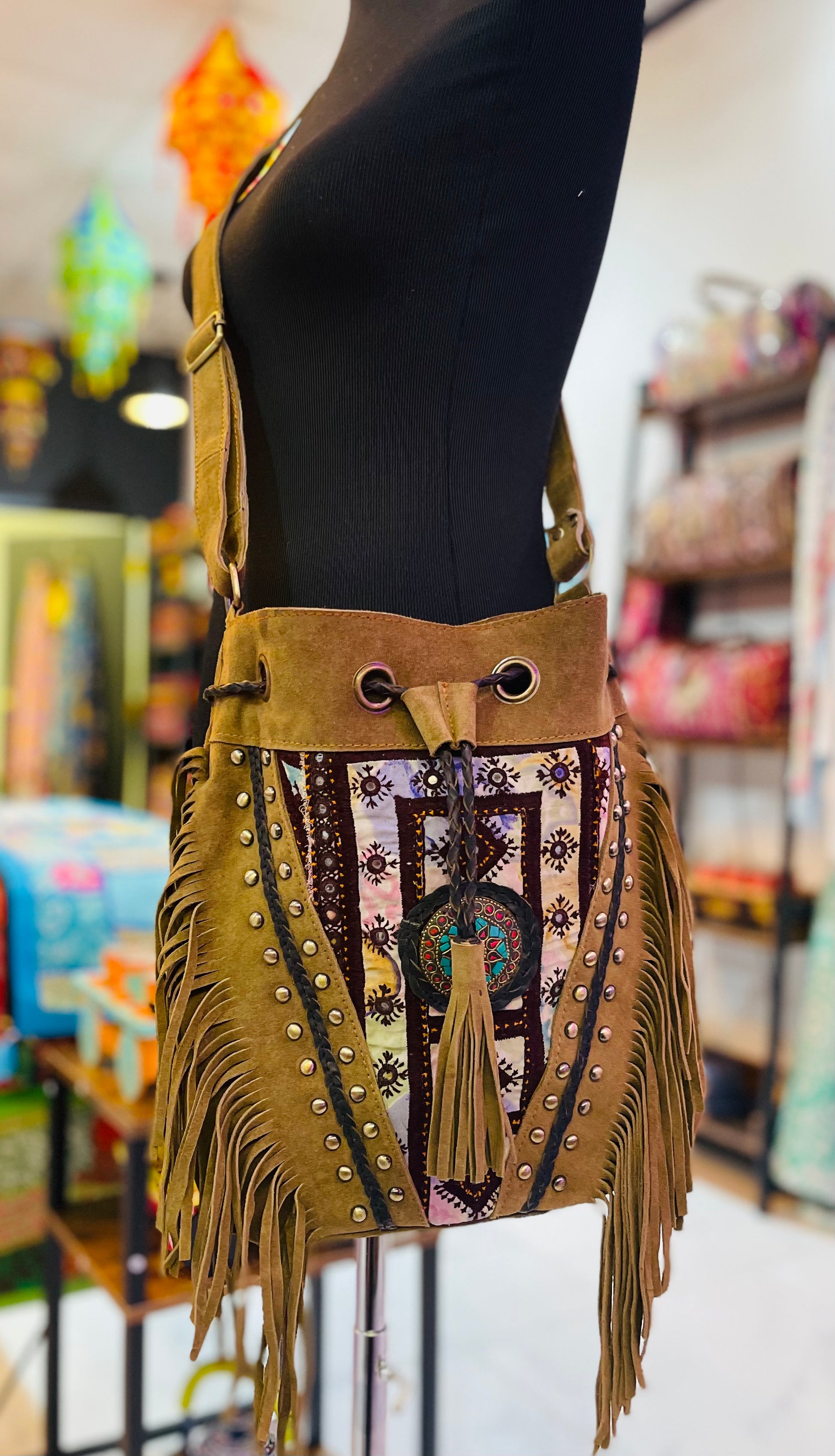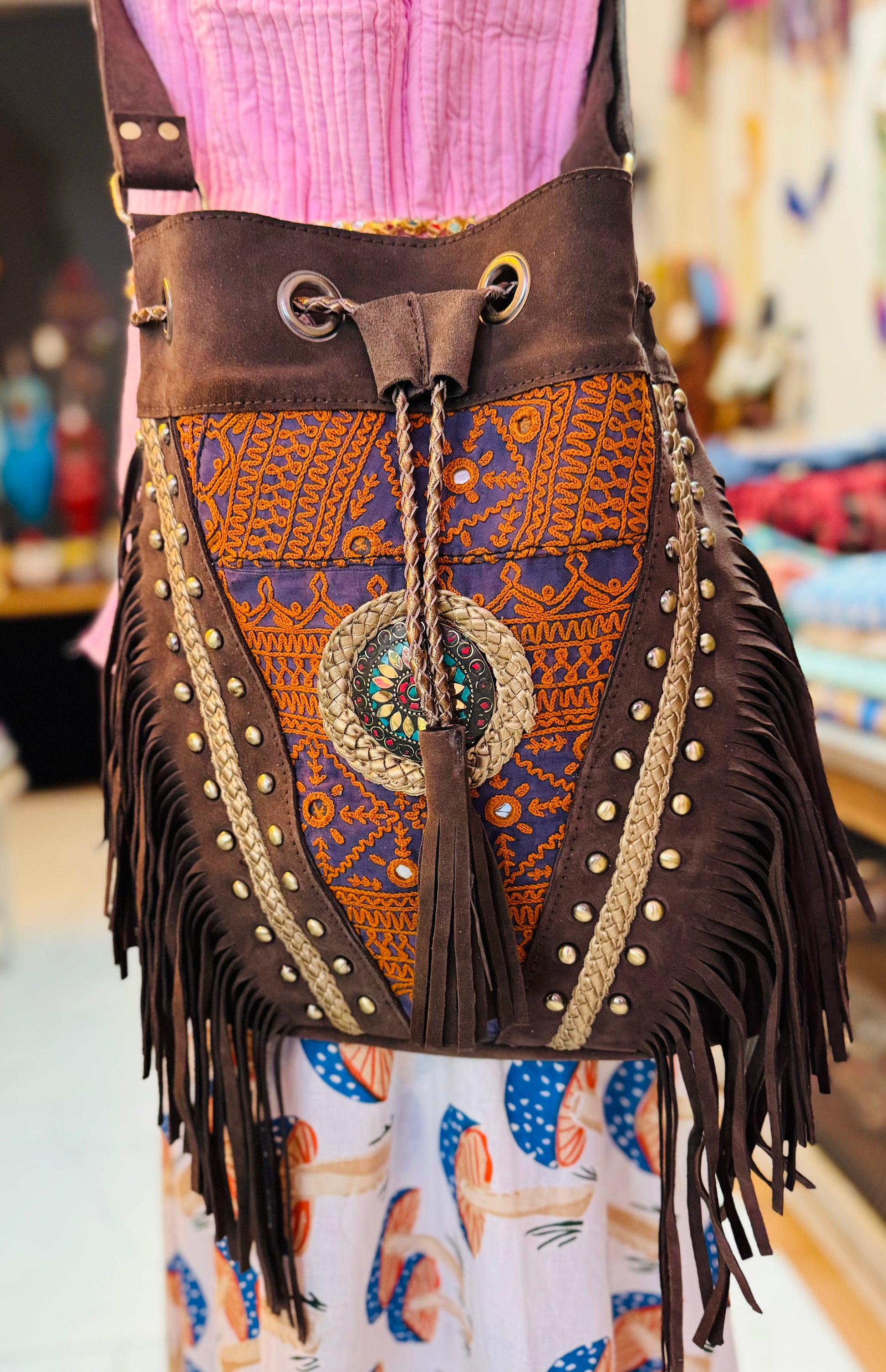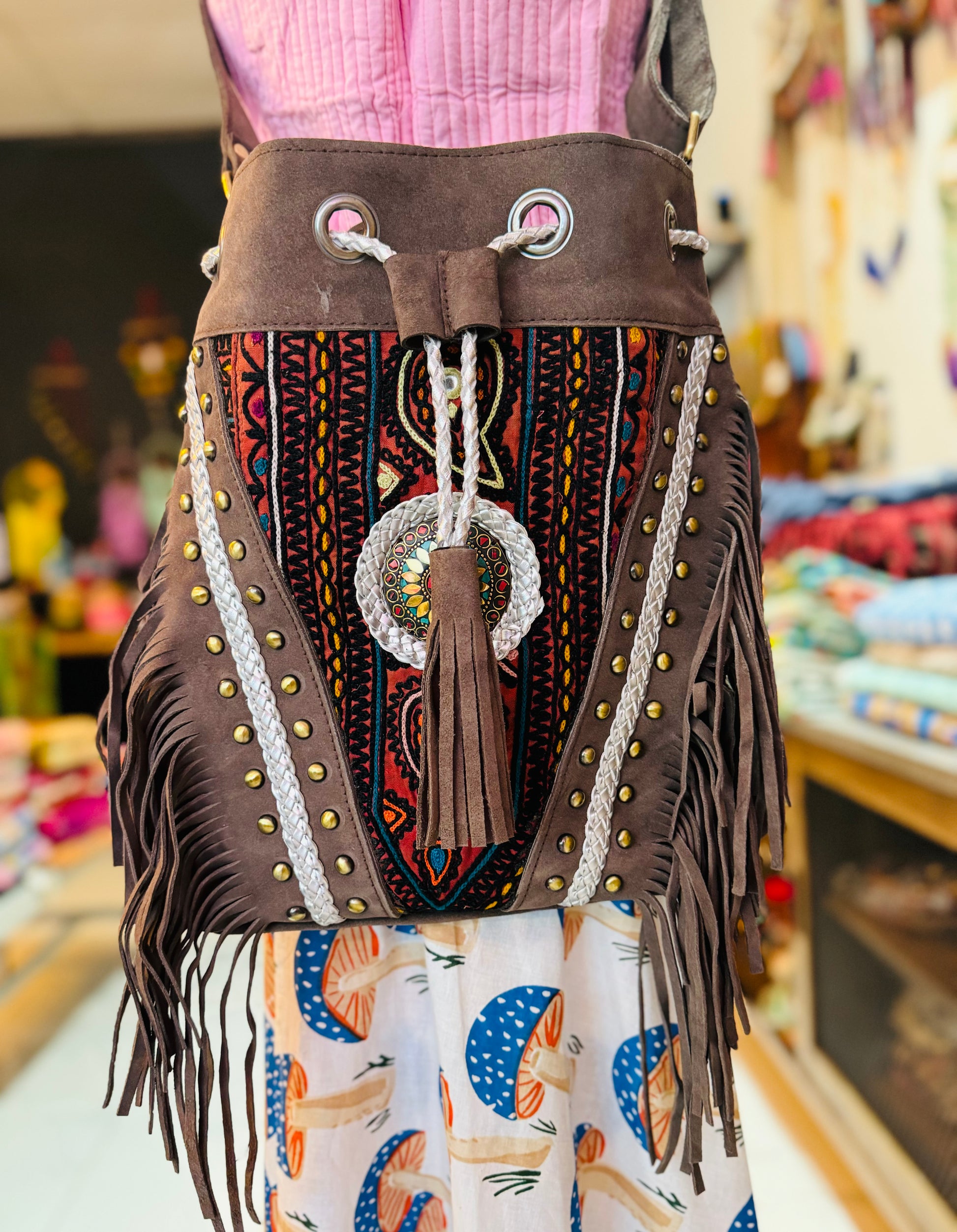 Unveil the epitome of style, tradition, and sophistication with our exquisite Leather Potli Bags. Crafted with precision and a deep appreciation for artistry, these bags are more than just accessories; they are a reflection of your refined taste and a nod to the timeless charm of traditional craftsmanship.