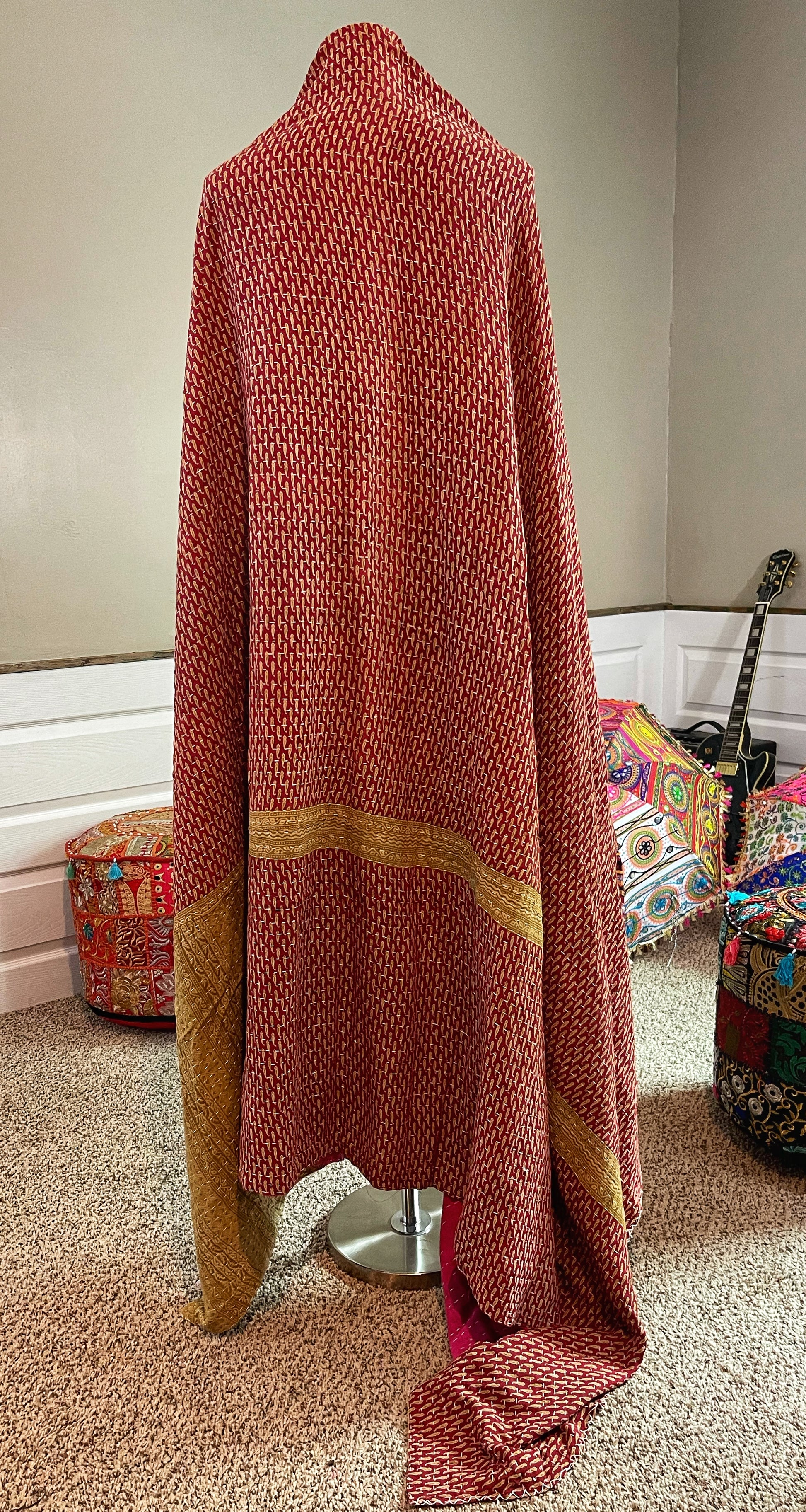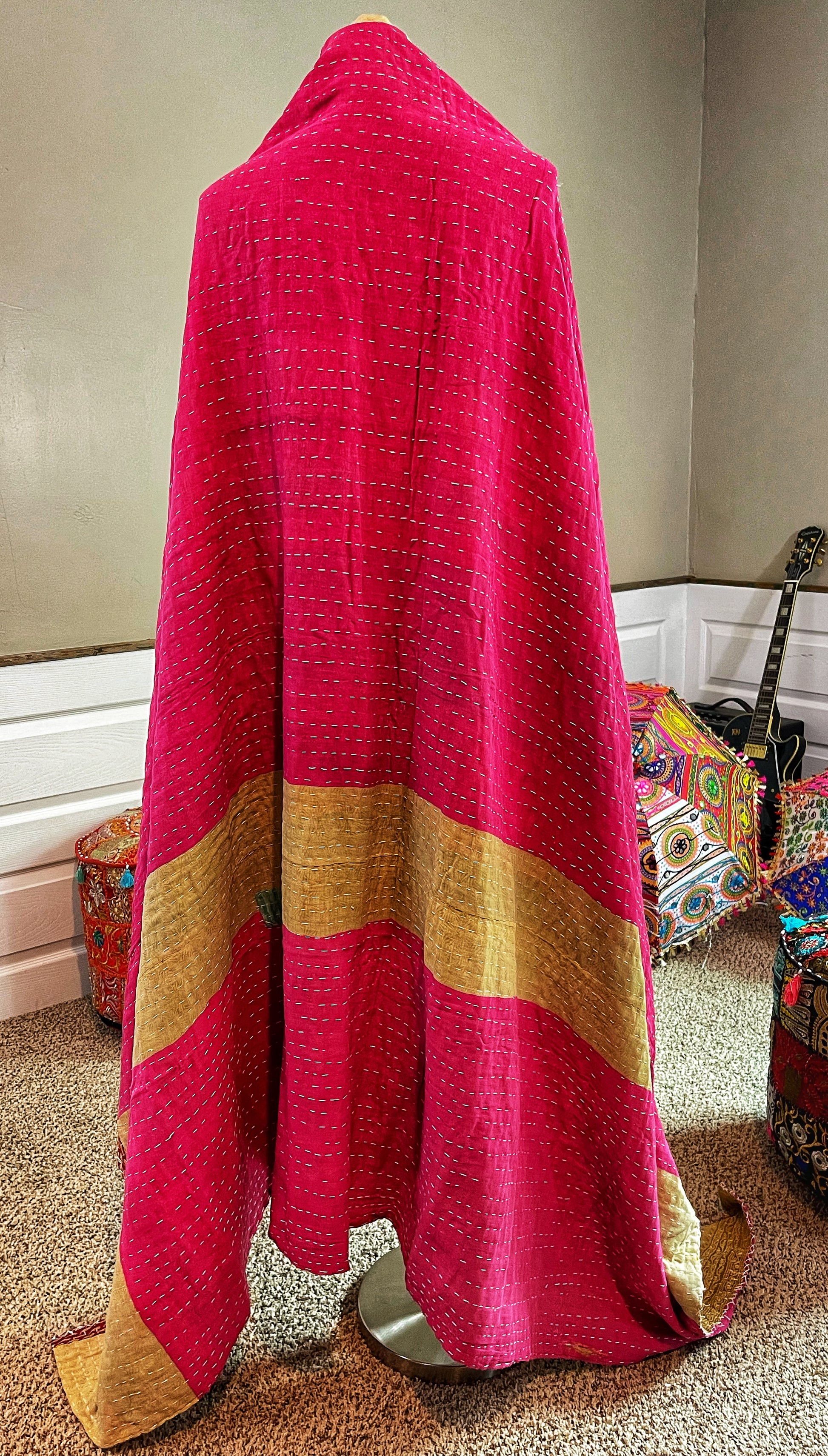 This quilt has vibrant Red on one side with Mango seeds and Dark Pink on the other.