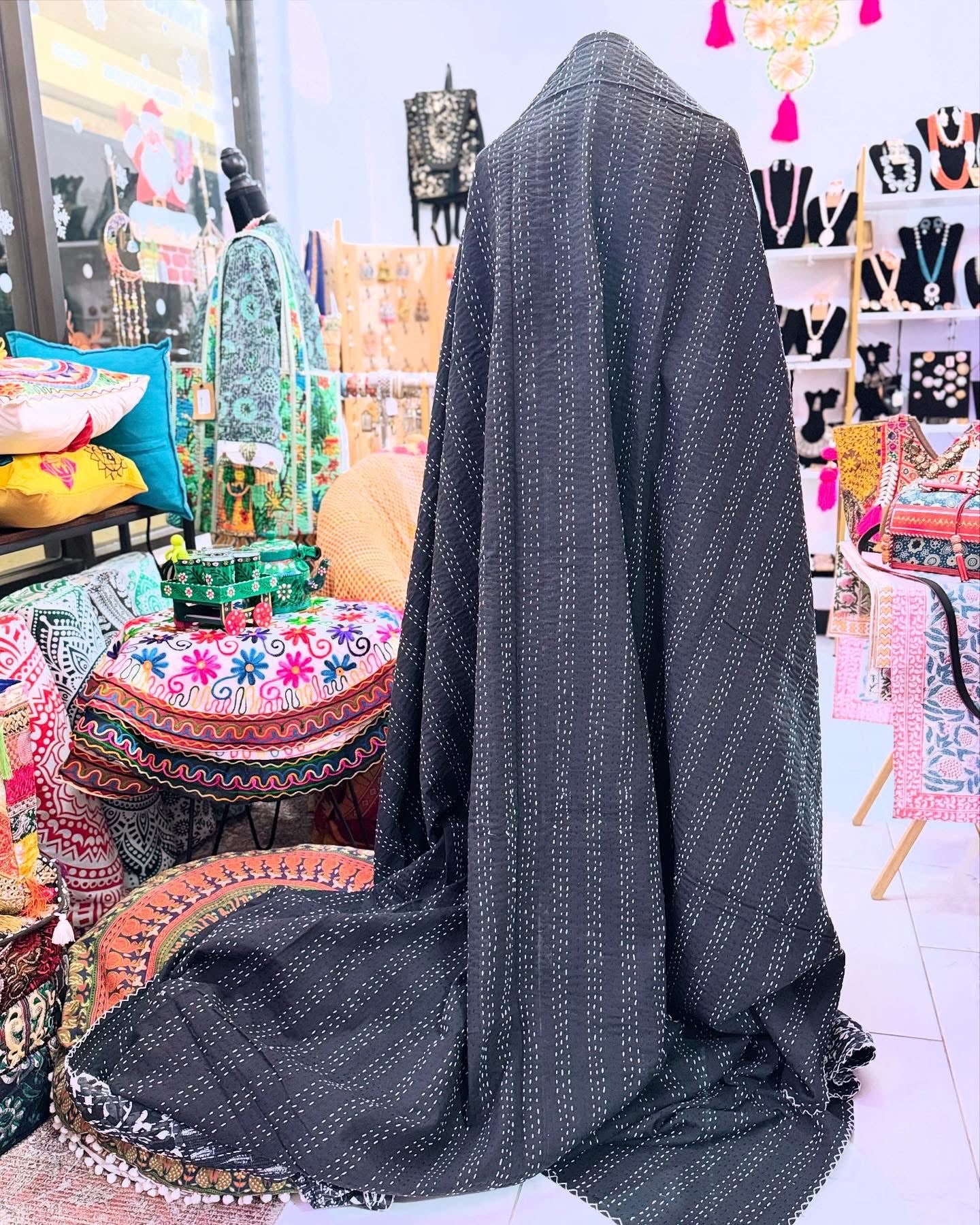 🧵 Handmade with Kantha Stitching: Traditional Kantha embroidery brings texture and craftsmanship to every inch.