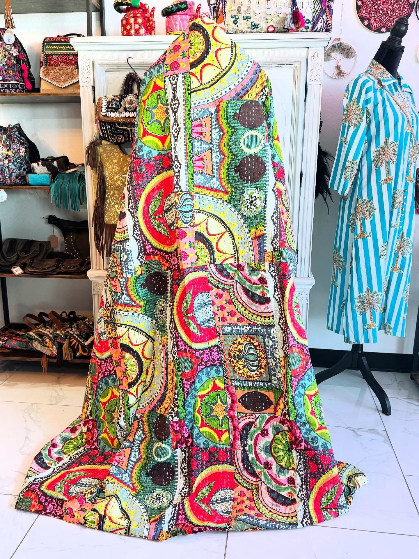 Mini Boho Mosaic – Handblock Printed Kantha Quilt | Cotton | Handmade