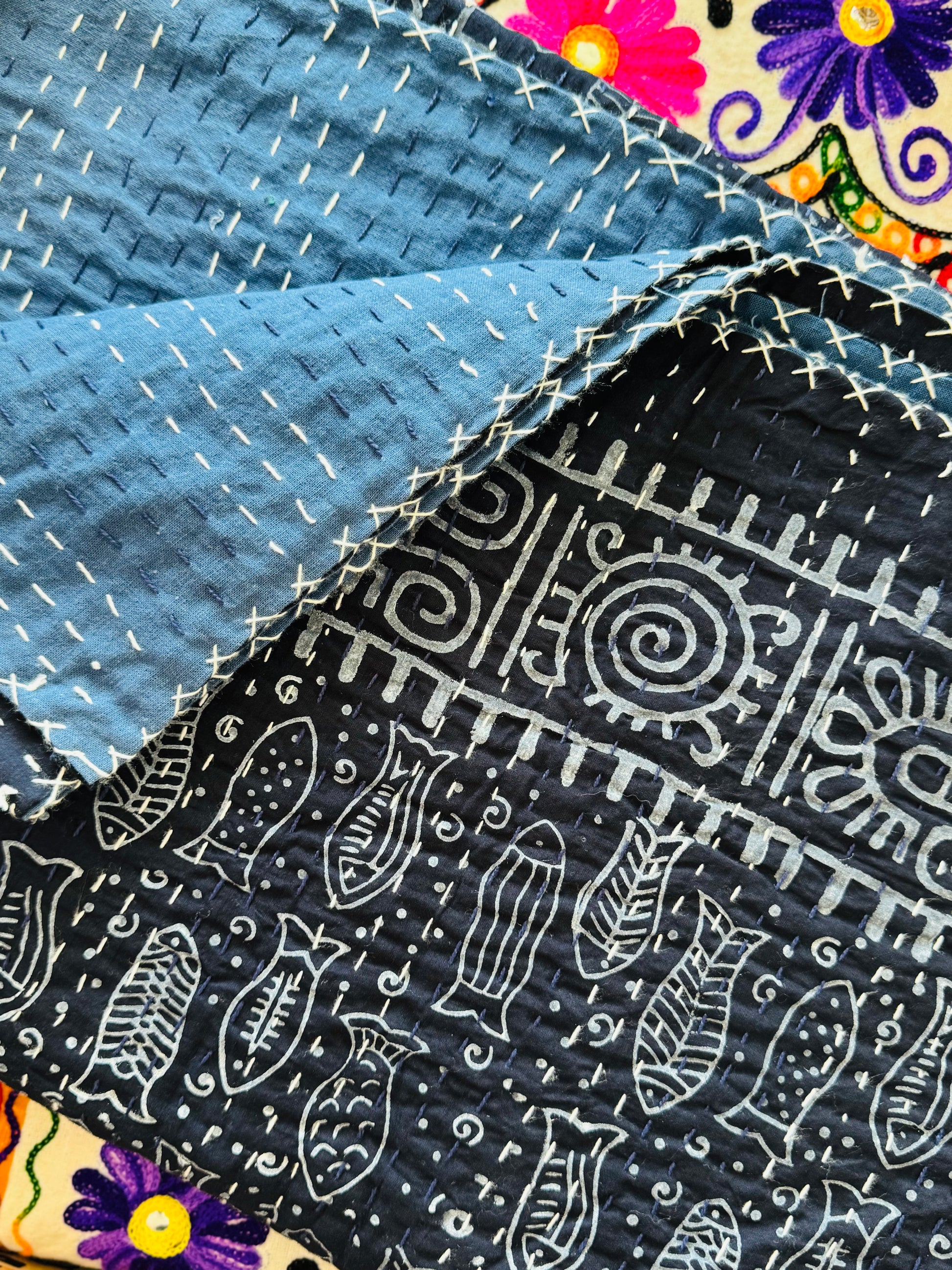 Moon Fish – Handmade Kantha Quilt | 100% Cotton | Collector’s Edition
