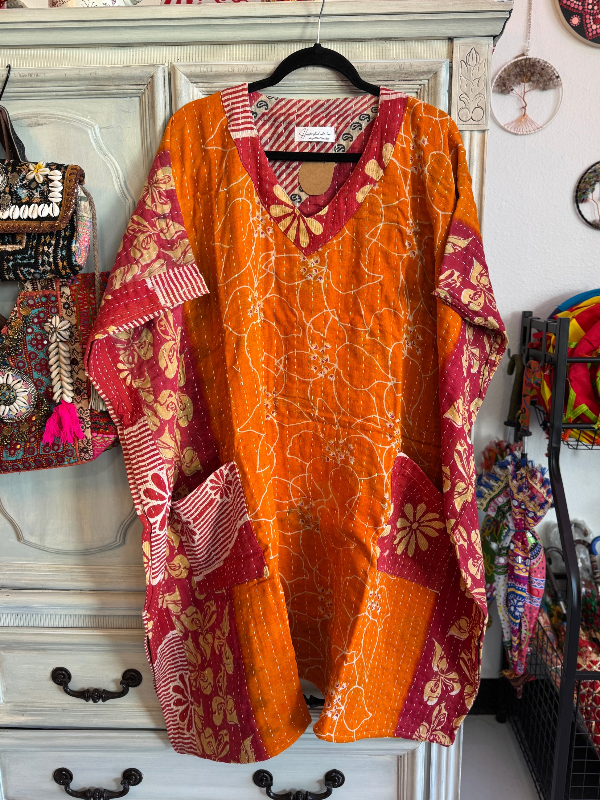 Handmade Kantha Dress – Orange | 100% Cotton | 2 Pockets