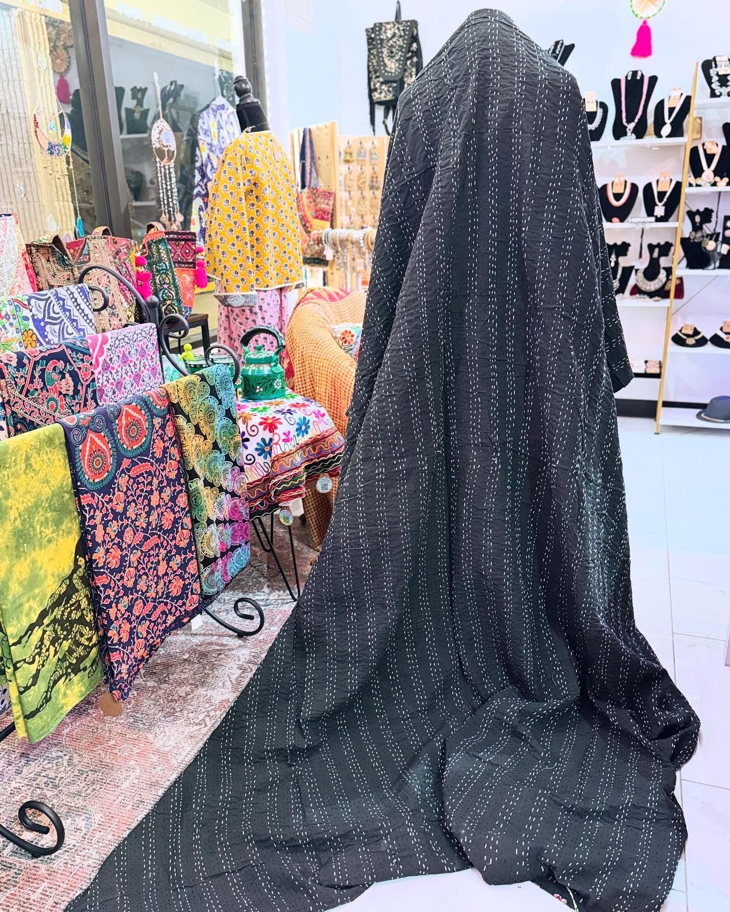 Peacock & Co.- Black Handblock Printed Kantha Quilt – 100% Cotton | Handmade