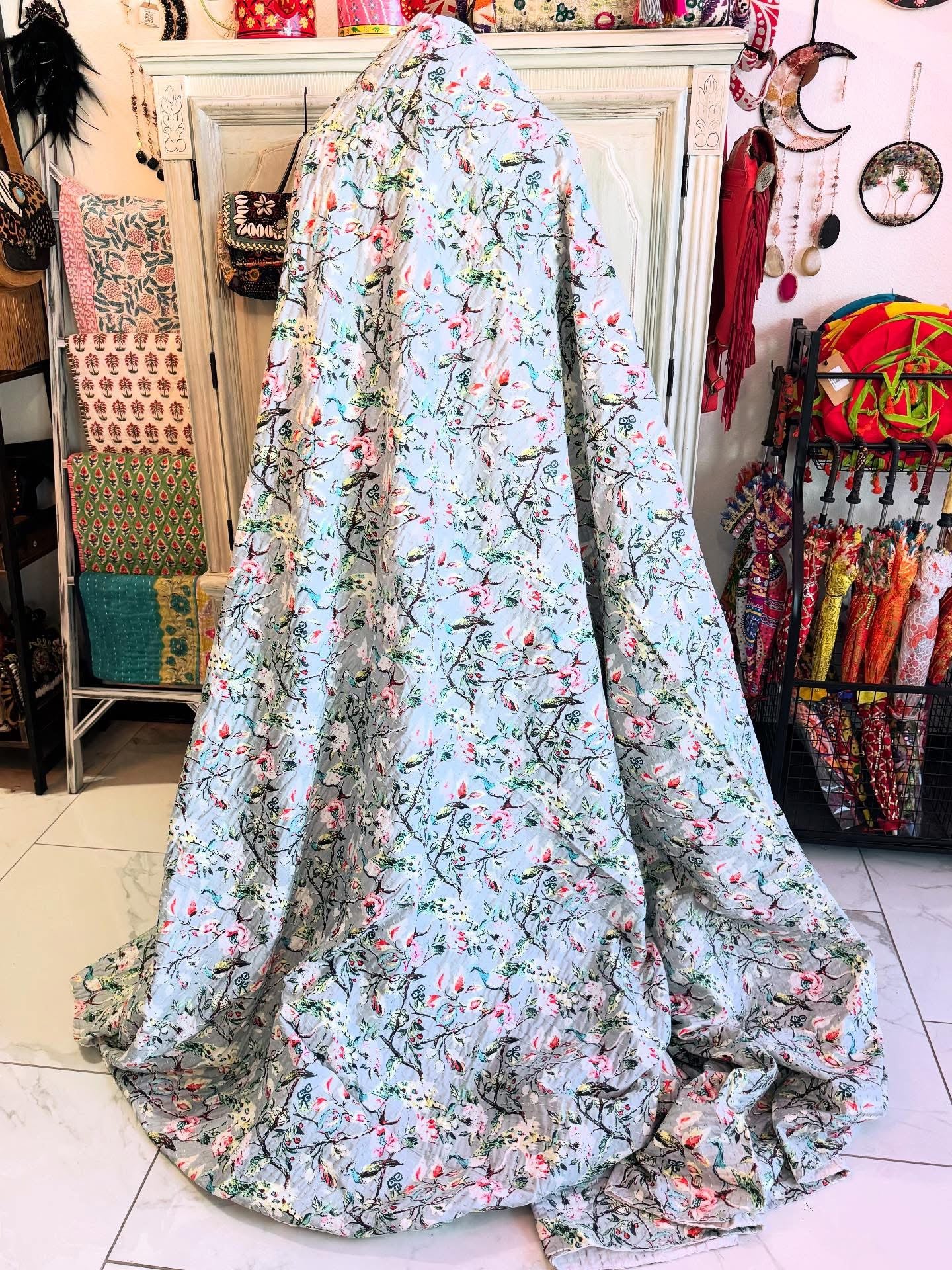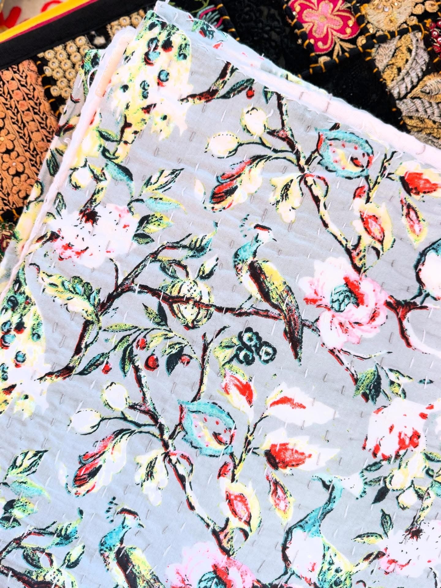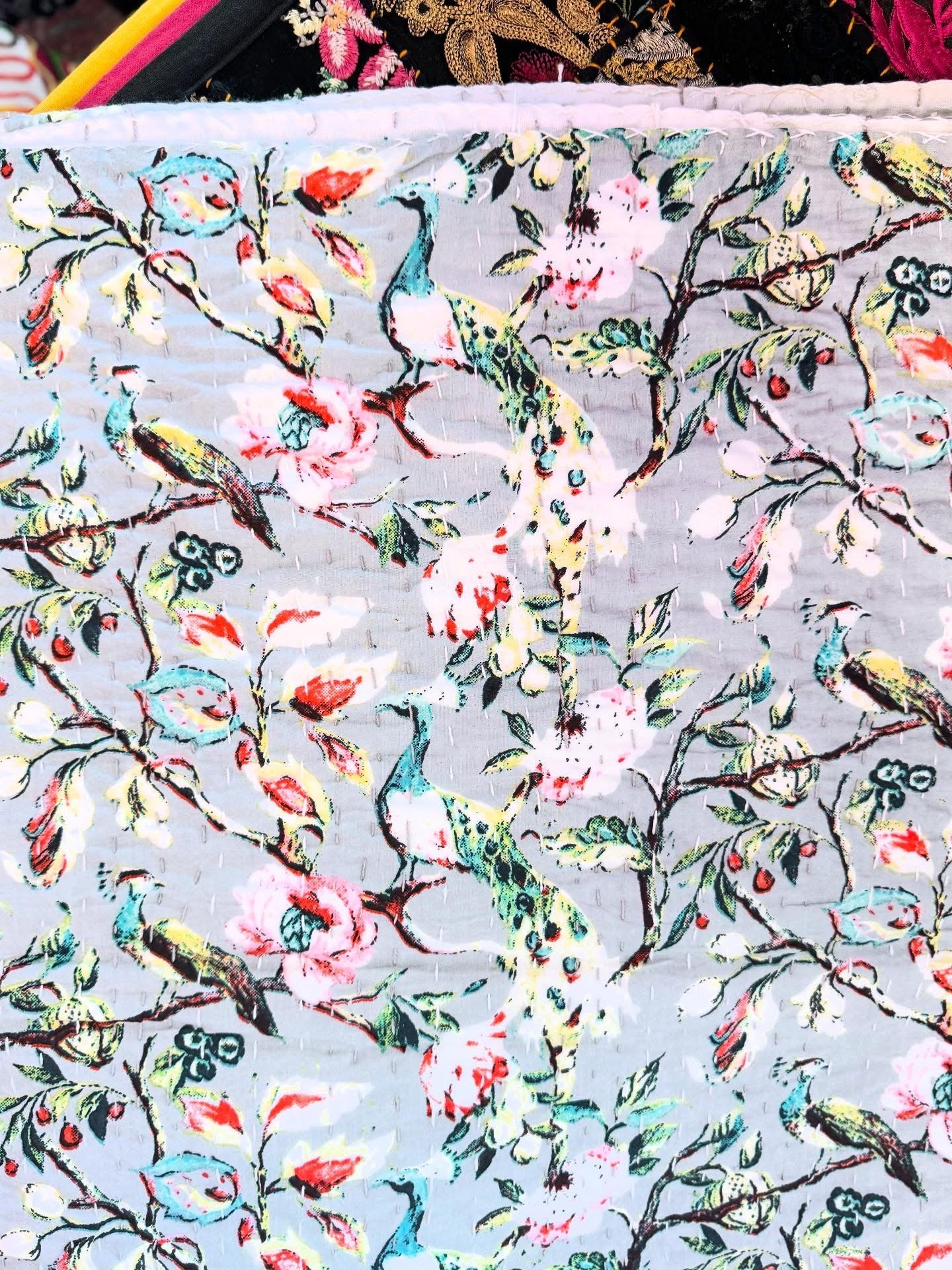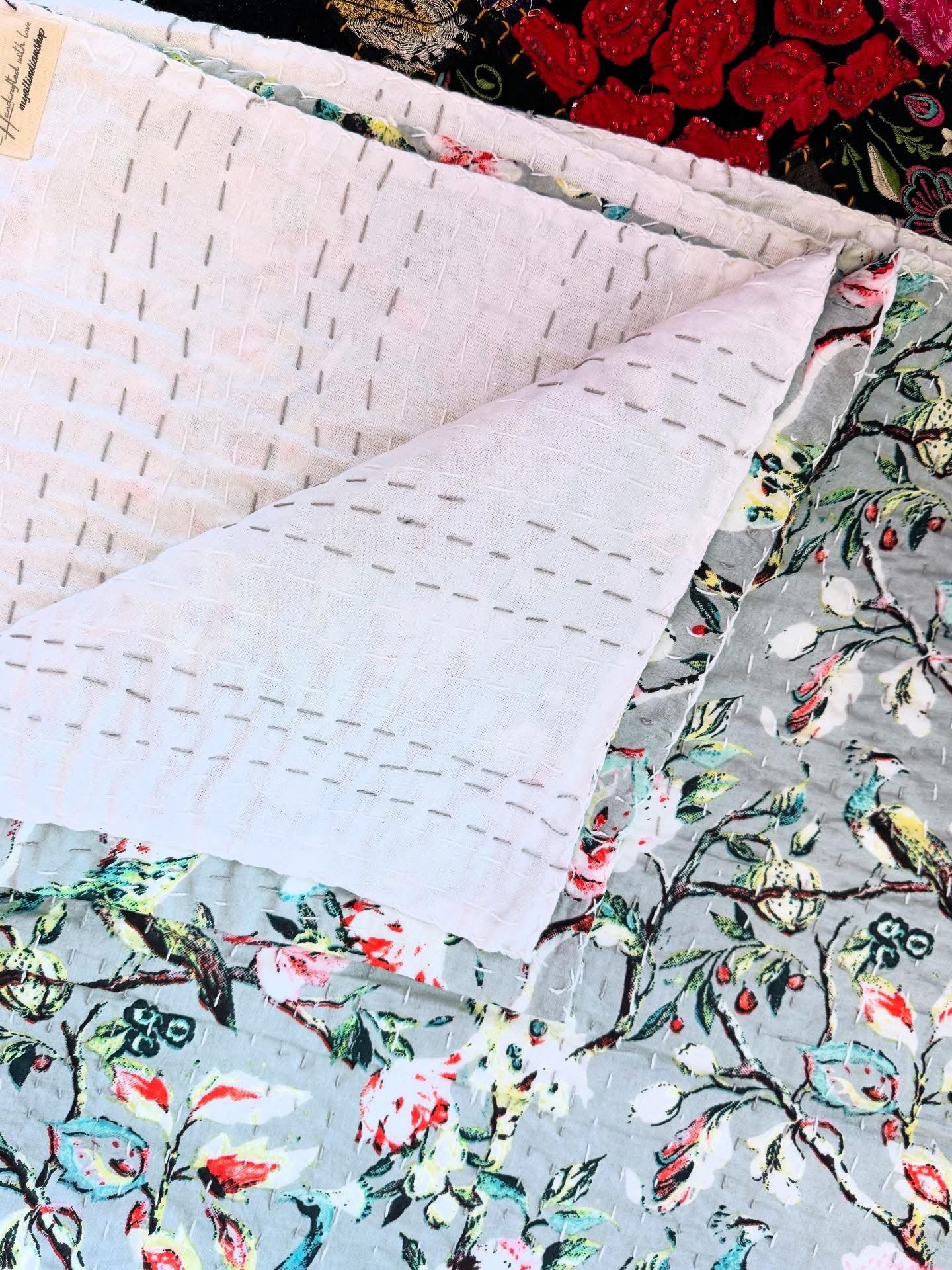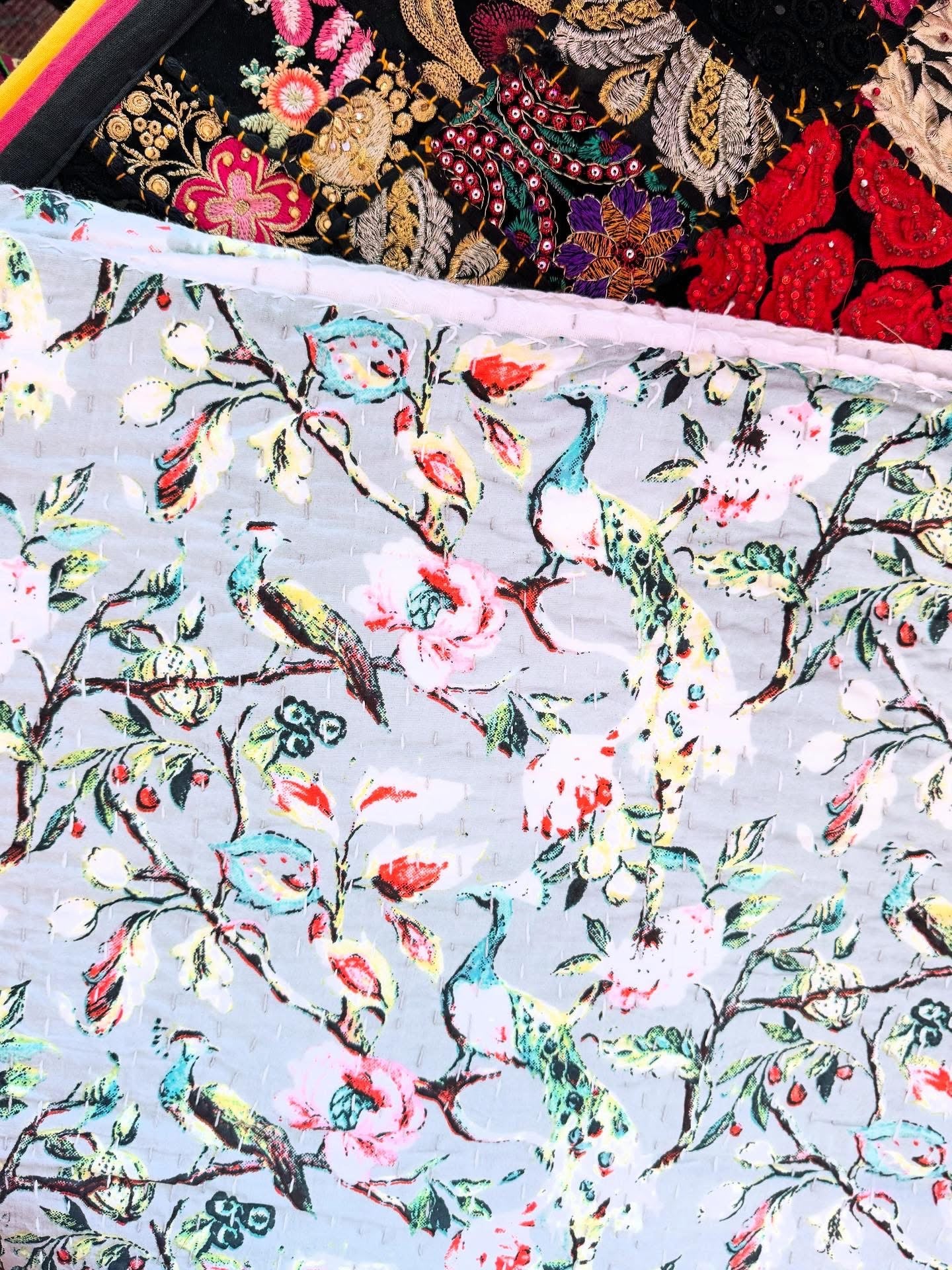 Peacock Garden – Handblock Printed Kantha Quilt – 100% Cotton | Handmade