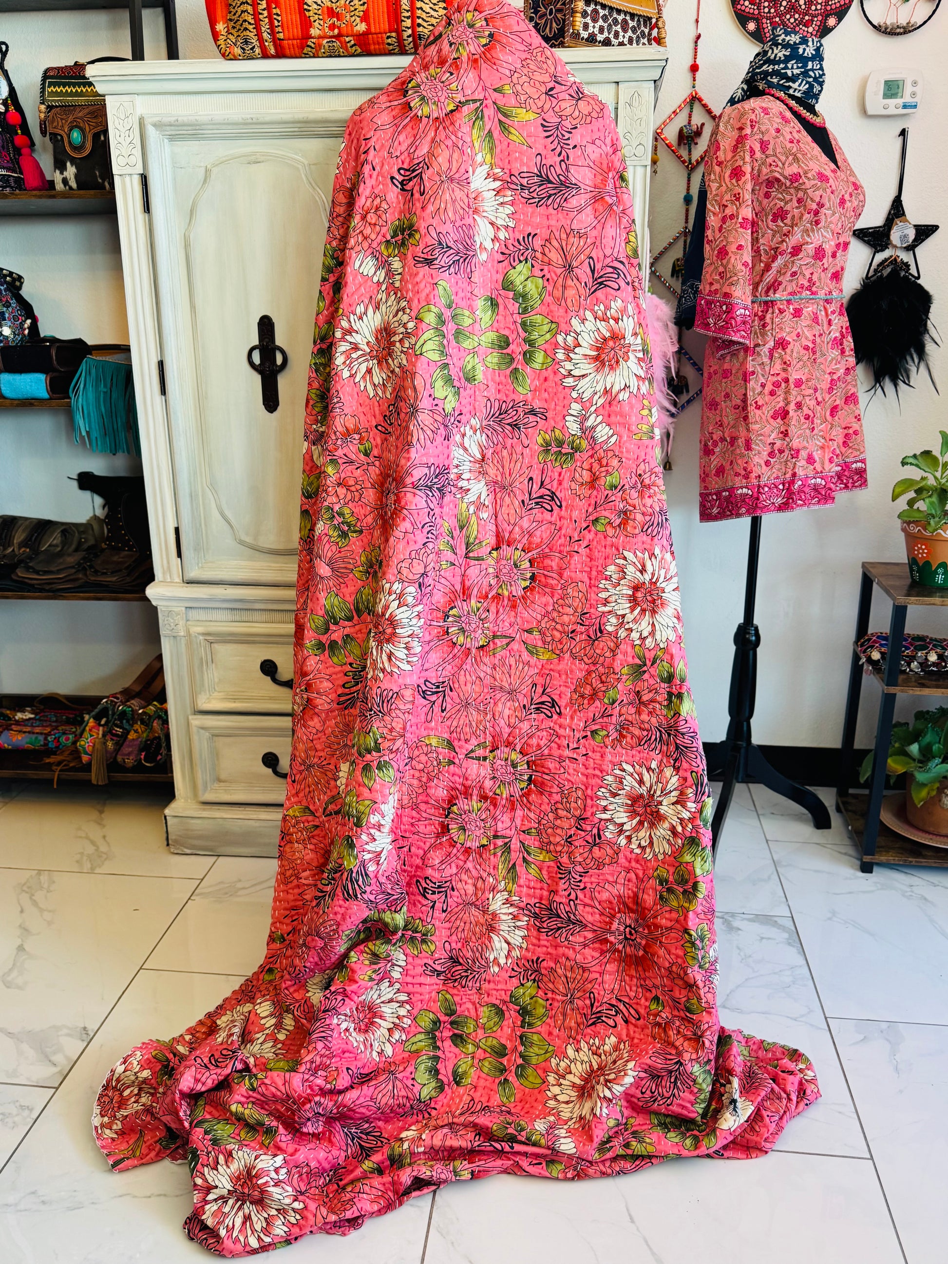 Sunlit Meadow – Handblock Printed Kantha Quilt | Cotton | Handmade | Full Size