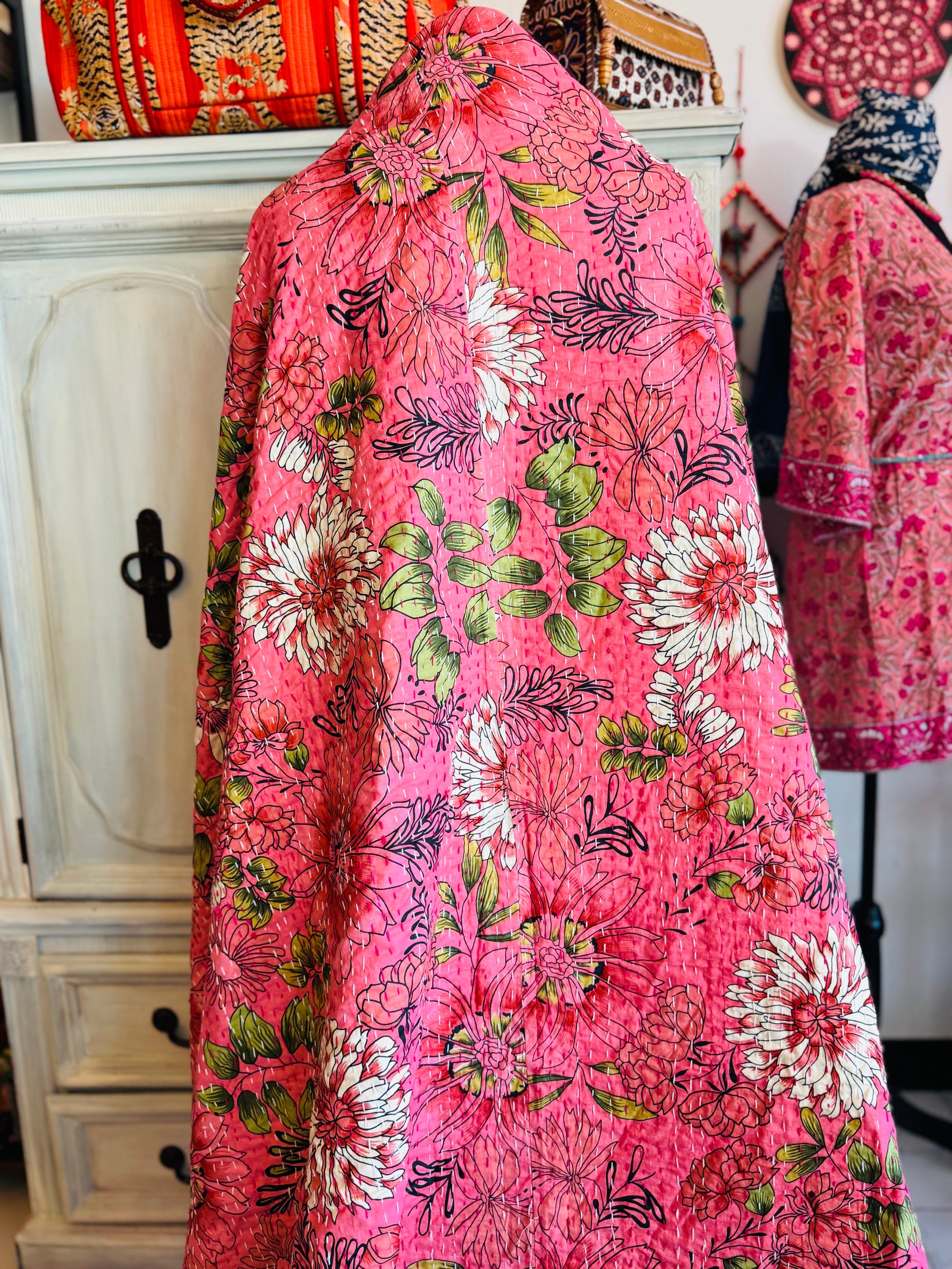 Perfect for: Summer bedding, bright and cheerful decor, handmade Kantha quilts.