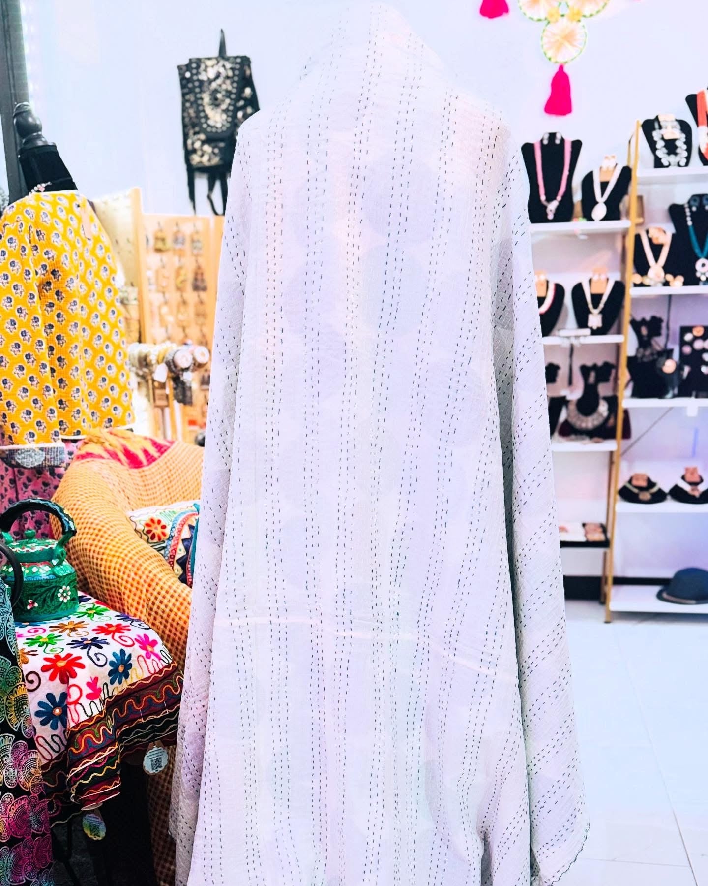 🧵 Traditional Kantha Stitching: Carefully hand-stitched with Kantha embroidery for durability and textured detail.