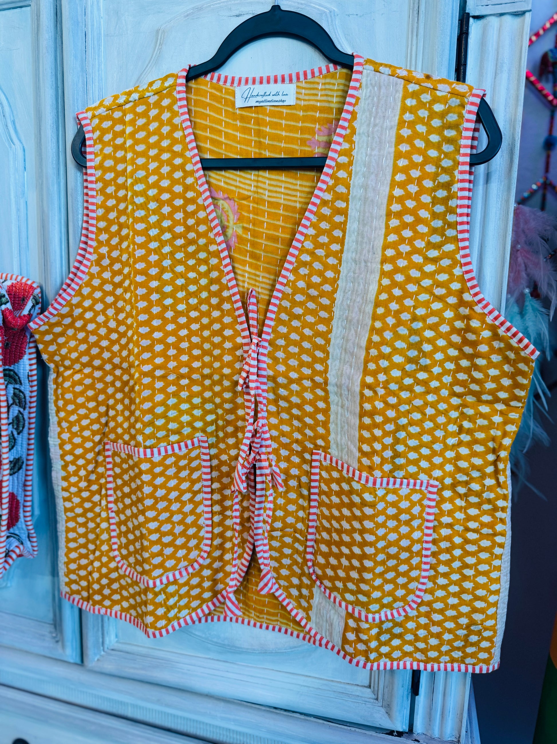 Handmade Reversible Kantha Vest – Honey | 100% Cotton Jacket