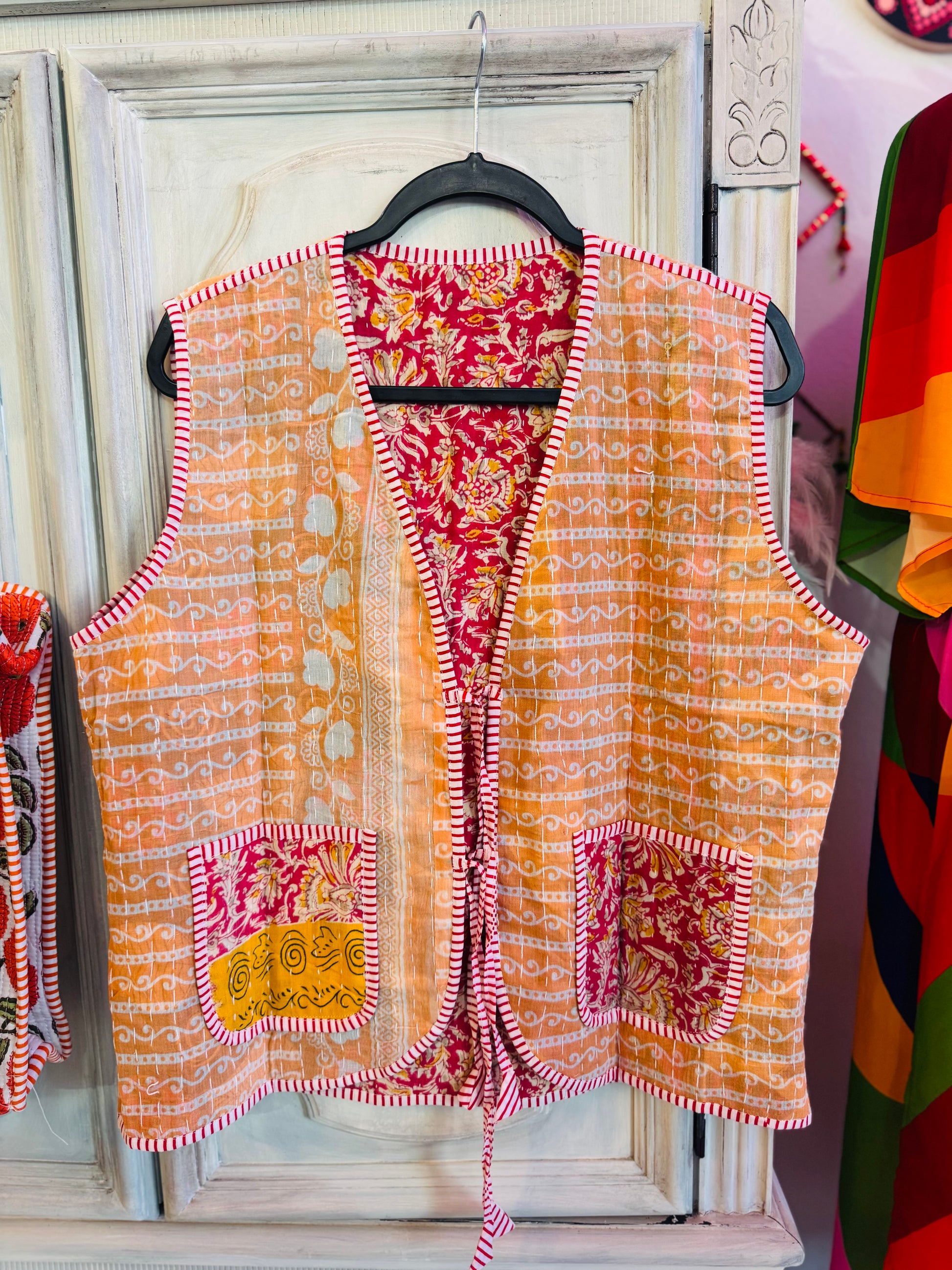 Handmade Reversible Kantha Vest – Saffron | 100% Cotton Jacket