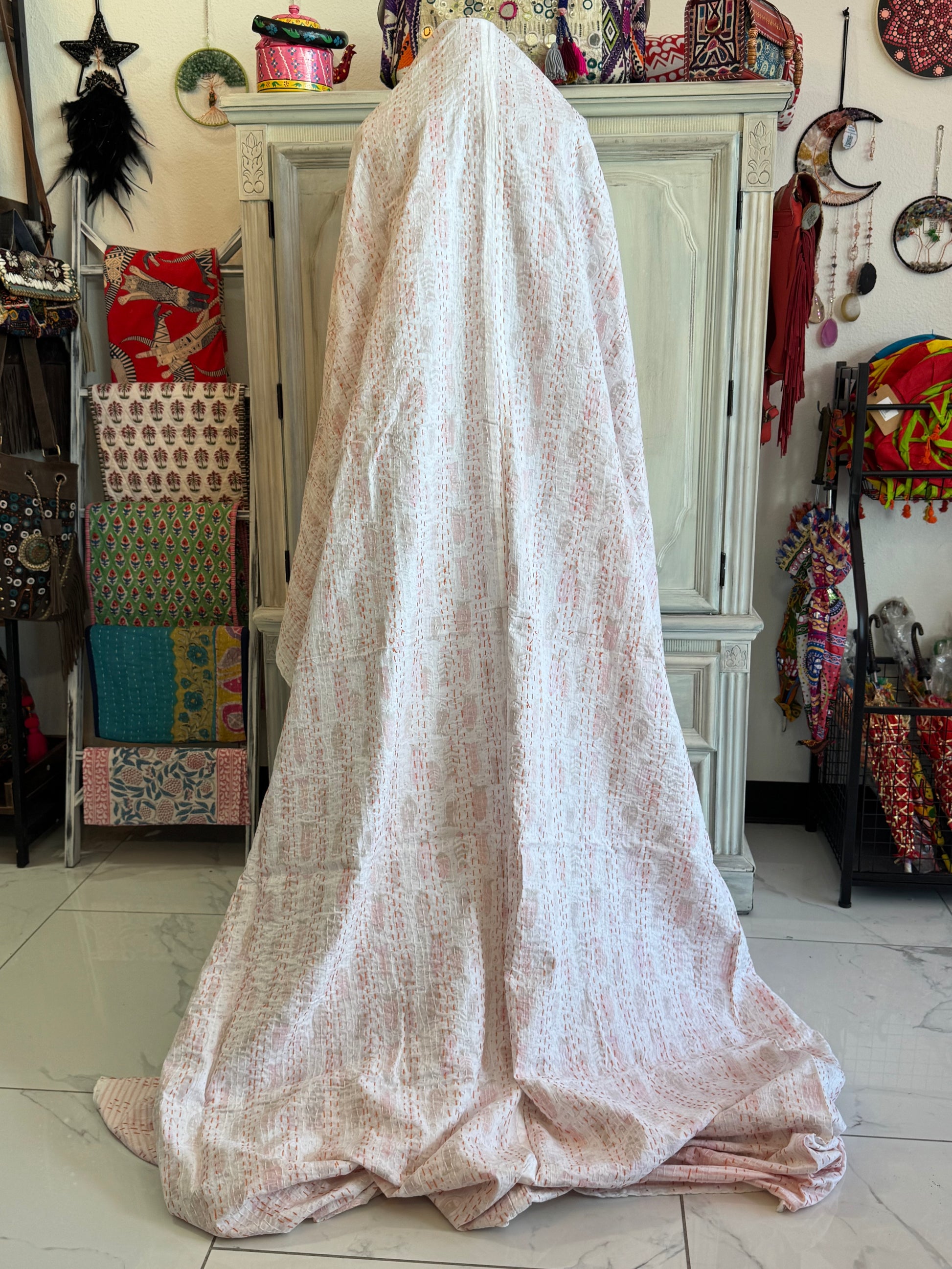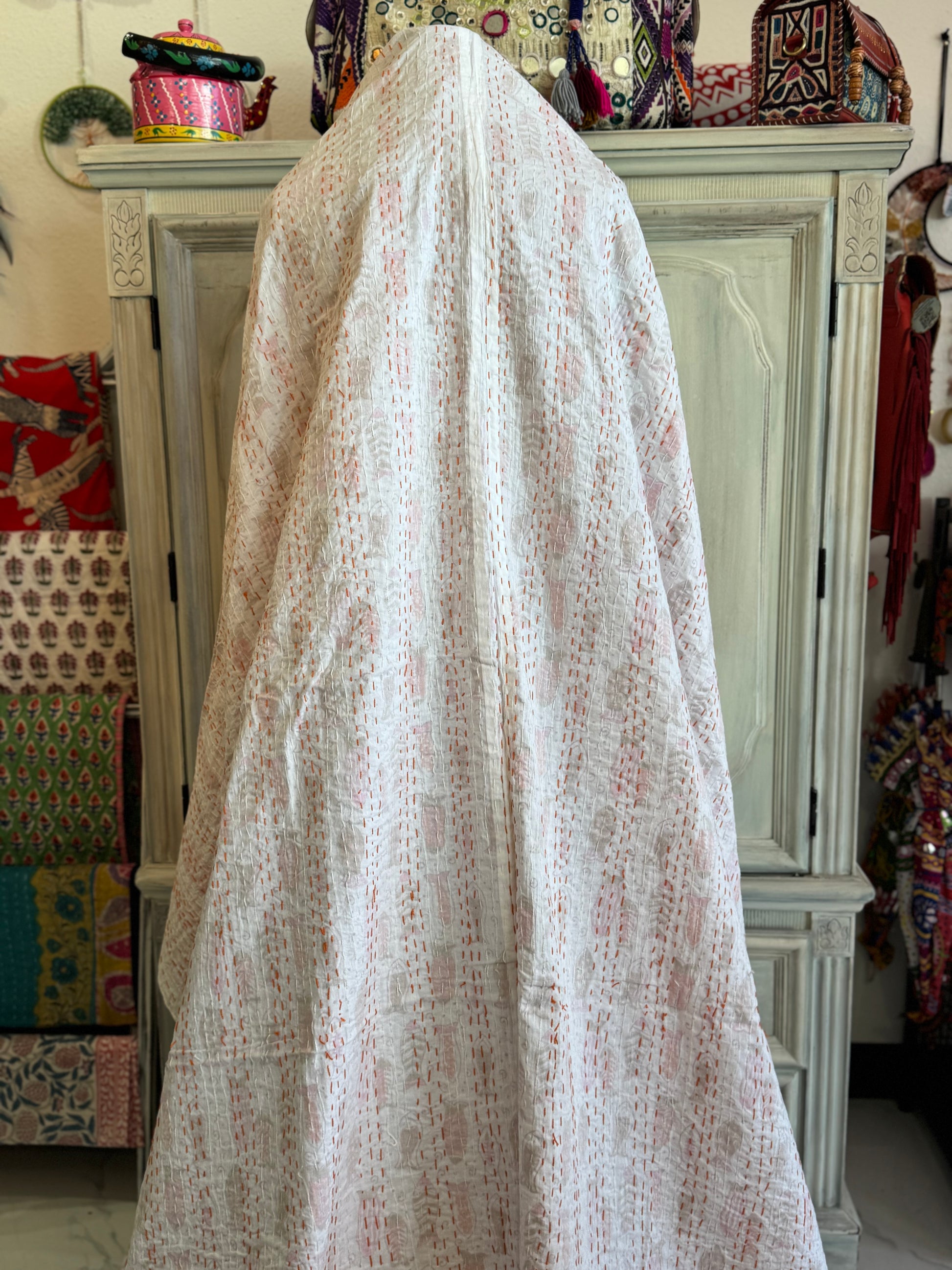 Hand-stitched with thousands of traditional Kantha lines, this quilt is ultra lightweight, breathable, and made from 100% cotton — ideal for warm climates, layering, or daily use. A true collector’s edition, designed to bring color and craft into your home.