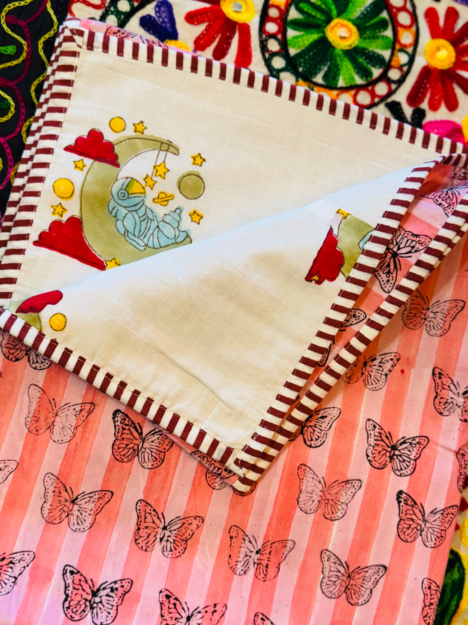 Reversible Cotton Dohar – Astronaut & Butterflies | Handmade Toddler Blanket