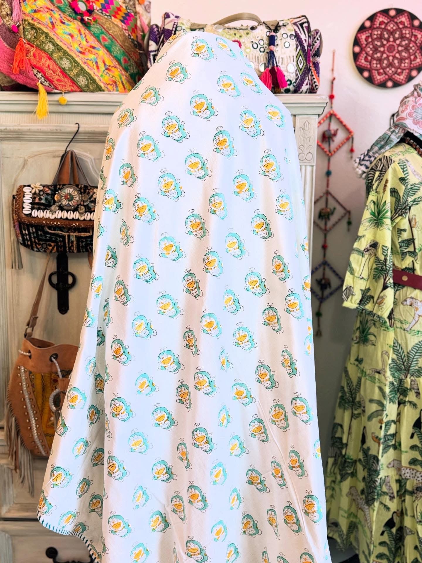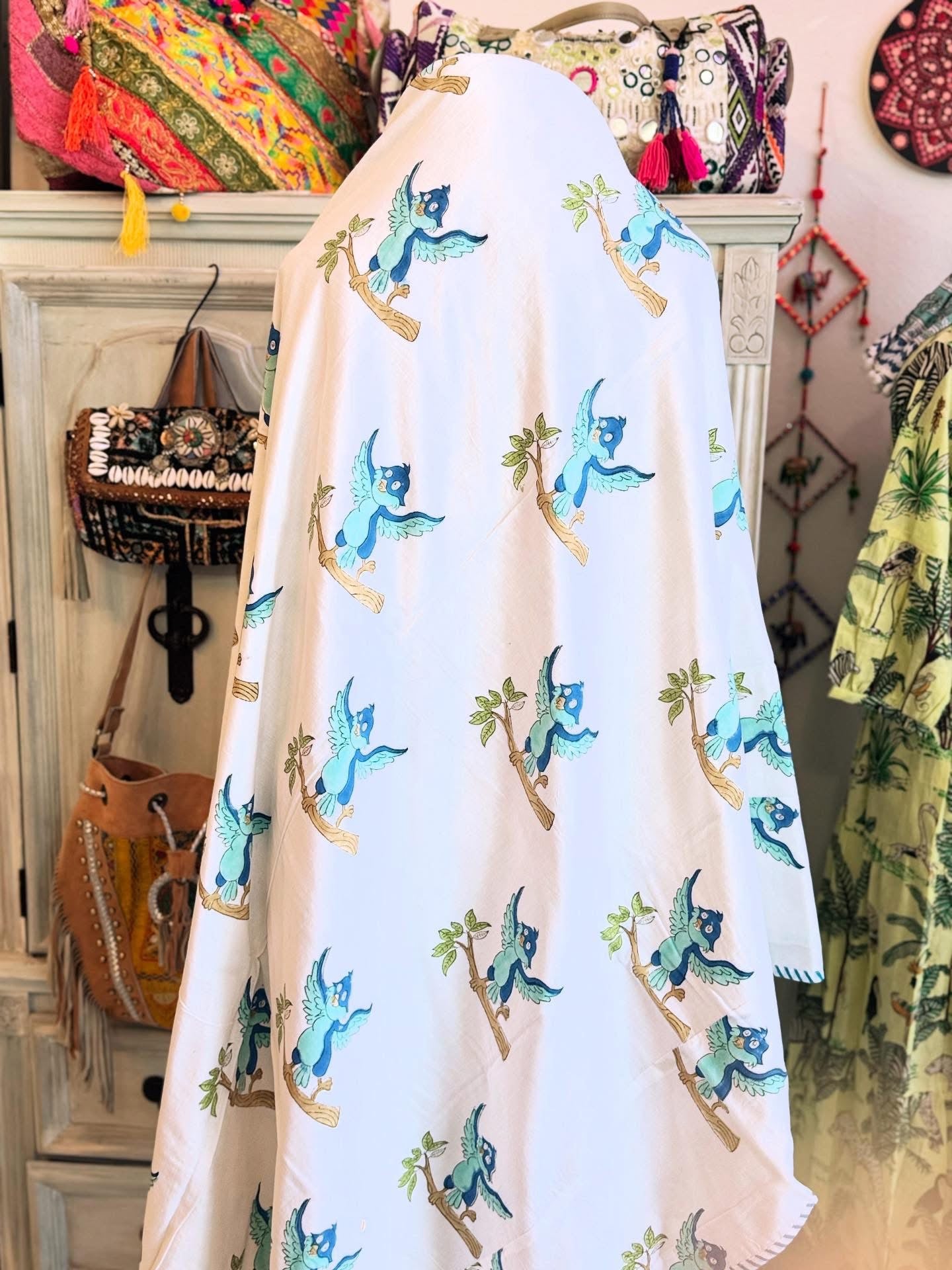 Wrap your toddler in comfort with our reversible cotton dohar, featuring robots on one side and birds on the other. Handmade from 100% cotton and handblock printed, this ~60 x 50 inch blanket has no stuffing or batting, making it lightweight, breathable, and perfect for year‑round naps.