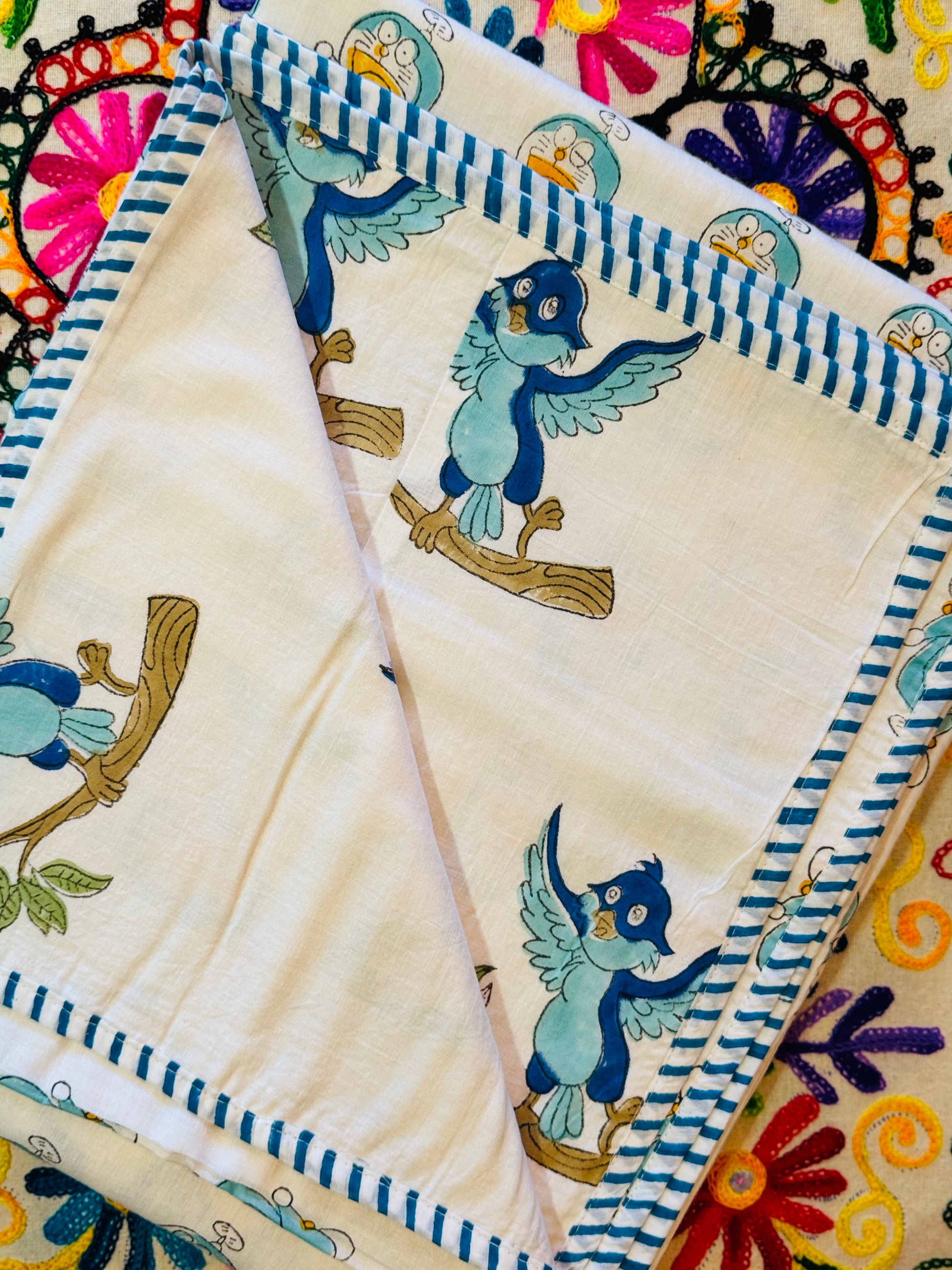 Reversible Cotton Dohar – Robots & Birds | Handmade Toddler Blanket