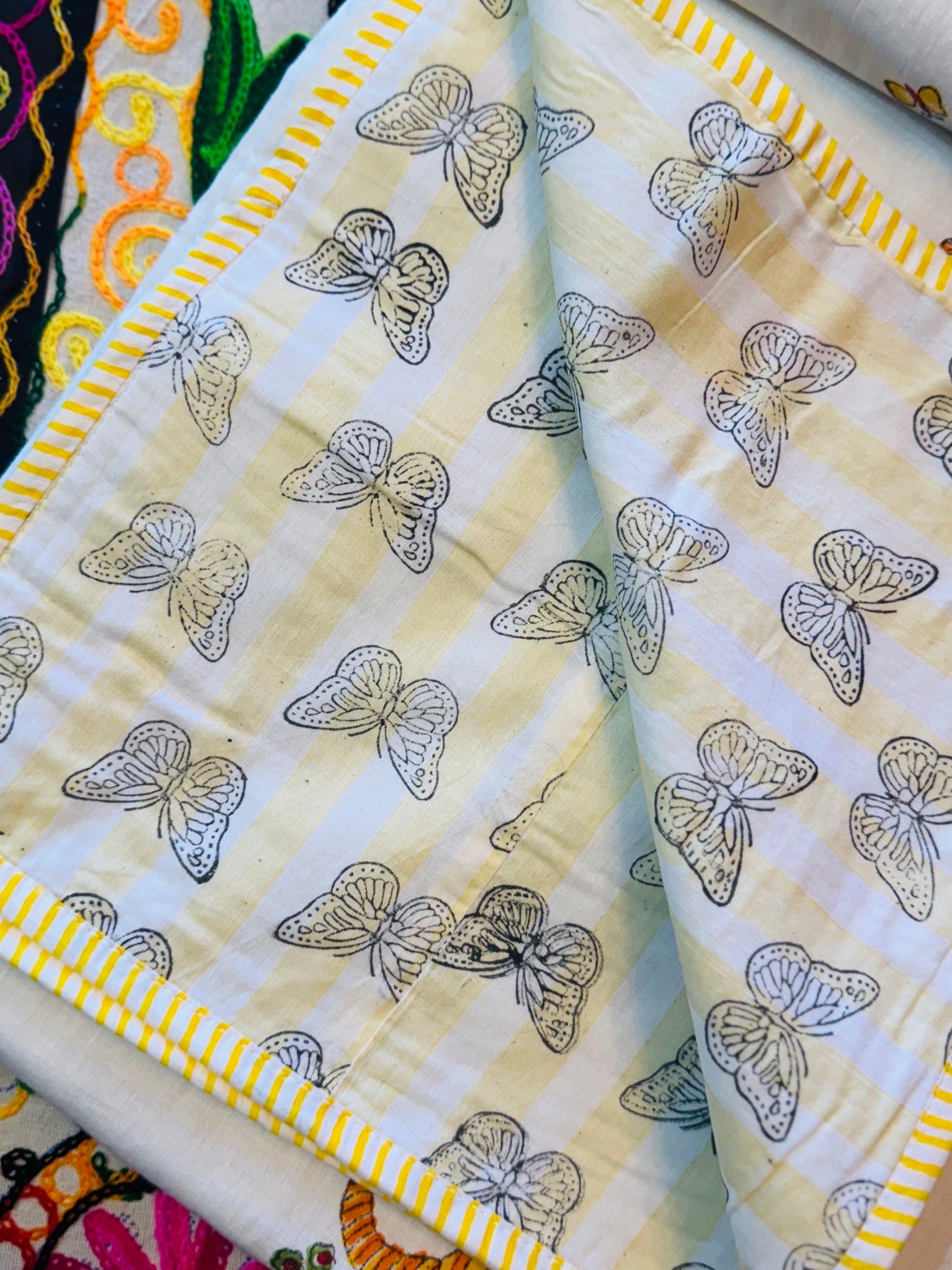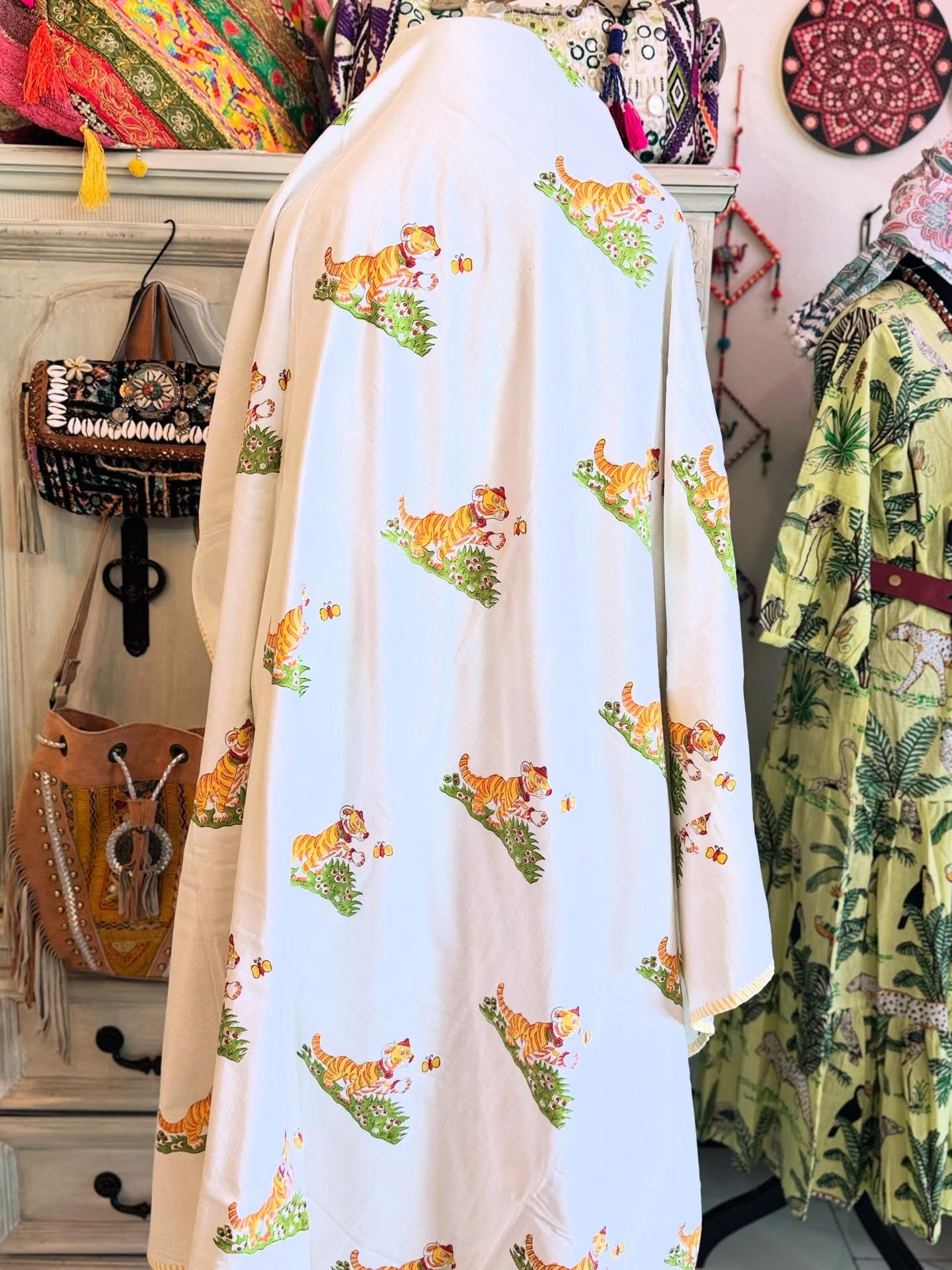 Wrap your toddler in comfort with our reversible cotton dohar, featuring tigers on one side and butterflies on the other. Handmade from 100% cotton and handblock printed, this ~60 x 50 inch blanket has no stuffing or batting, making it lightweight, breathable, and perfect for year‑round naps.