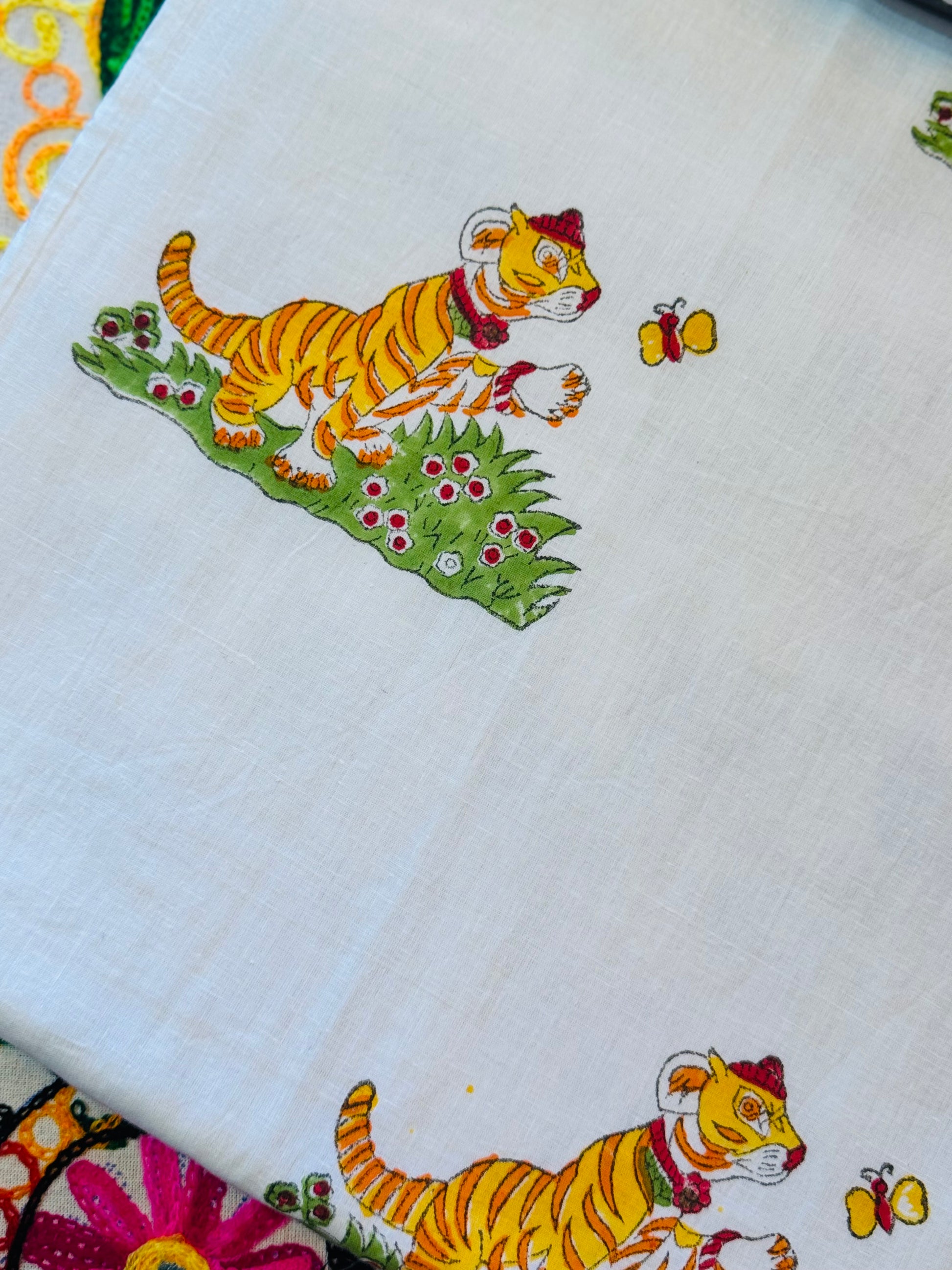 Reversible Cotton Dohar – Tigers & Butterflies | Handmade Toddler Blanket