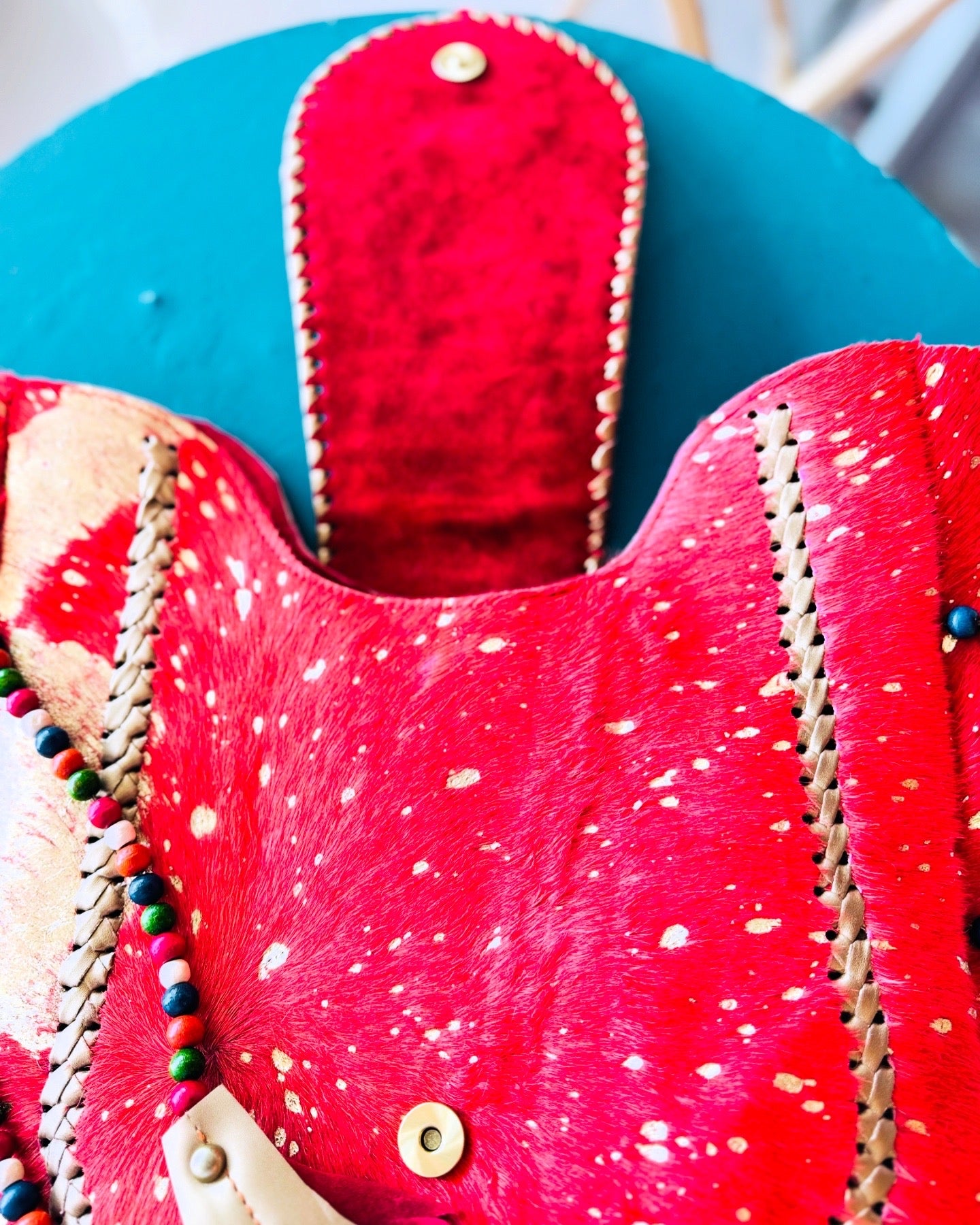 **One-of-a-Kind Cowhide and Leather Shoulder Bag**