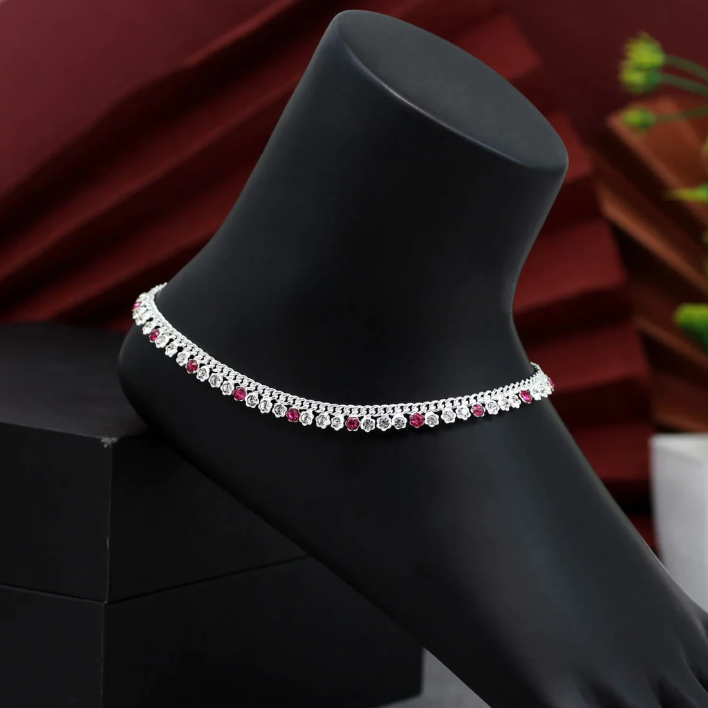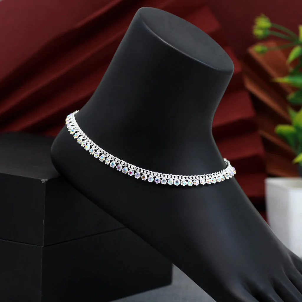 One piece of Silver Plated drop Anklet with colorful Rhinestones.