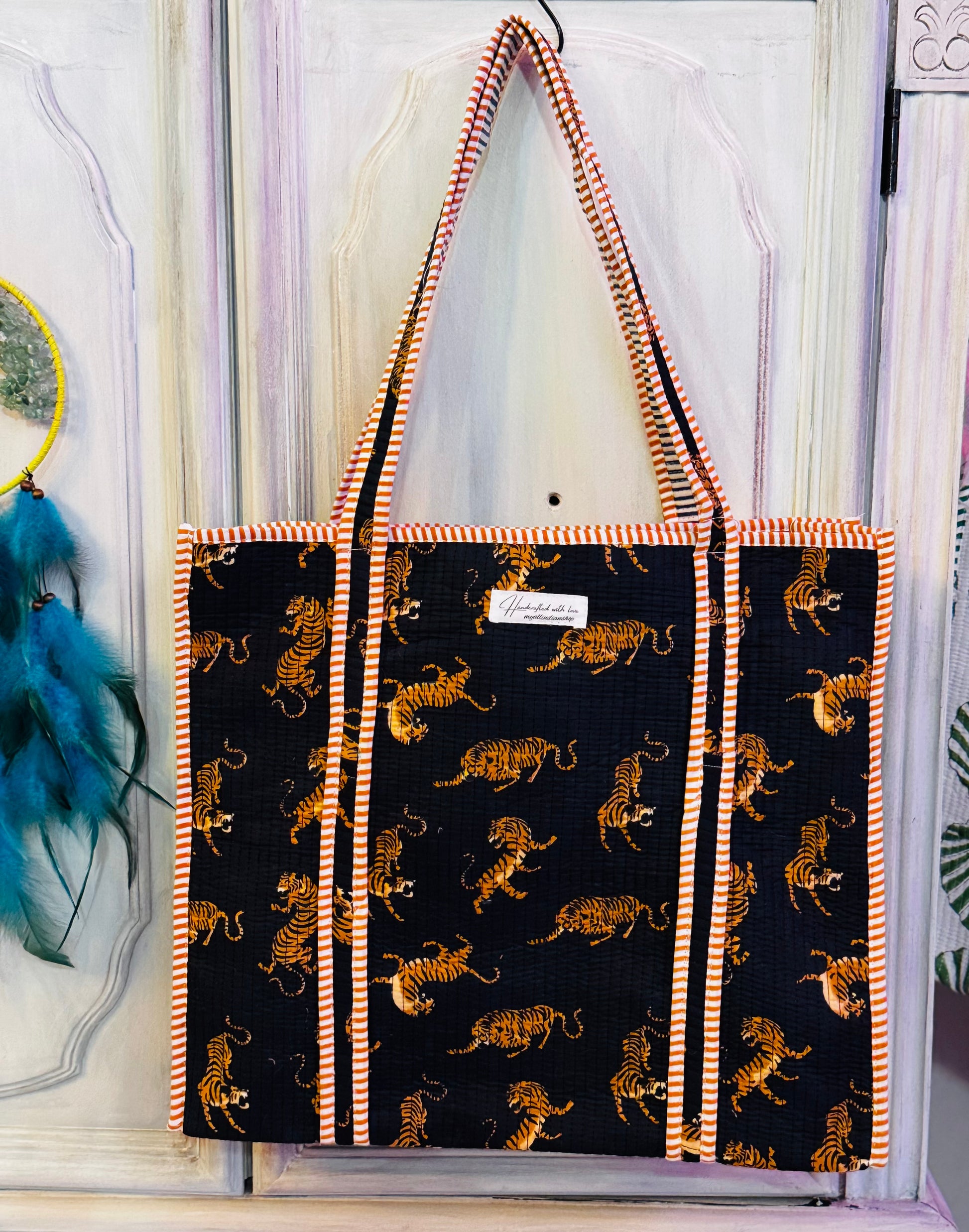 Handmade Quilted Tiger Tote – Unique Cotton Bag | Bold & Artistic