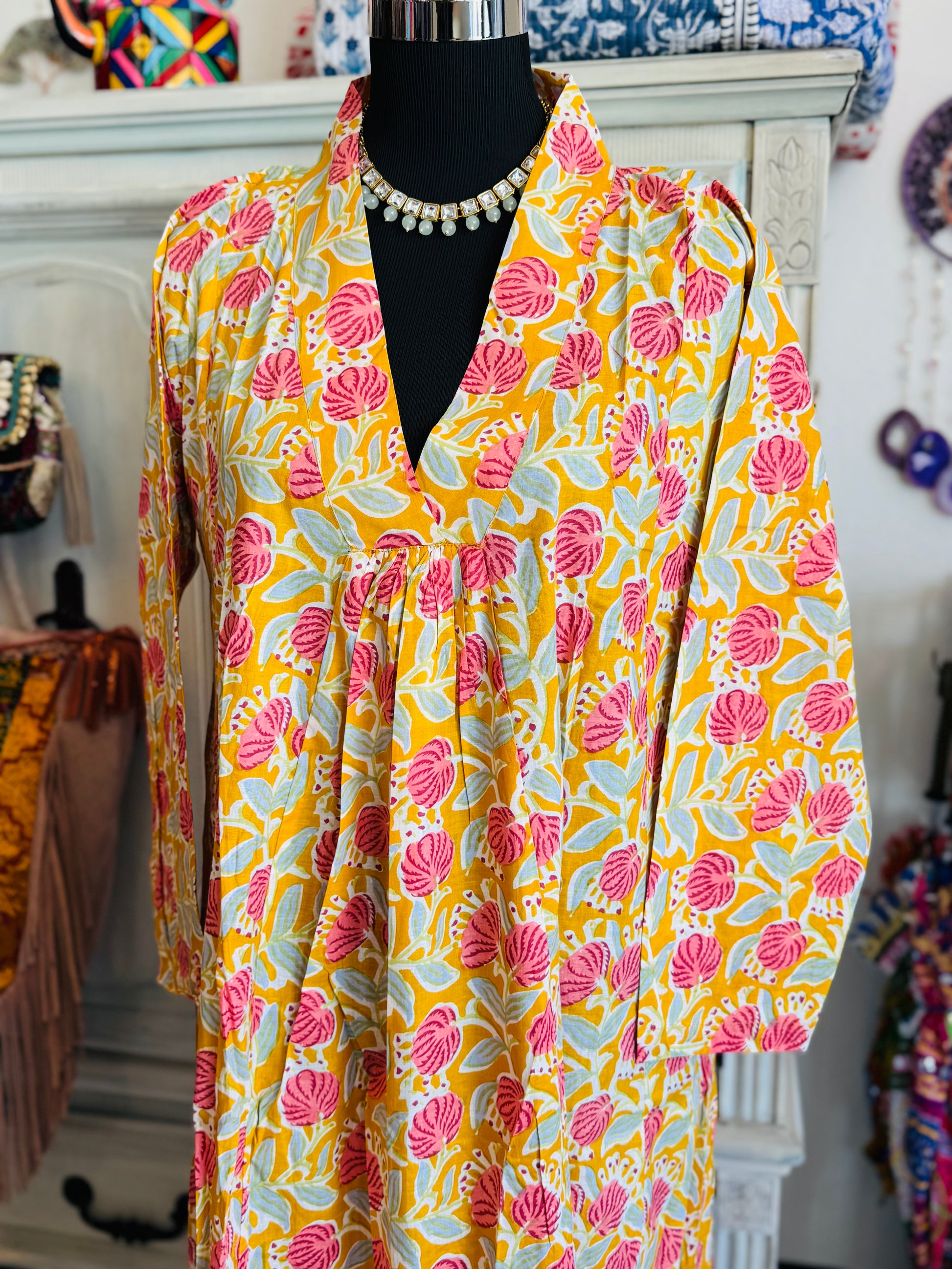 Step into effortless elegance with our long cotton dress, crafted for comfort and style. Featuring intricate handblock designs, a flowy silhouette, and the perfect blend of tradition and modern ease, this dress is a must-have for your wardrobe.