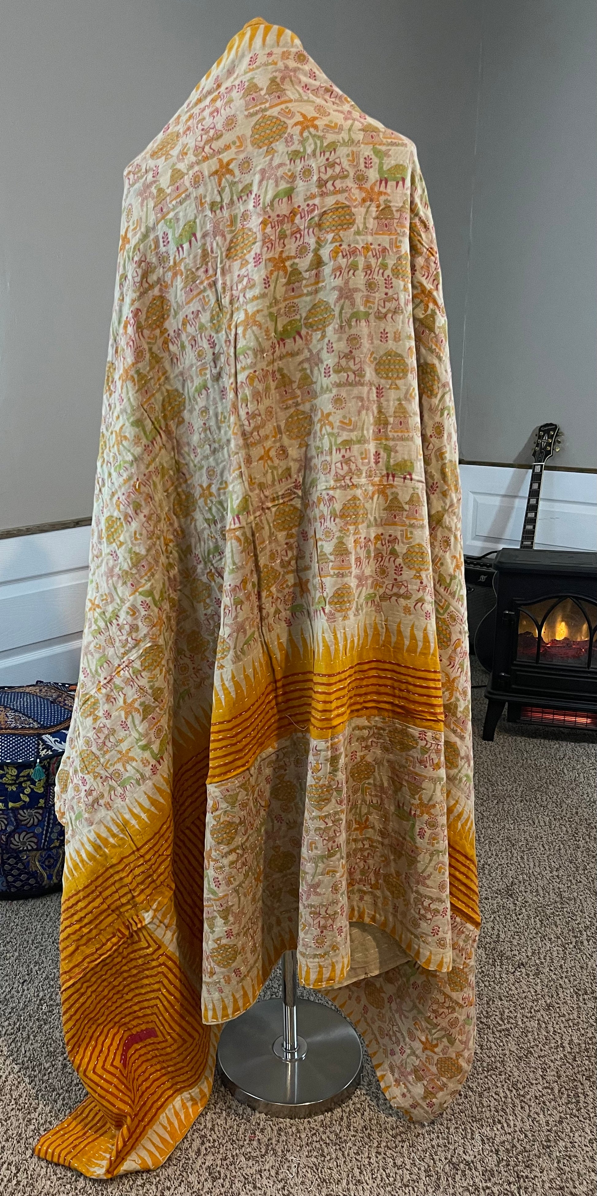 Extremely unique quilt with a design of a village on one side and earthy design on the other!