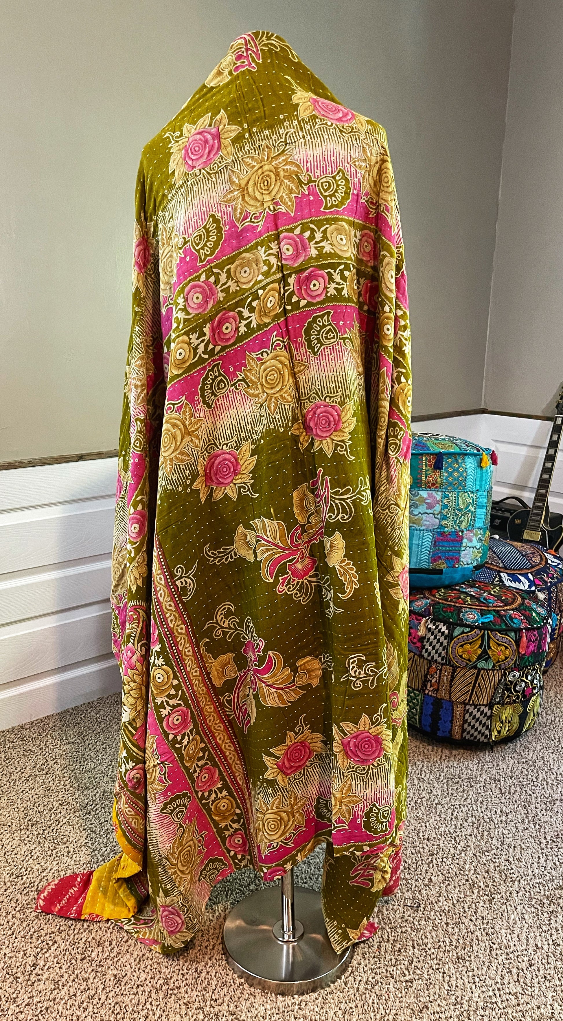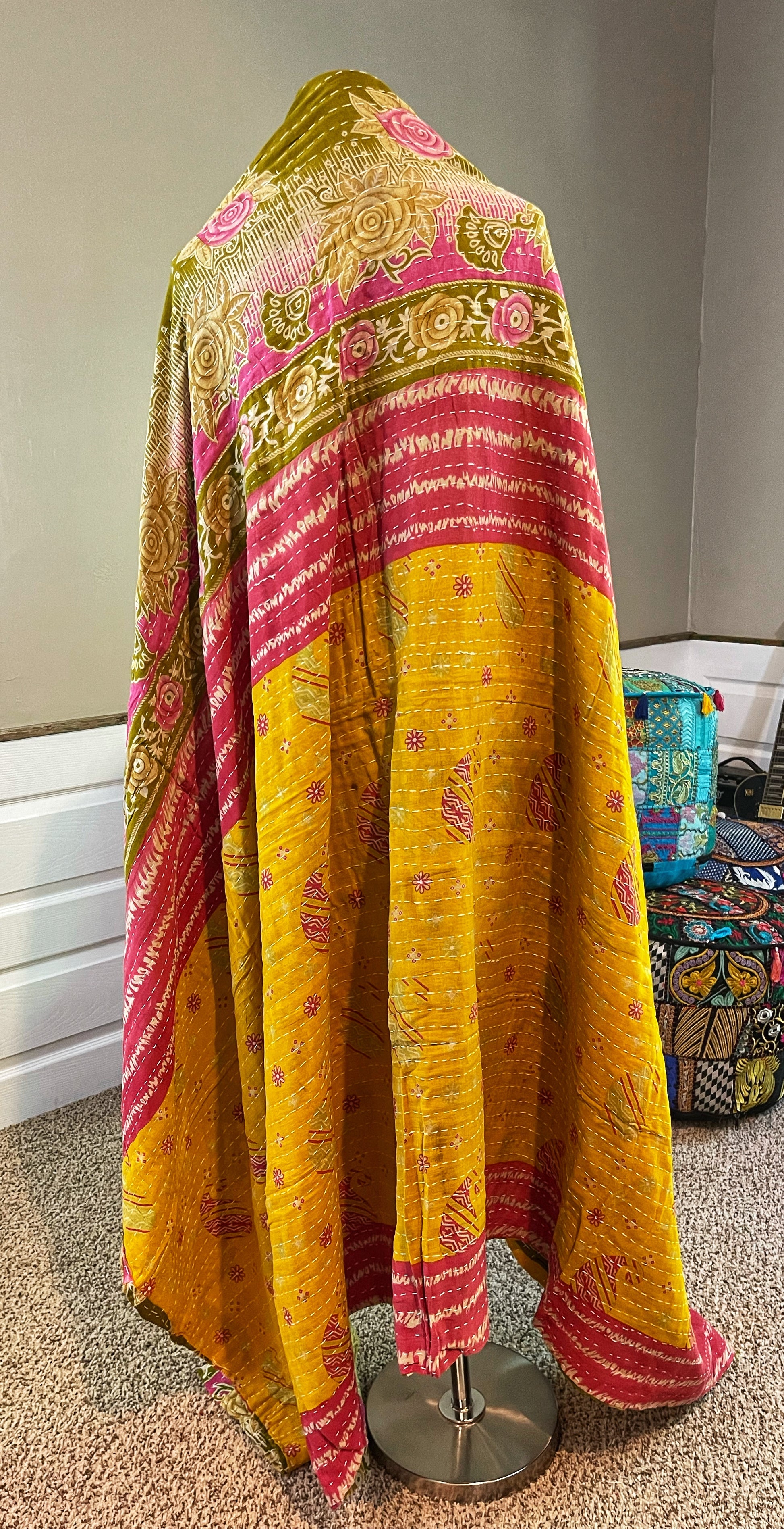 Yellow & Green Saree Kantha
